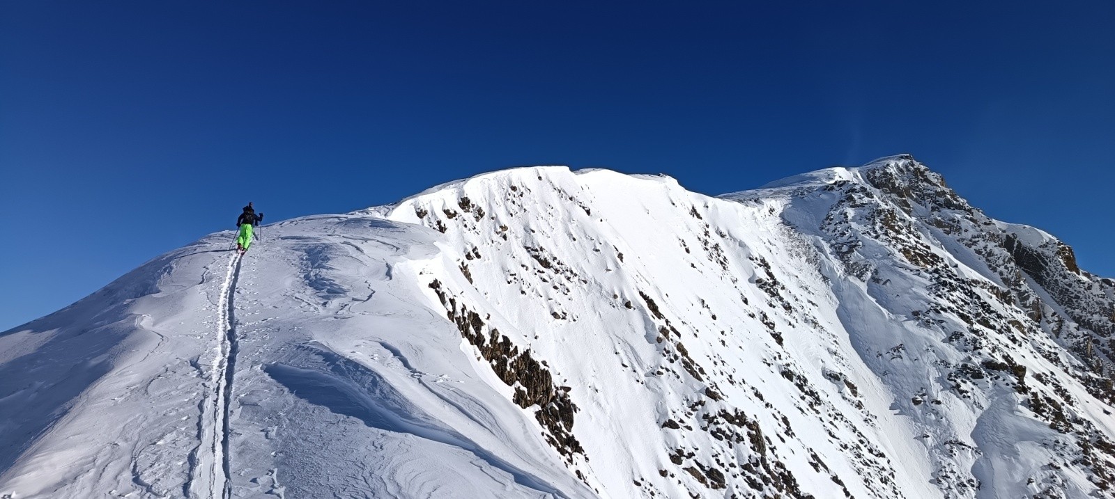 Conditions pour le ski : Bonnes à très bonnes en haut. Bon enneigement jusqu'au parking, ça passe partout sans problèmes, poudreuse dense en N, et un peu de tout sur les autres versants, cartonnée par le vent, un peu de croutée, qqs cms de fraîche sur fond dur, mais pas de transfo.