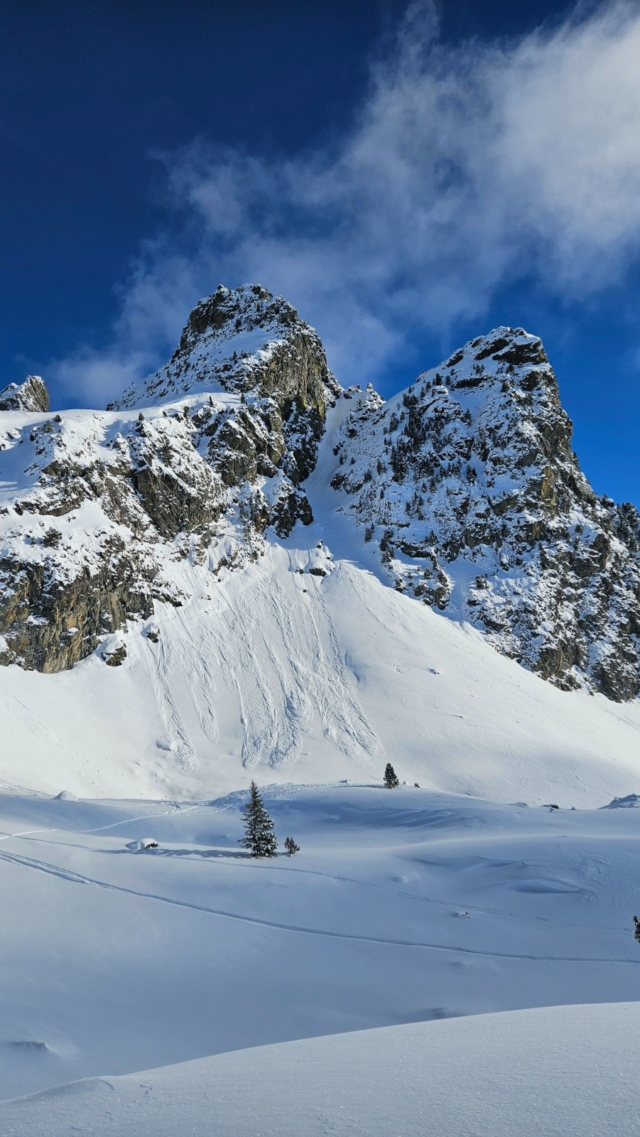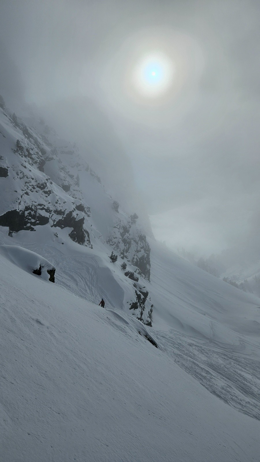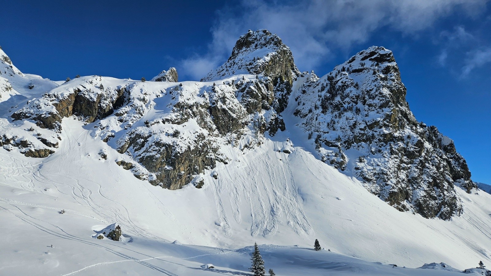 Conditions nivo et activité avalancheuse : m'a semblé bien stable. Rares coulées de la neige récente de très faible ampleur