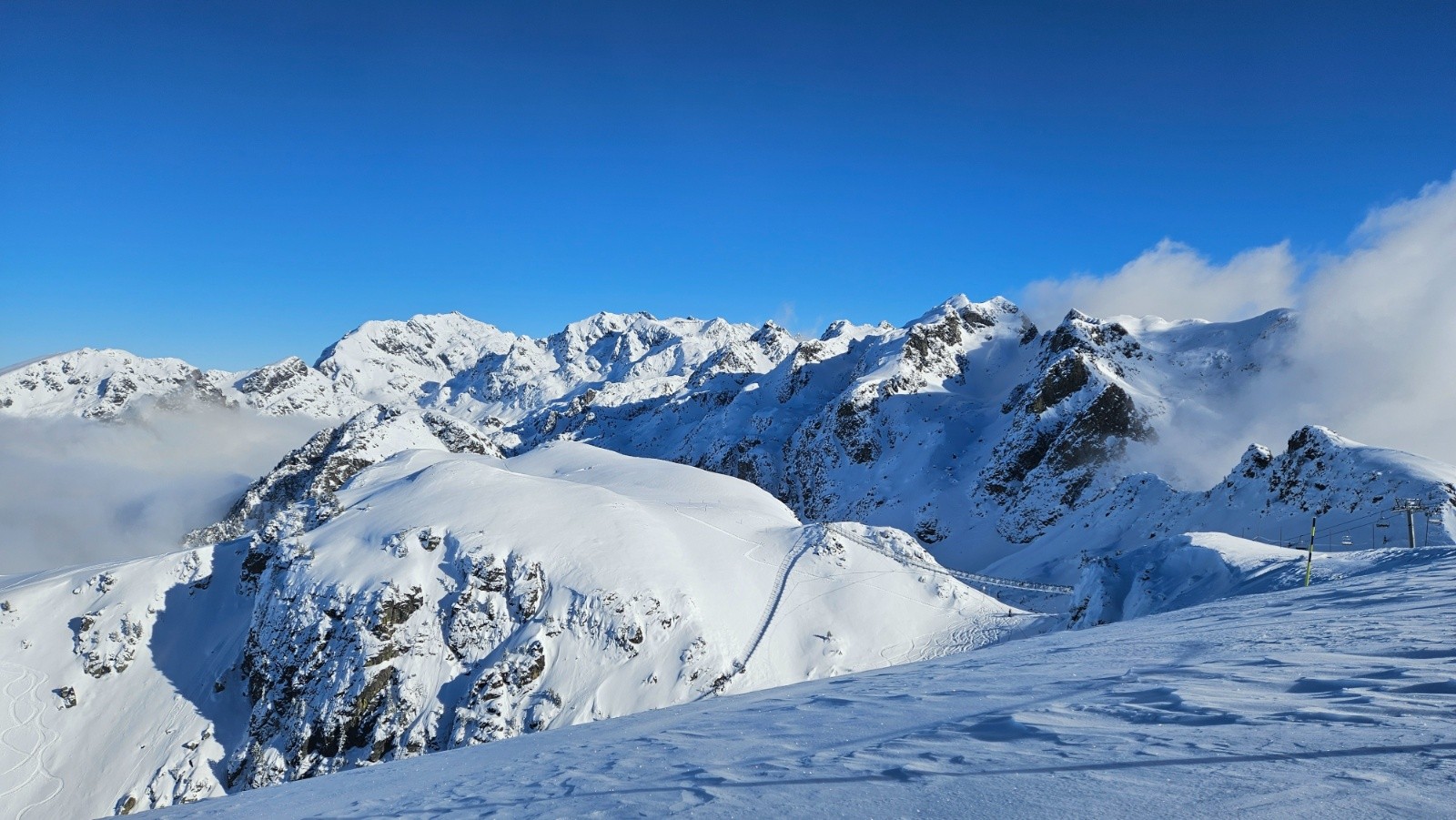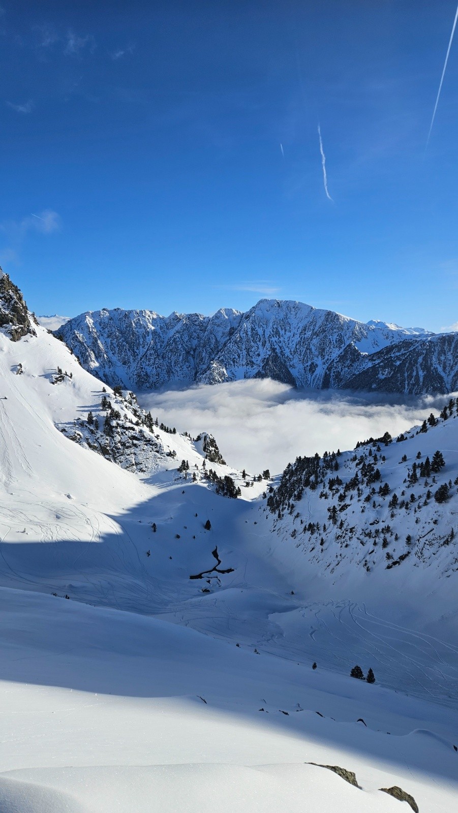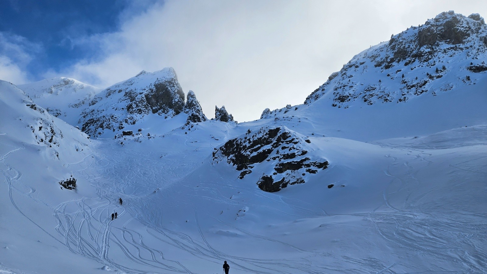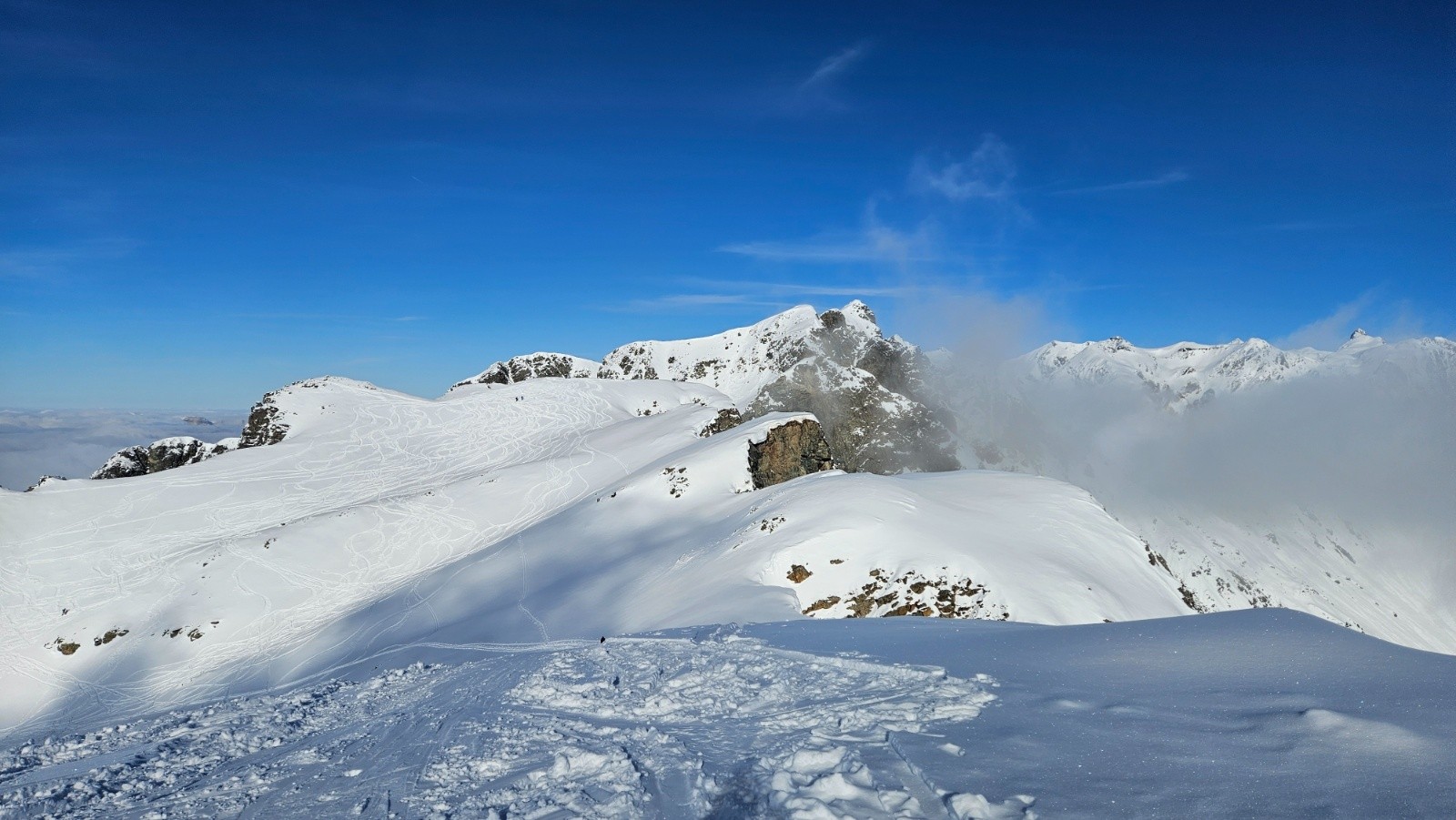 Conditions nivo et activité avalancheuse : m'a semblé bien stable. Rares coulées de la neige récente de très faible ampleur