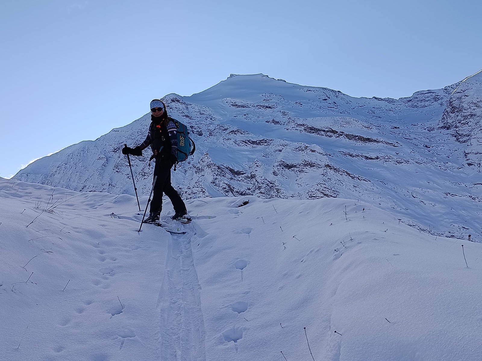 Moins 9 à la bessanaise à 8h45, chaussage et déchaussage à la bessanaise. Neige poudreuse++++idéale à skier sous le sommet, attention aux cailloux vers les croupes et en arrivant vers 2400m. Magnifique sortie avec vue époustouflante au sommet.