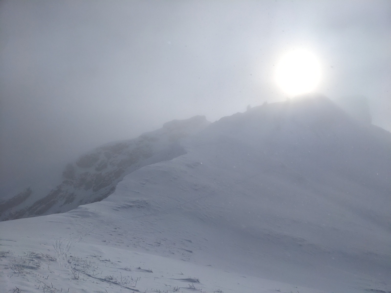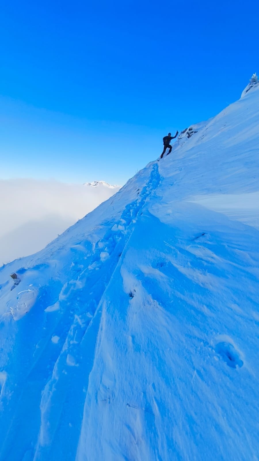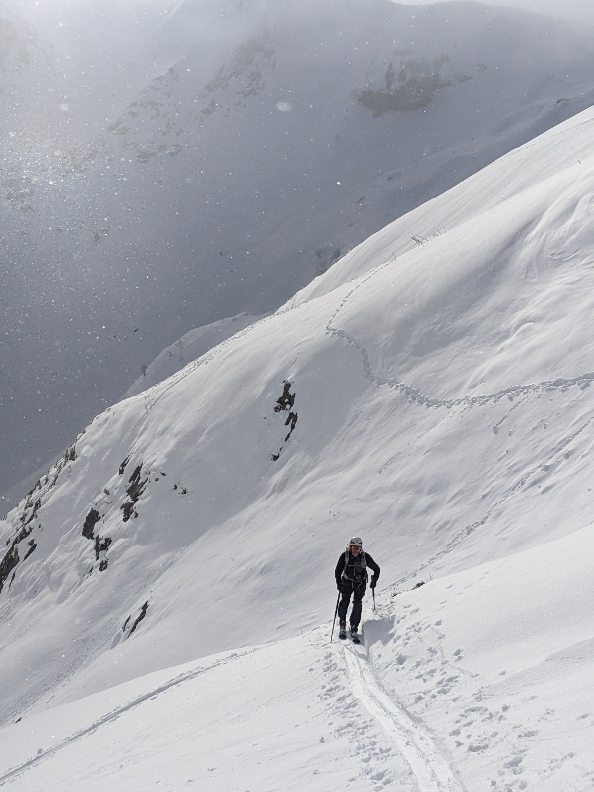 Je retrace la fin de la montée pour éviter la trace des précédents qui passe par les couloirs W que je n'aime pas trop.