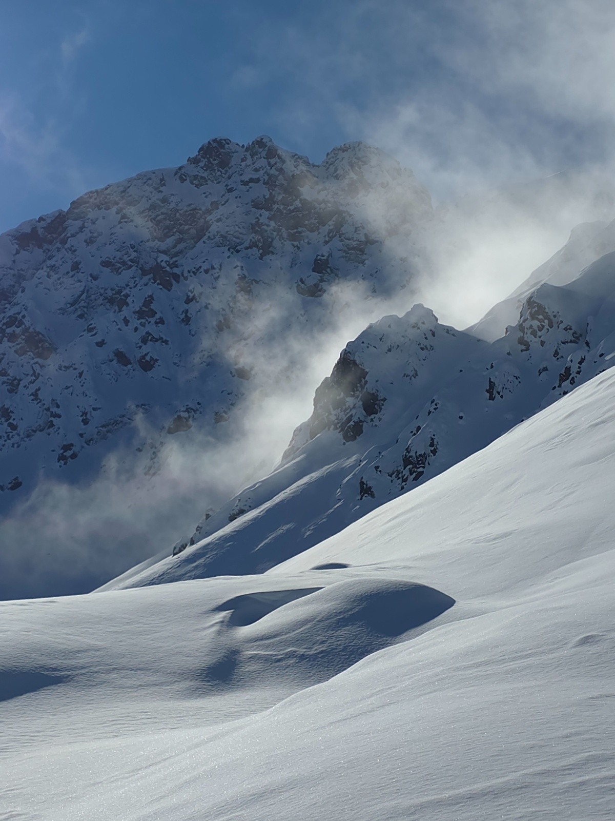 Première vraie sortie. Seul du début a la fin avec de tres belles conditions. J avais pris l Airbag compte tenu de la quantité de neige tombée a 2000. J ai pu profite du ciel qui s est dégagé apres 13h pour faire un peu de rab au-dessus de la fenêtre et vers la Cicle dans les couloirs.