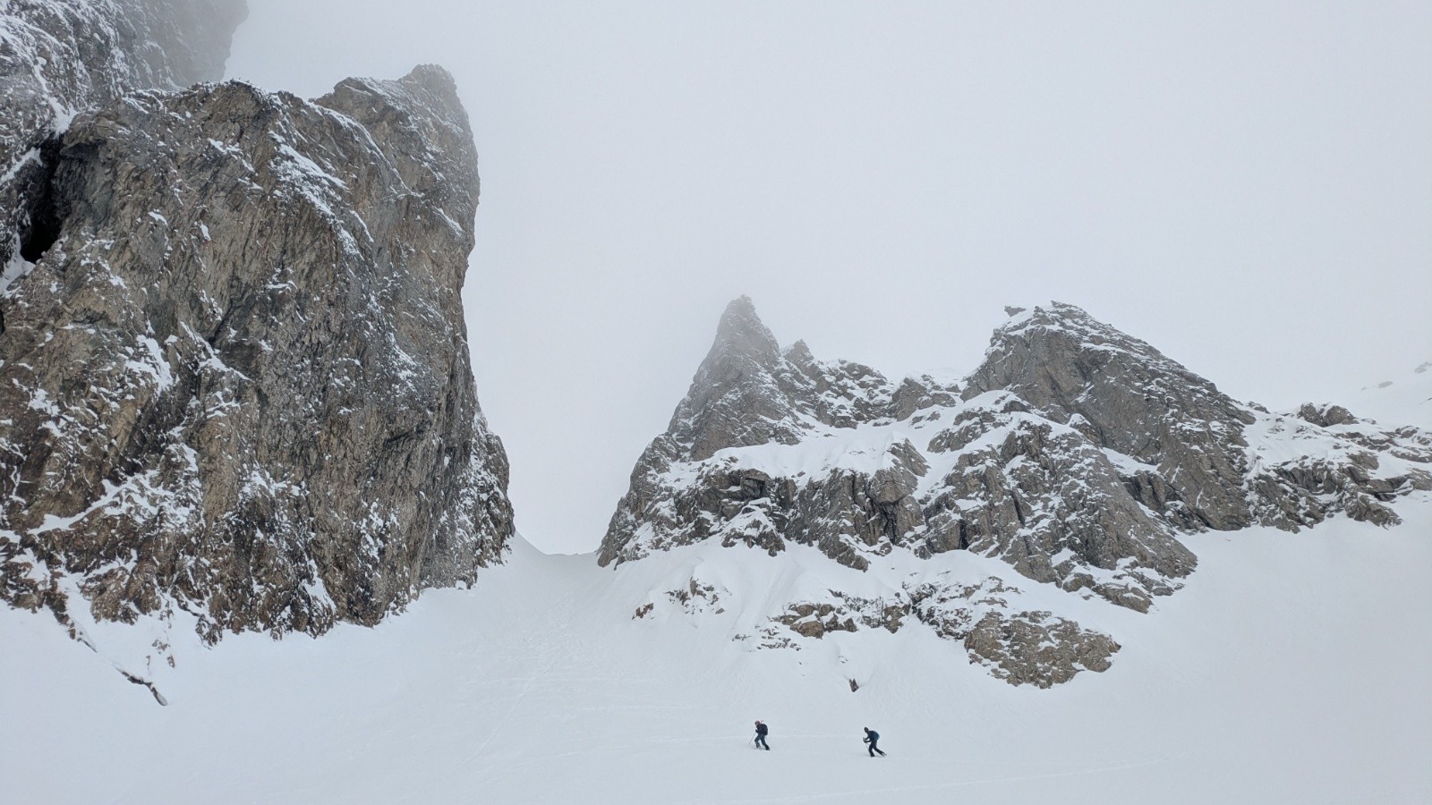 Conditions pour le ski : Bonne neige encore fraîche sur notre orientation s'alourdissant vers le bas. Croûté en sud