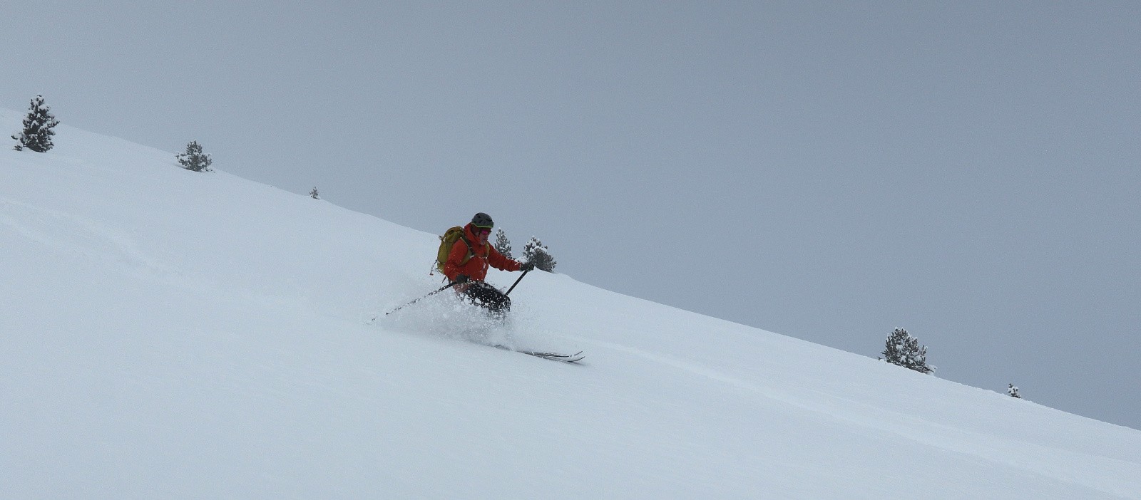 15/20cm de neige froide et légère au départ et jusqu’à 40cm maxi sur l’itinéraire parcouru (inf. à 2000m)