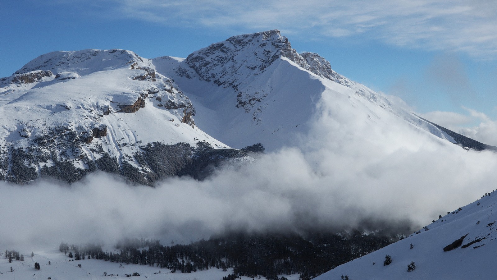 Belles éclaircies mais brouillard dense sur les crêtes.