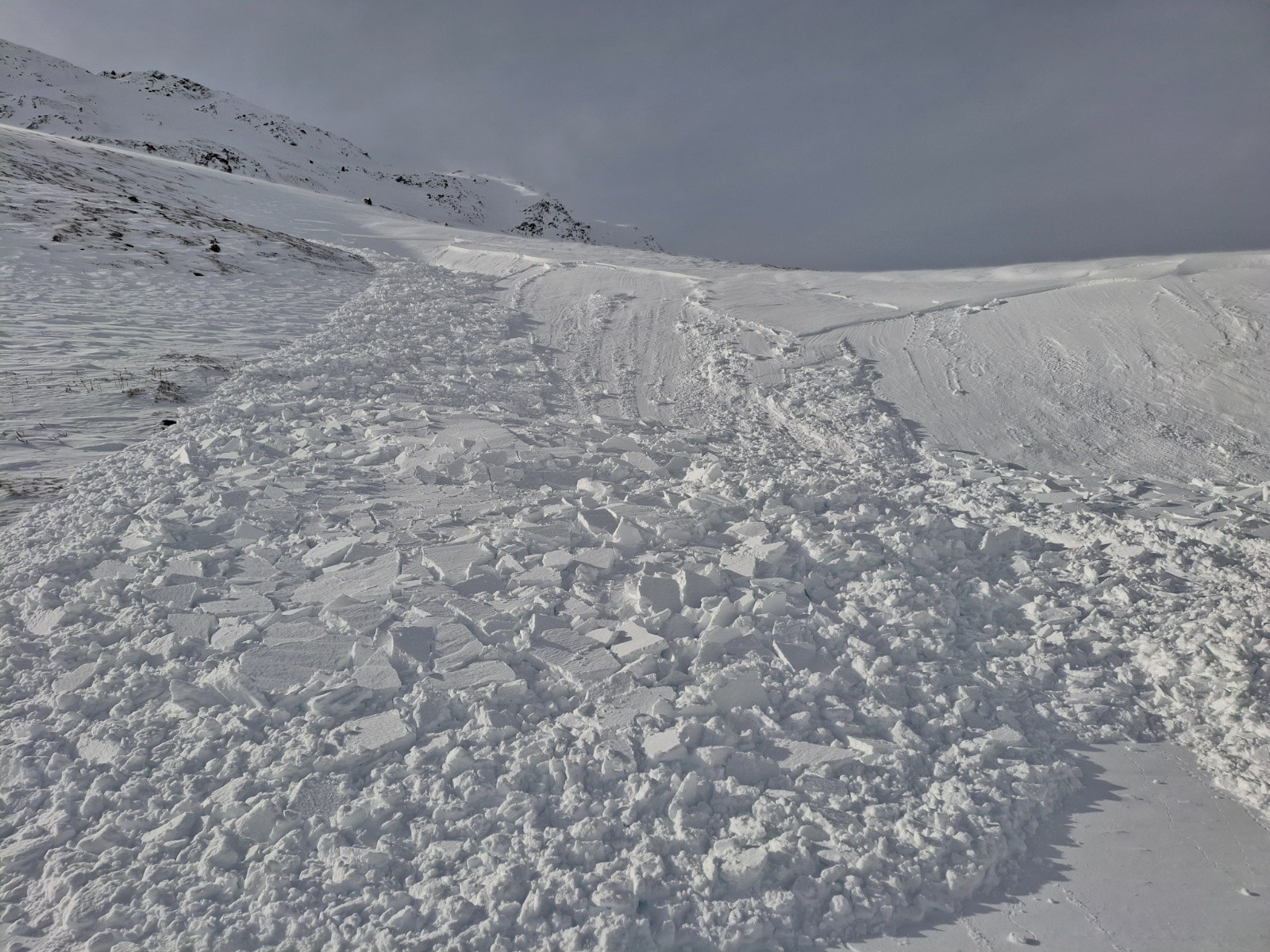 Petite avalanche sur la route mais suffisante pour recouvrir des randonneurs sur fond de Pic blanc