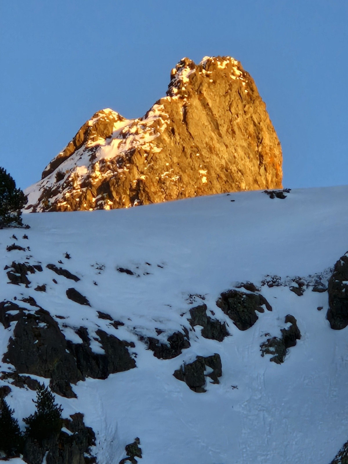 Neige croûte à l'ombre et revenue en pente ensoleillée.