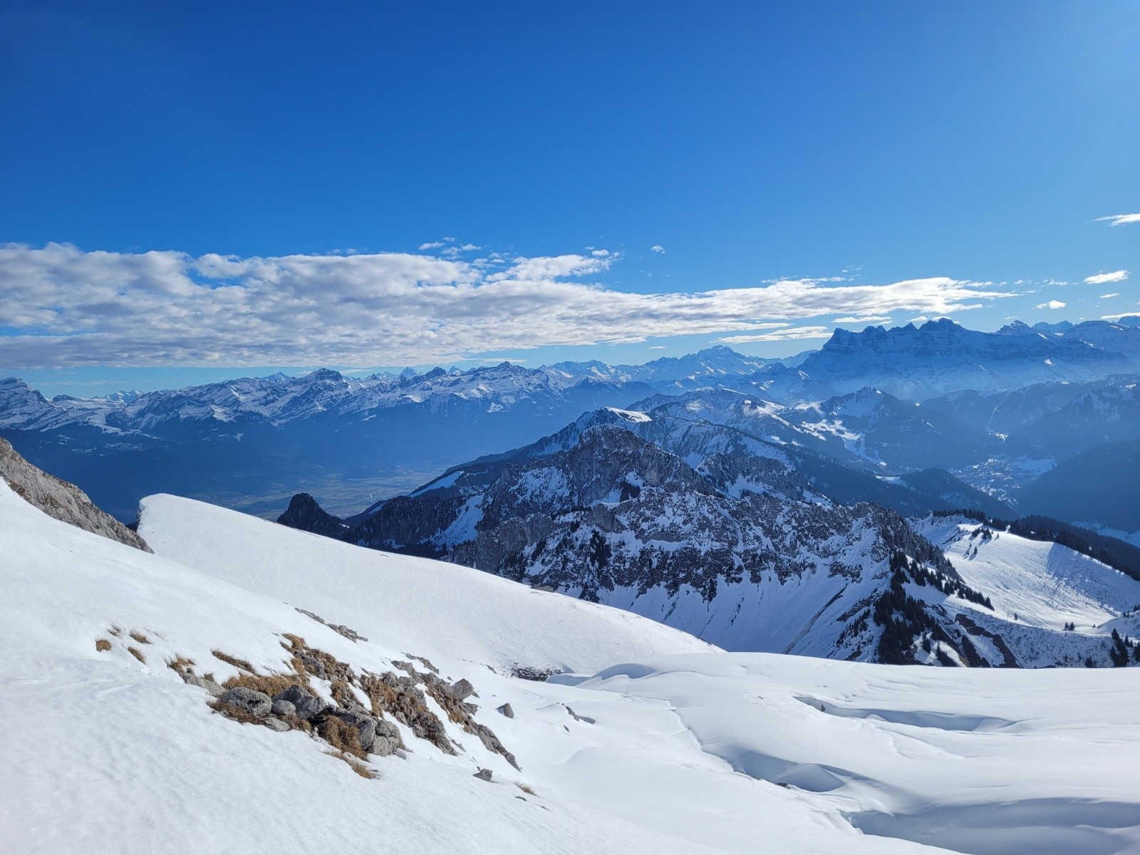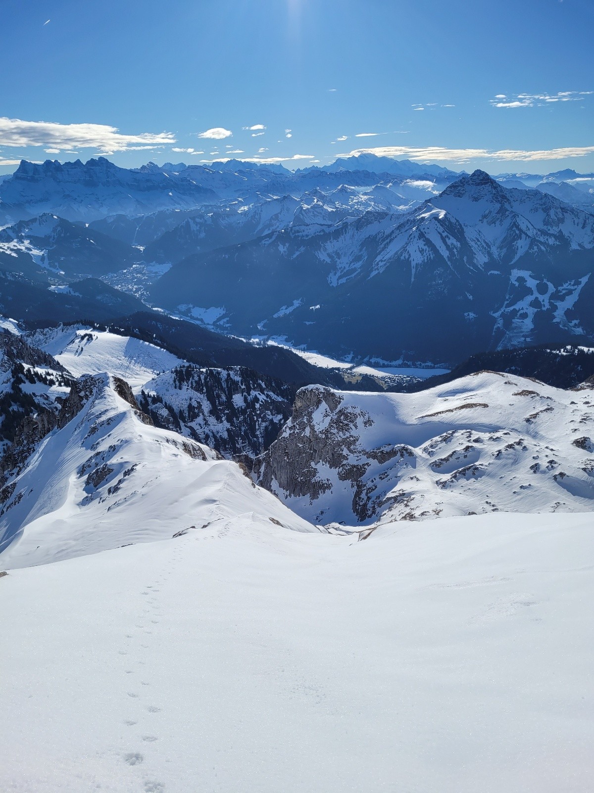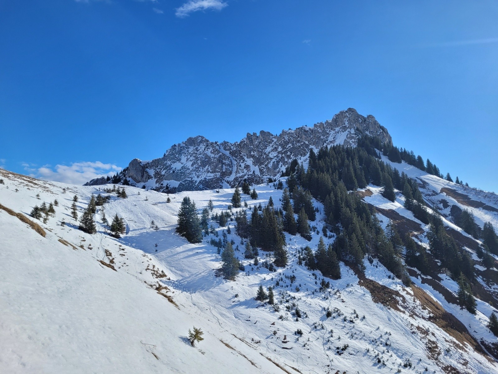 Météo/températures : Ciel partiellement voilé, un peu de soleil mais très intermittent. Extrême douceur dans les vallées, moins ressentie en altitude mais petit vent du Sud au sommet des Cornettes.
