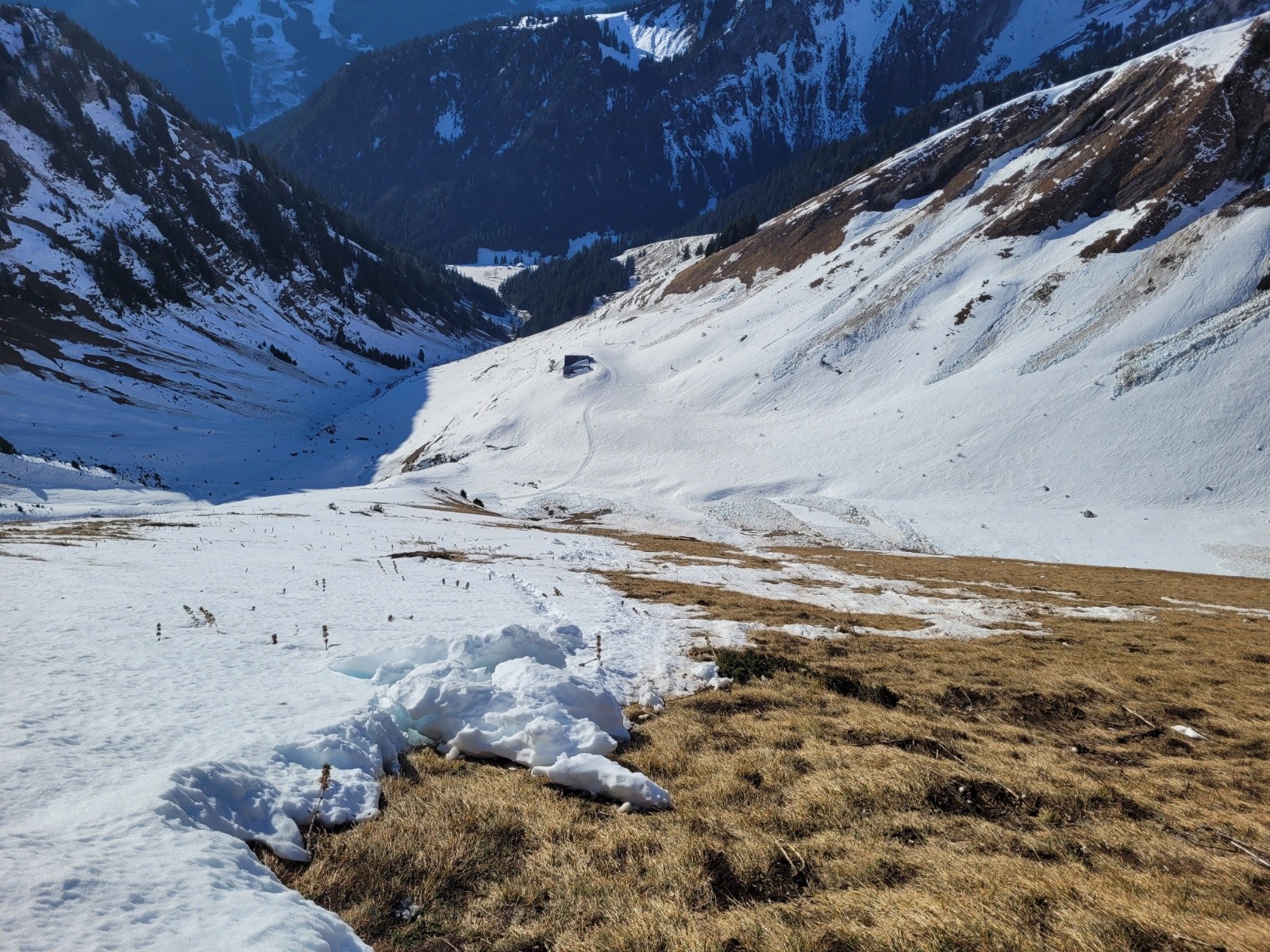 Conditions nivo et activité avalancheuse : ça fond, ça fond, y'aura bientôt plus rien sous 1500m. Traces d'avalanches de boules anciennes dans le lit du torrent de Chevenne, classique... Sinon rien d'autre à signaler.