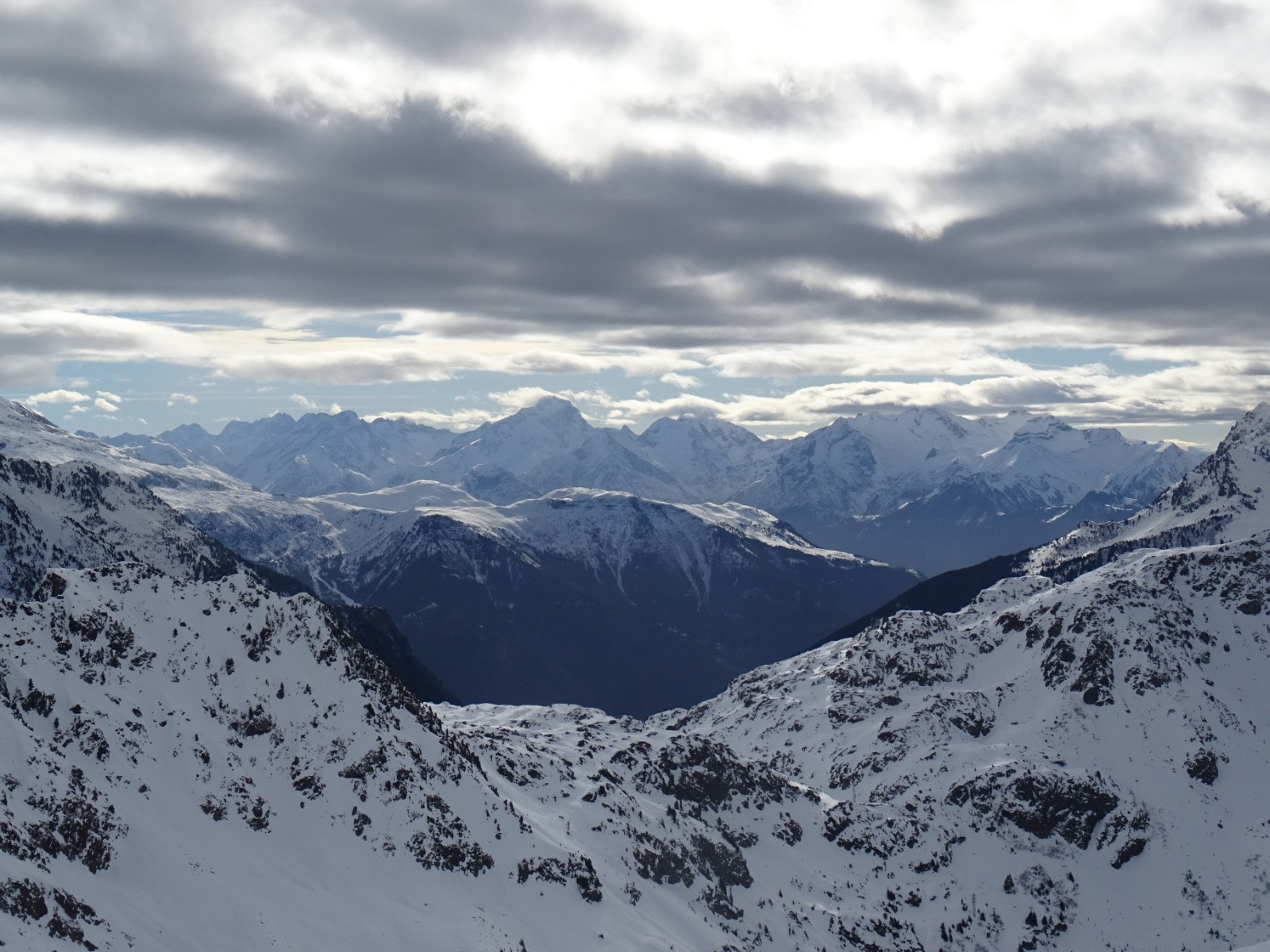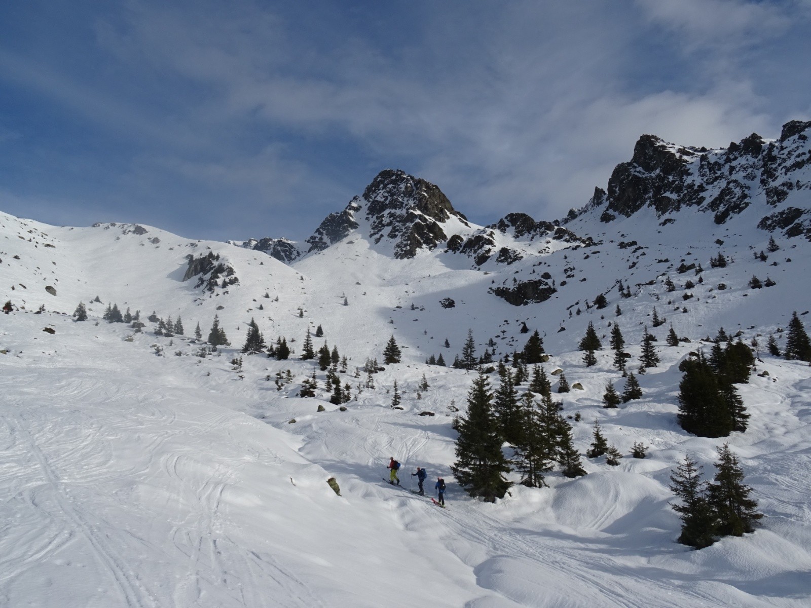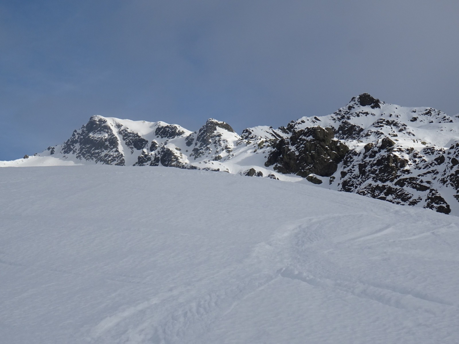 Du ski bien plaisant dans cette neige globalement juste transformée à point : mes acolytes pisse-froid(e) et avec goûts de luxe ont voté pour "un bon 3*" alors que je défends "un petit 4*" - ça n'a rien à voir !! Des portions franchement 4* lorsqu'on s'éloigne des zones traffolées, plutôt 3* sinon, et un "border cross" qui passe bien (pas 'béton', quelques cailloux bien visibles).