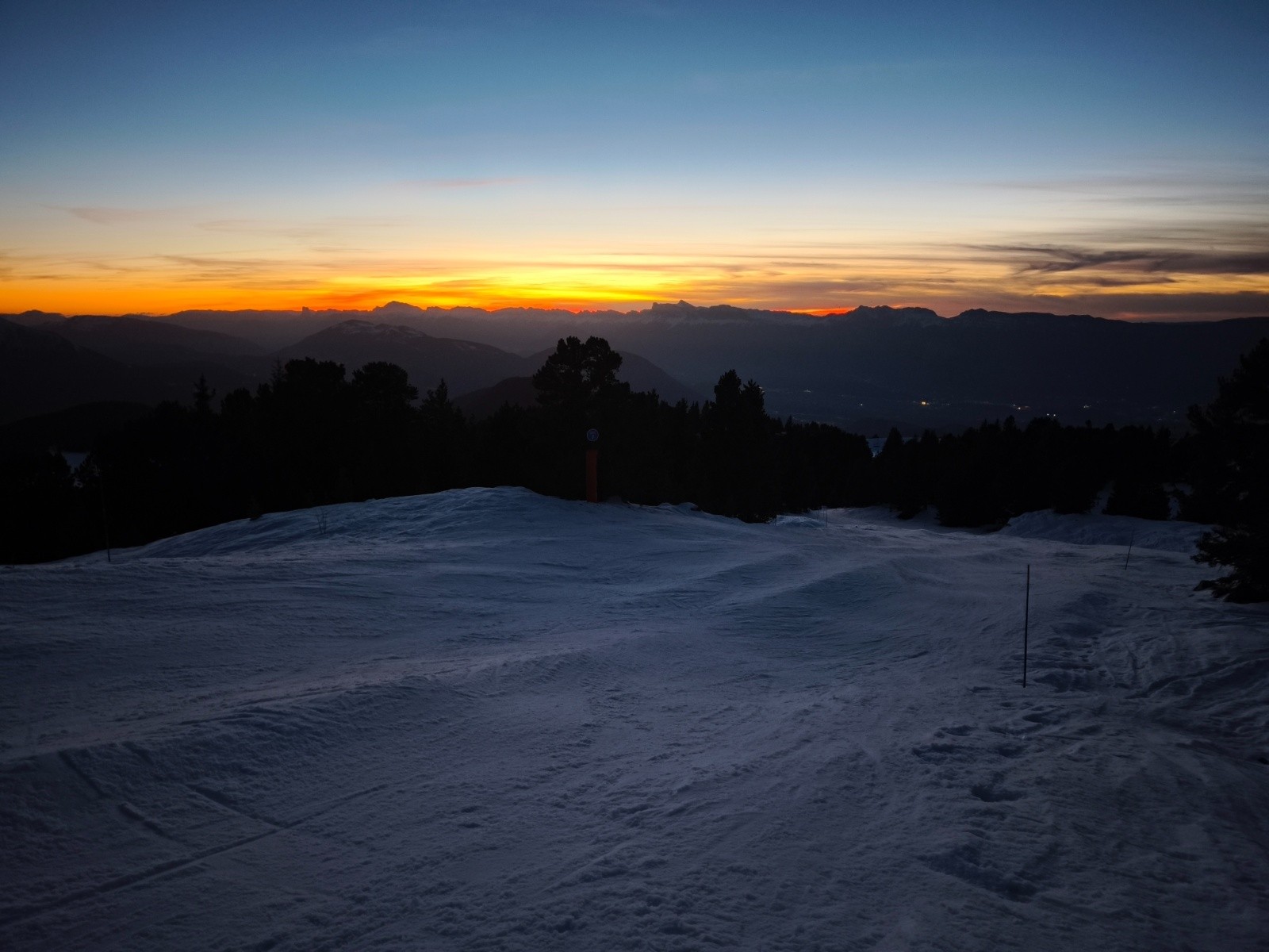 Moins de regel, donc descente nocturne sympa quand on évite la neige nouvellement damée et pour une fois pas croiser de passage de neige nouvellement travaillée hormis de jour sur une portion vers roche bé, bizarre à cette heure avec la station encore ouverte 🤔. Mais vue le peu de nombres des pisteurs bloquait peut-être ce passage le temps que la dameuse passe 🤔🤔.