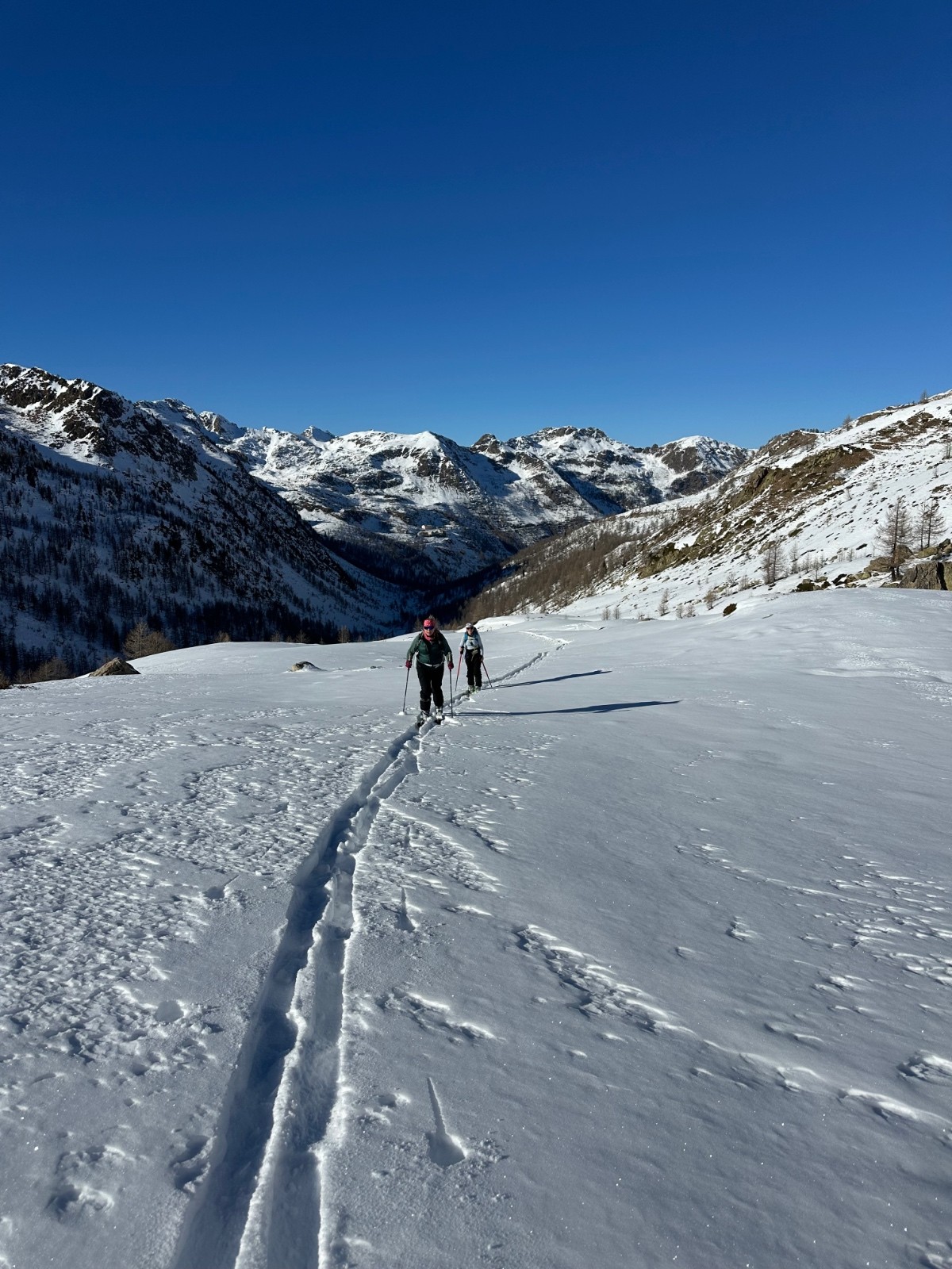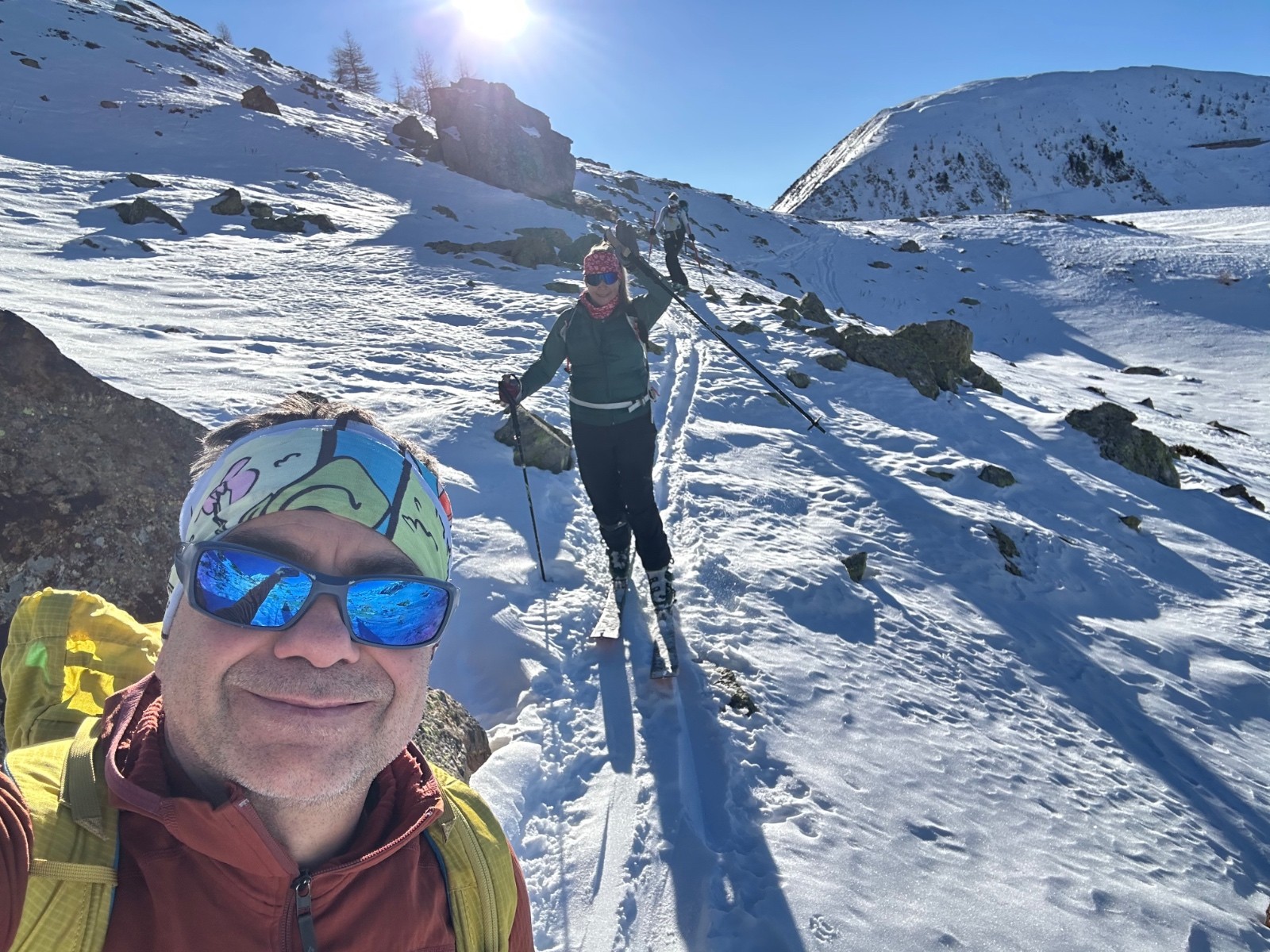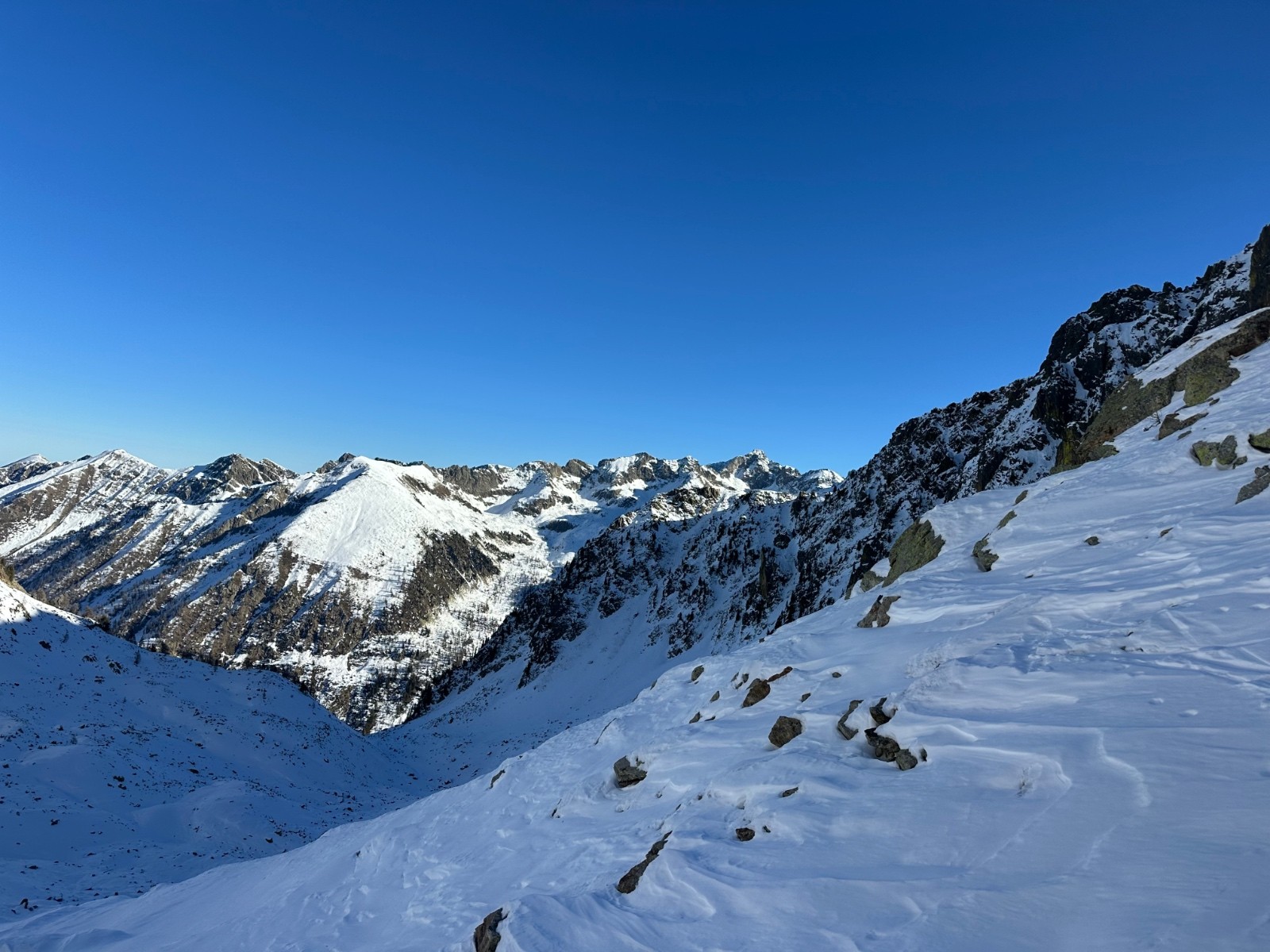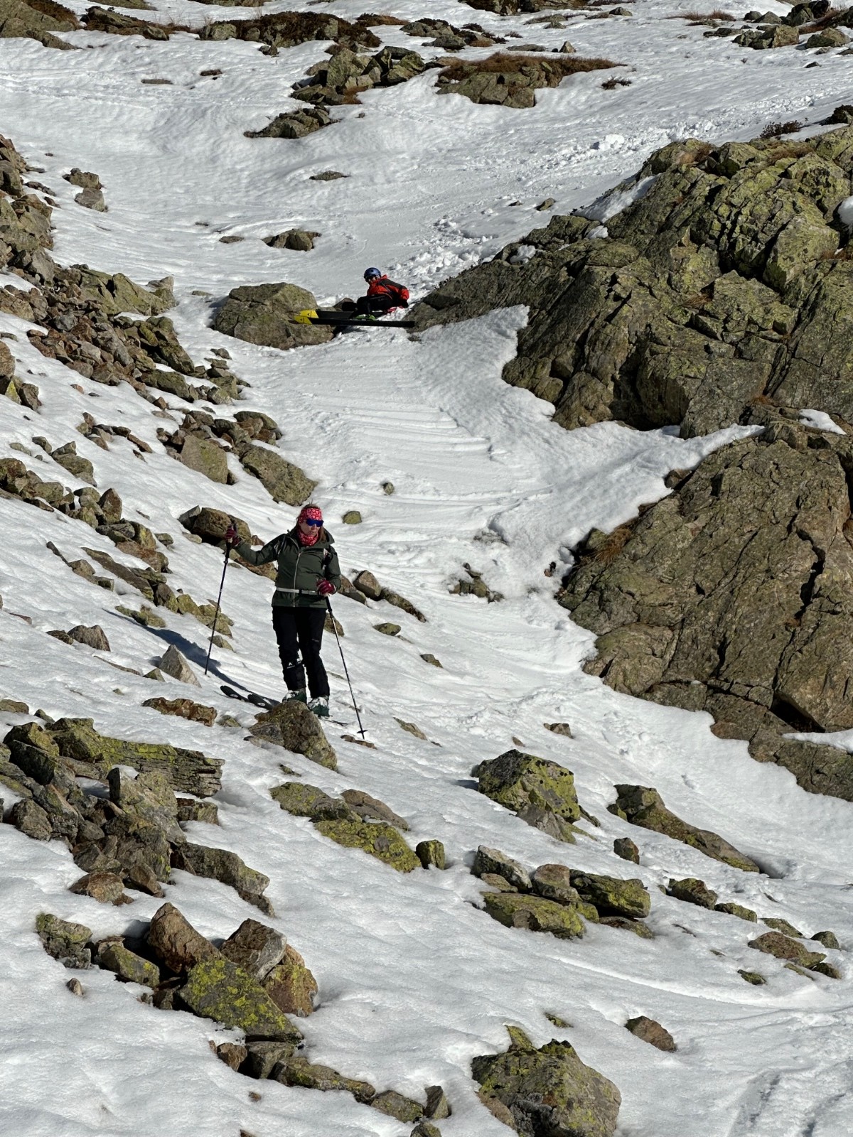 Une si belle météo ne permettait pas de laisser les skis au placard. Et même si on savait que les conditions ne seraient pas au top on est allé tenter le Mont Aver avec mes deux monitrices de ski préférées. On a dû rester au pied sauf à finir empaler par les requins trop nombreux. Au Col dei morti on a croisé le groupe de Seb et Amaury du CAF de Nice, qui ont terminé l’ascension en crampons. Retour avec quelques filons de poudre mais pas facile de trouver son chemin parmi les pierres. On attend la neige suivante, on croise les doigts 🤞