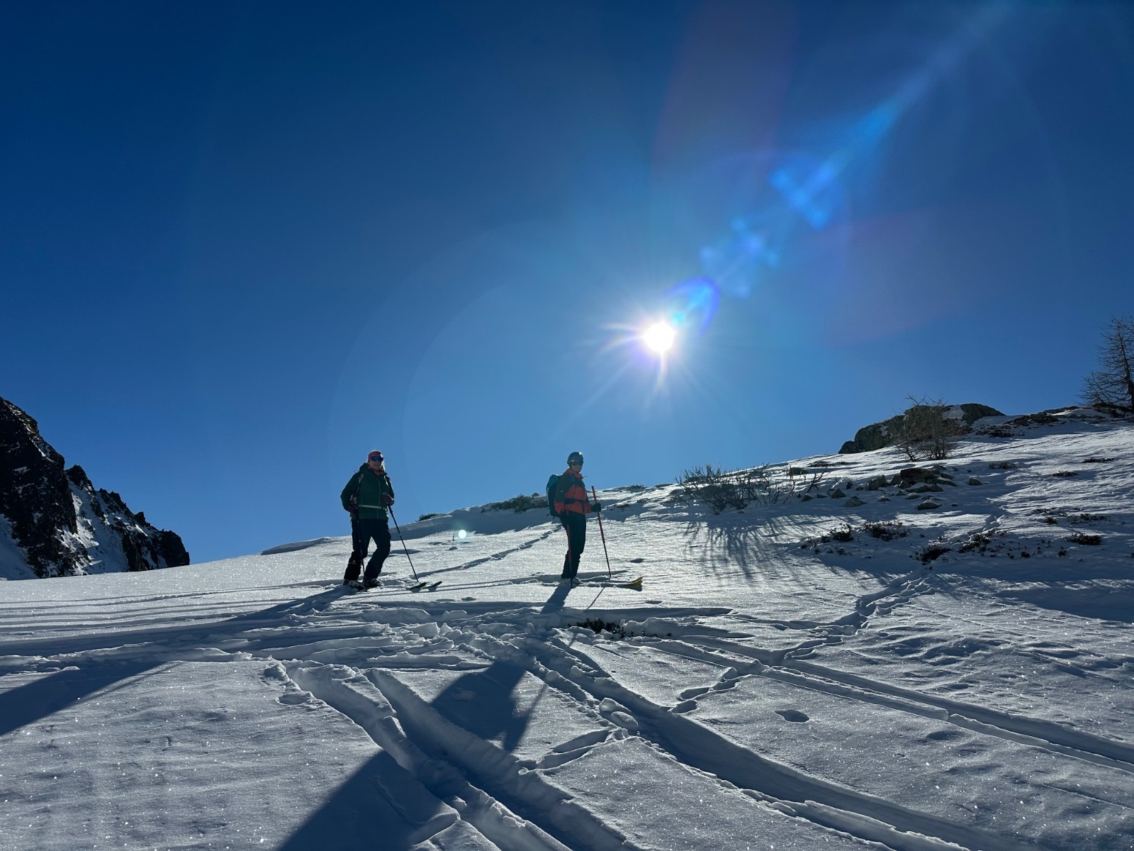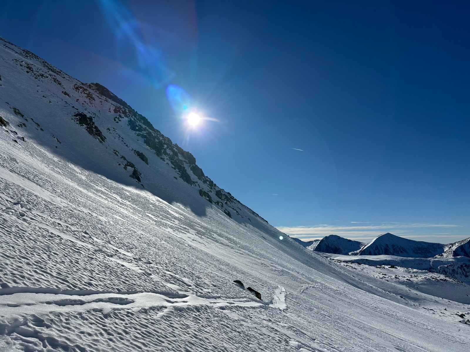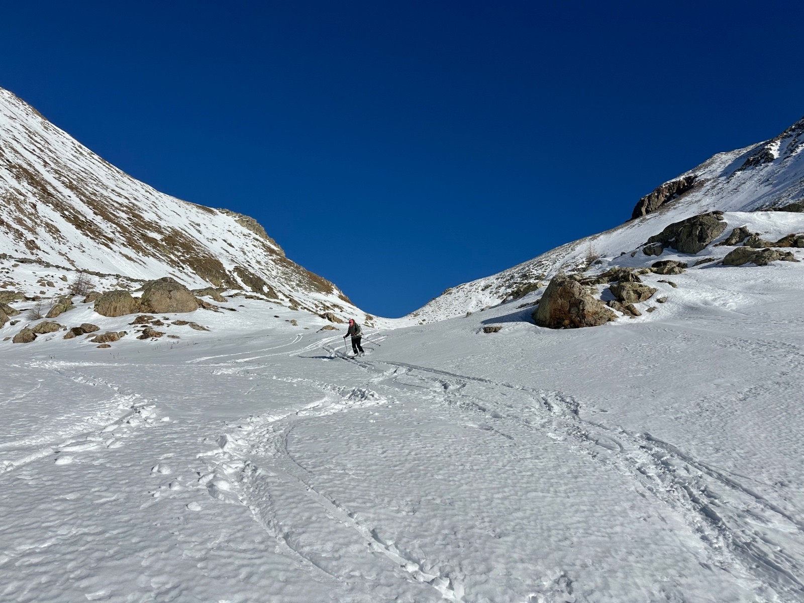 Une si belle météo ne permettait pas de laisser les skis au placard. Et même si on savait que les conditions ne seraient pas au top on est allé tenter le Mont Aver avec mes deux monitrices de ski préférées. On a dû rester au pied sauf à finir empaler par les requins trop nombreux. Au Col dei morti on a croisé le groupe de Seb et Amaury du CAF de Nice, qui ont terminé l’ascension en crampons. Retour avec quelques filons de poudre mais pas facile de trouver son chemin parmi les pierres. On attend la neige suivante, on croise les doigts 🤞