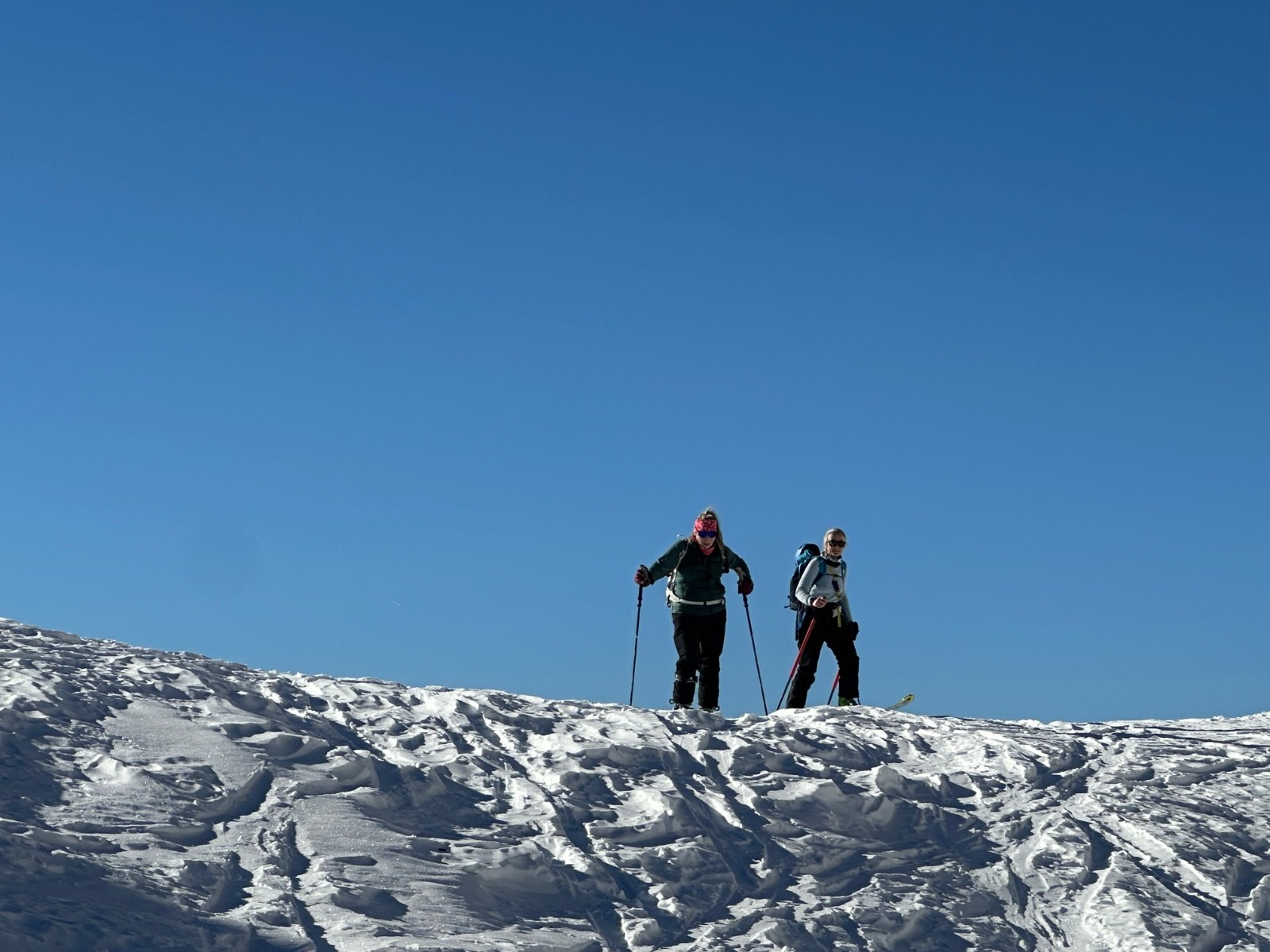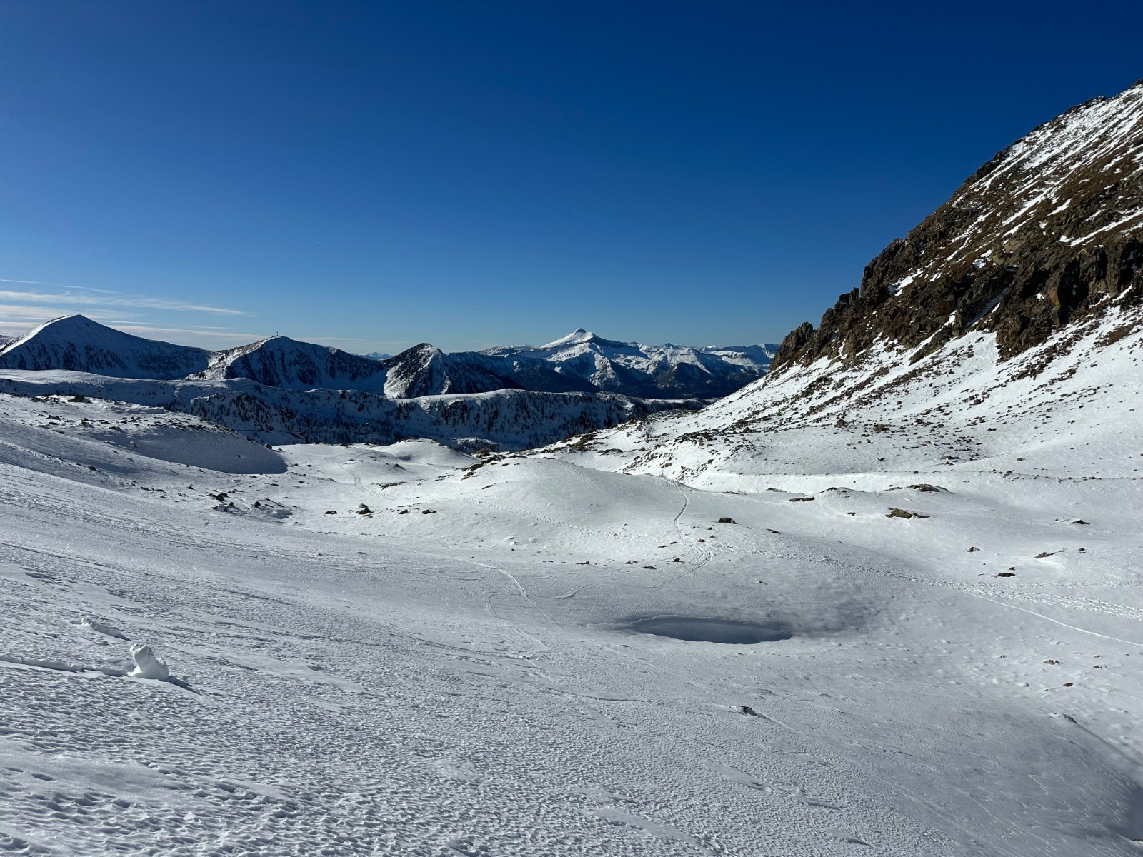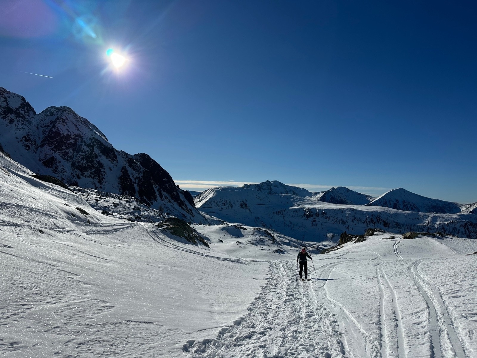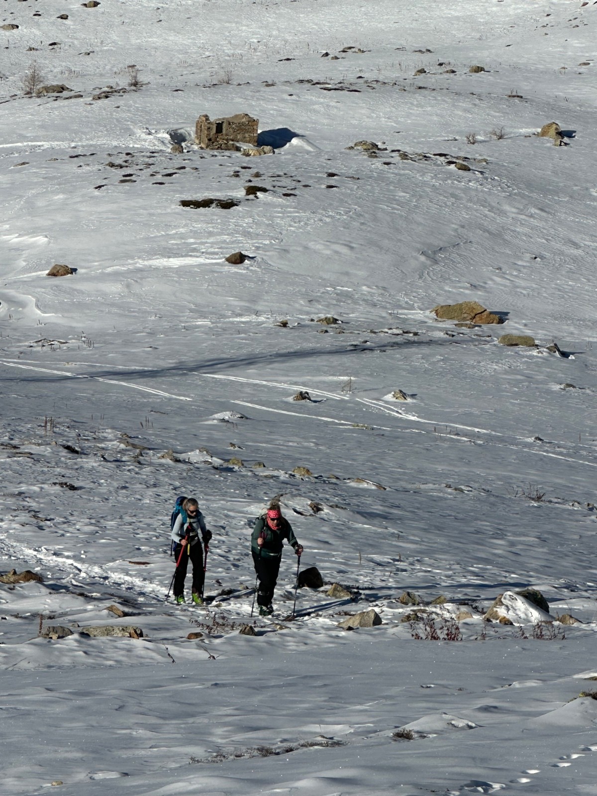 Une si belle météo ne permettait pas de laisser les skis au placard. Et même si on savait que les conditions ne seraient pas au top on est allé tenter le Mont Aver avec mes deux monitrices de ski préférées. On a dû rester au pied sauf à finir empaler par les requins trop nombreux. Au Col dei morti on a croisé le groupe de Seb et Amaury du CAF de Nice, qui ont terminé l’ascension en crampons. Retour avec quelques filons de poudre mais pas facile de trouver son chemin parmi les pierres. On attend la neige suivante, on croise les doigts 🤞