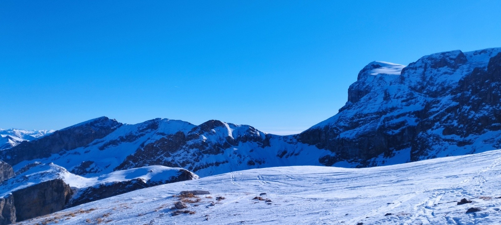 Itinéraire suivi :Suivre les traces en bordure du bois, après quelques déchaussages brefs, rejoindre l itinéraire sous le premier pilone. Puis remonter les pentes évidentes à droite en laissant à gauche l itinéraire du pic de bure ou de la traversée héroïque, dont l' entrée est peu enneigée.