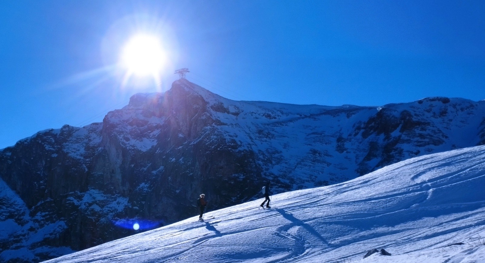 Conditions pour le ski : correct, quelques pentes encore poudreuse, en bas piste damée par les passages, sous le sommet, beaucoup de cailloux