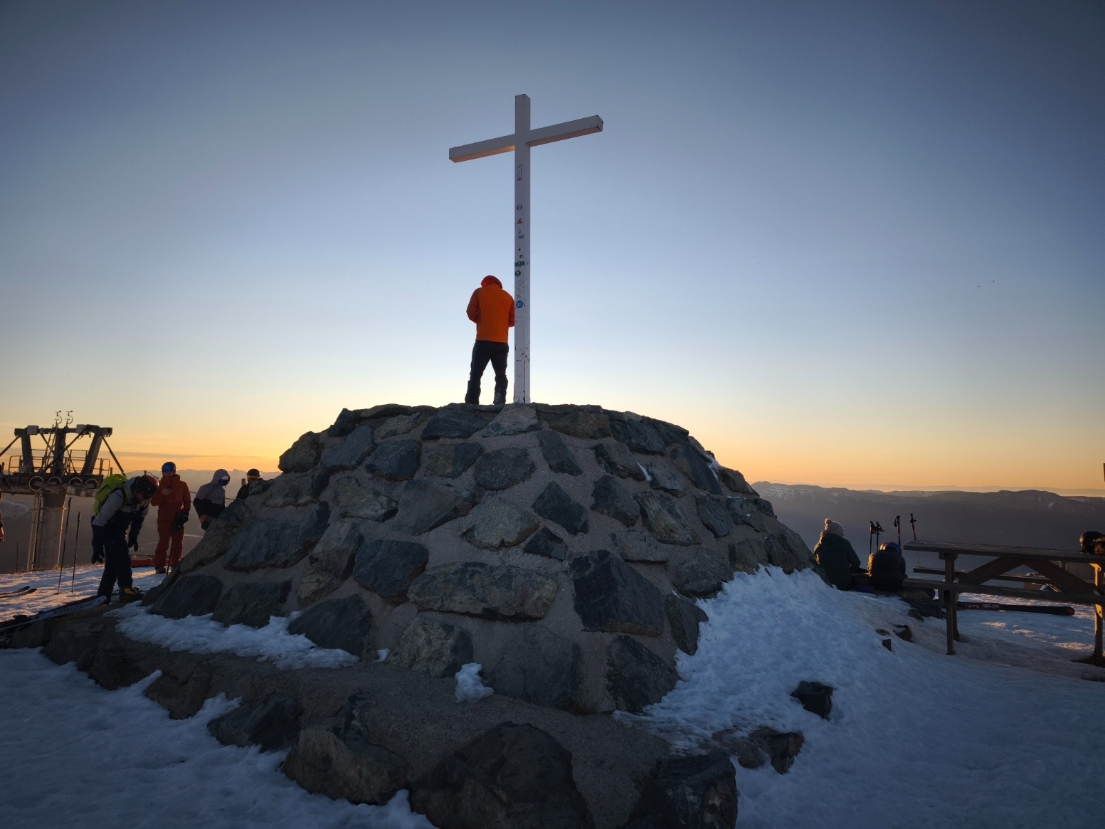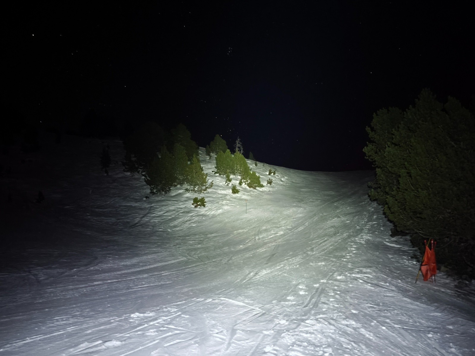 Il restait la partie nocturne, bien agréable, avec le ciel étoilé et la période des étoiles filantes, j'ai réussi à en voir 2 sur le petit temps restant. Les dameuses arrivant juste pour un petit passage puis disparaissant dans la vallée, je me suis dit qu'il y avait peut-être moyen d'abusé encore, mais dans le doute, j'ai laissé les crêtes et la croix dormir.
