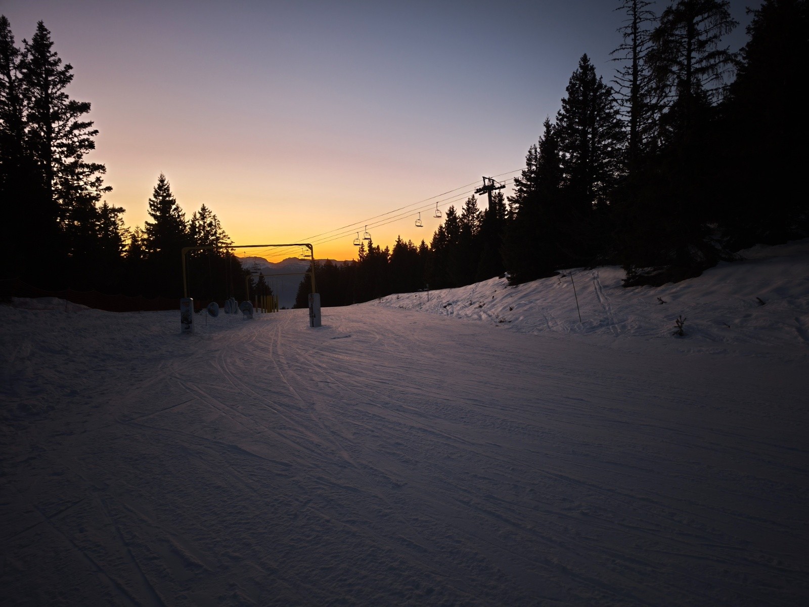 Conditions pour le ski : Correcte selon les endroits, patinoire sur les pentes qui se font racler jusqu'au fond dur. Mais très agréable pour monter, enfin en trichant et restant sur les pistes. L'itinéraire rando doit avoir des passage assez geler, donc sans moi les dévers en béton, çà fait trop mal aux malléoles et puis il soit y avoir des passages pas très sécuritaire.