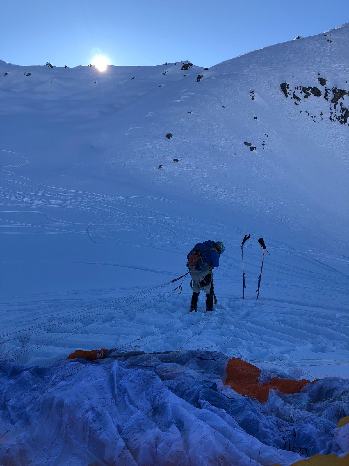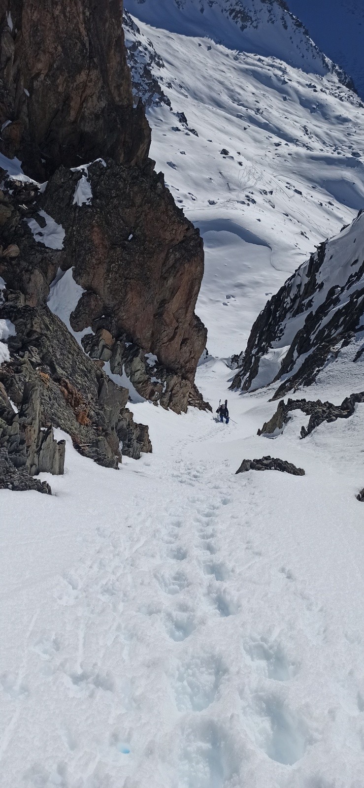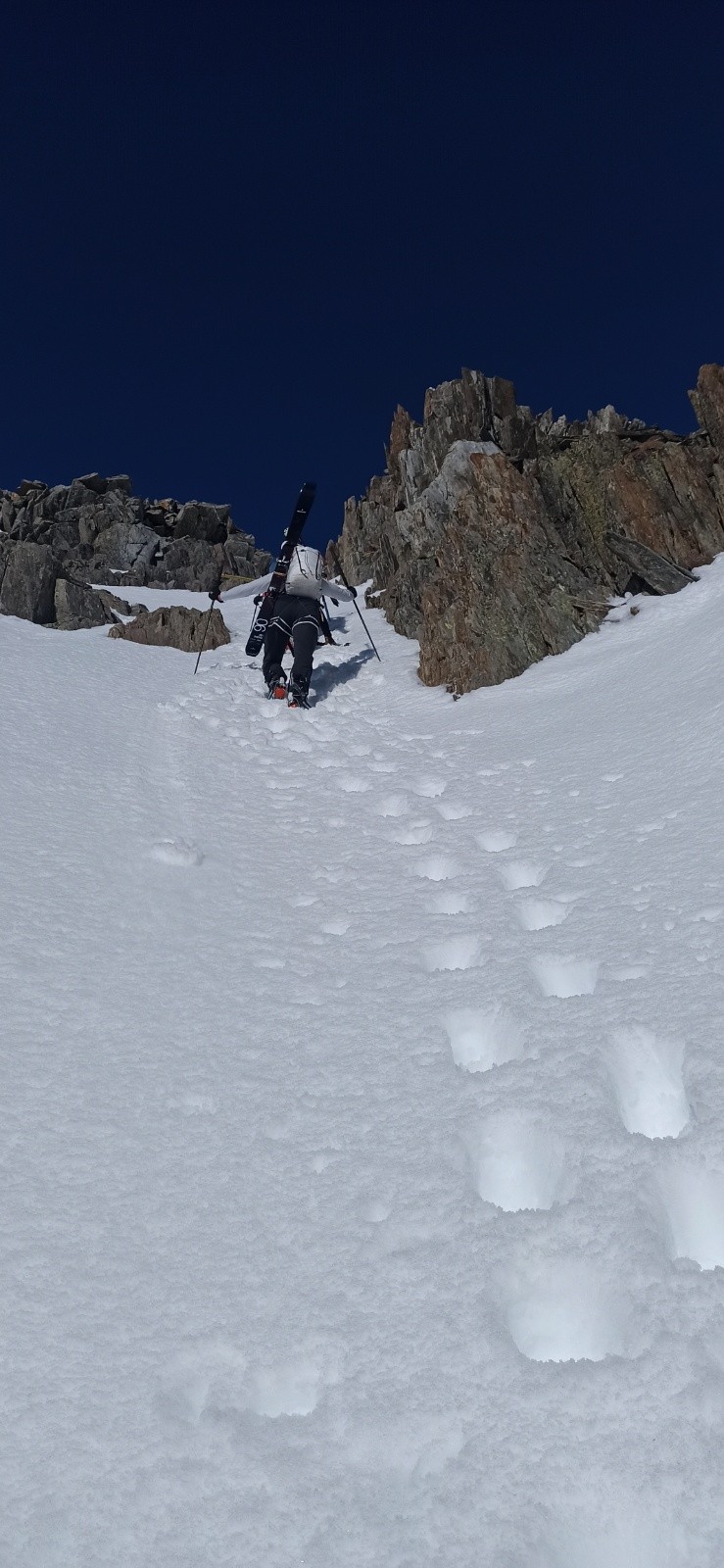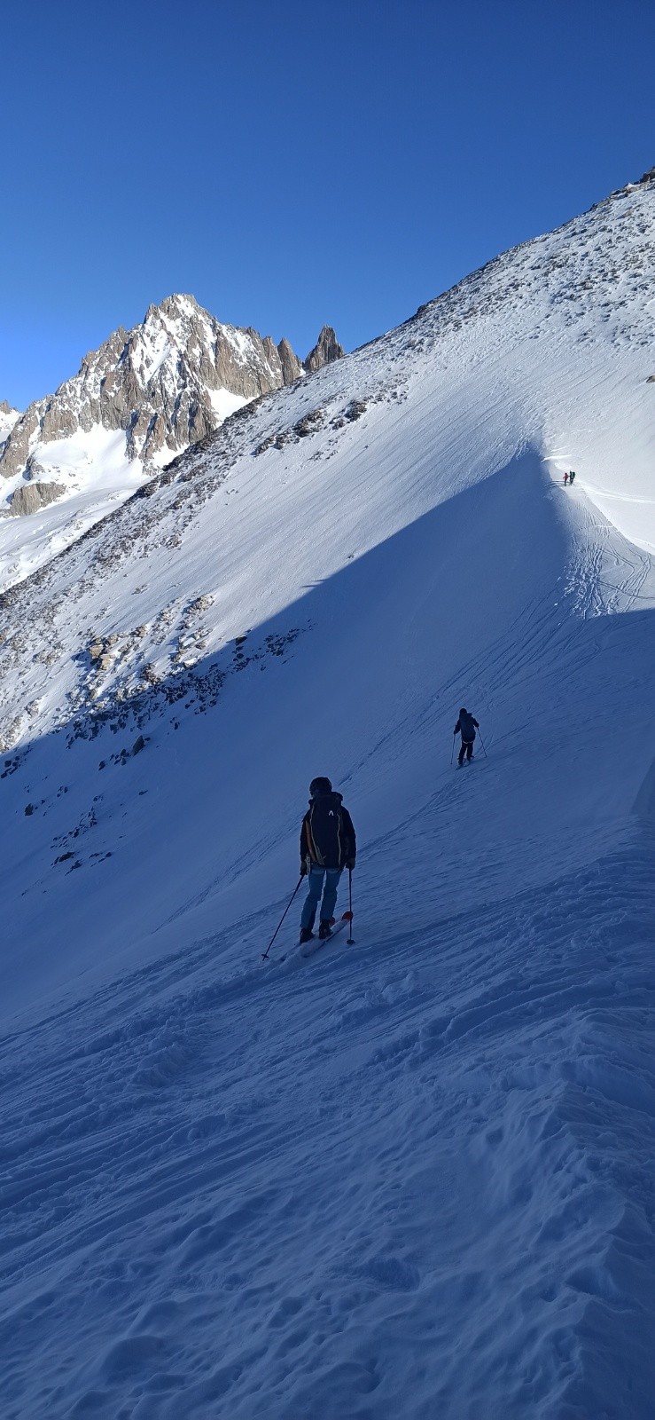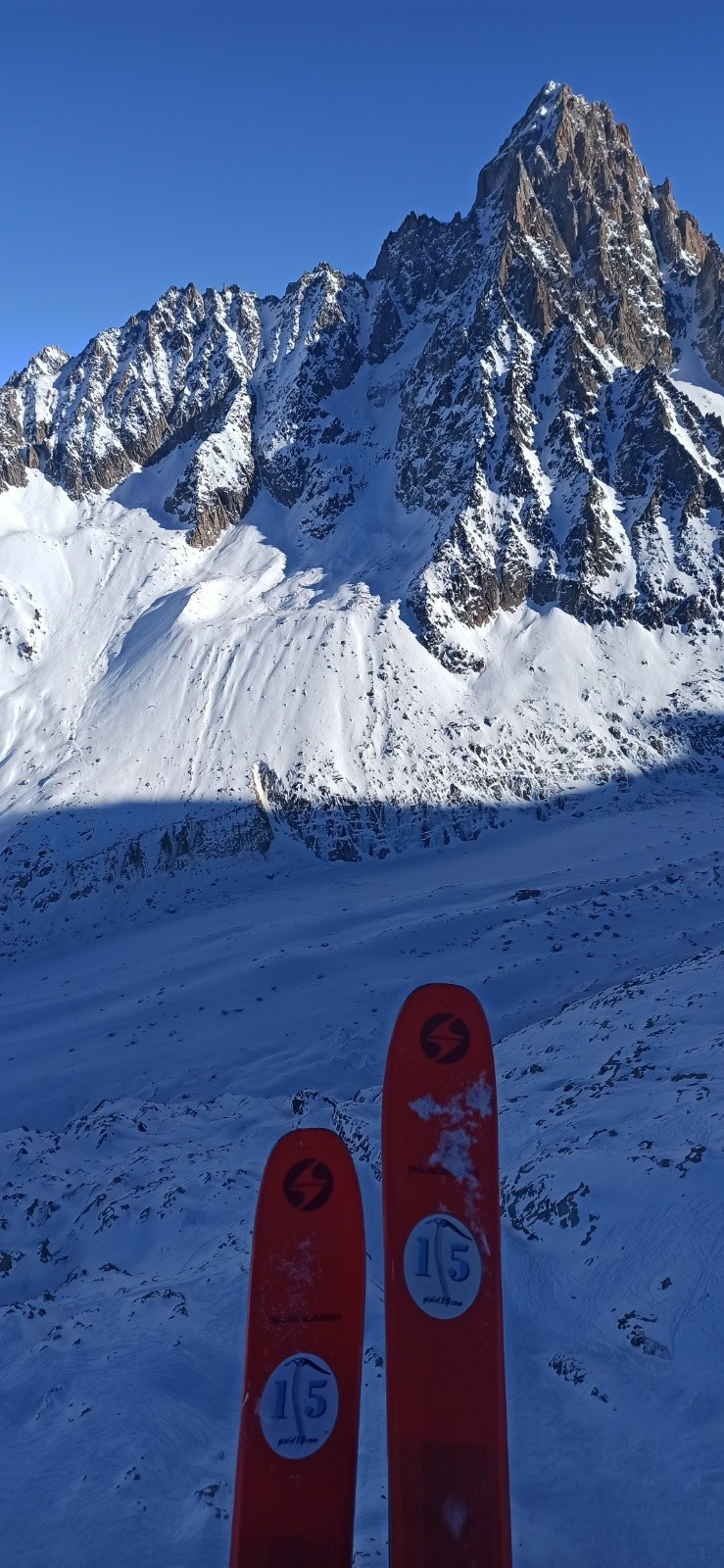 Itinéraire suivi :départ de Lognan pour le col de la Rachasse. Décollage pour poser en face au dessus de la moraine rive droite du Glacier d'Argentiere . Montée assez rapide sous la chaleur digne d'un printemps .