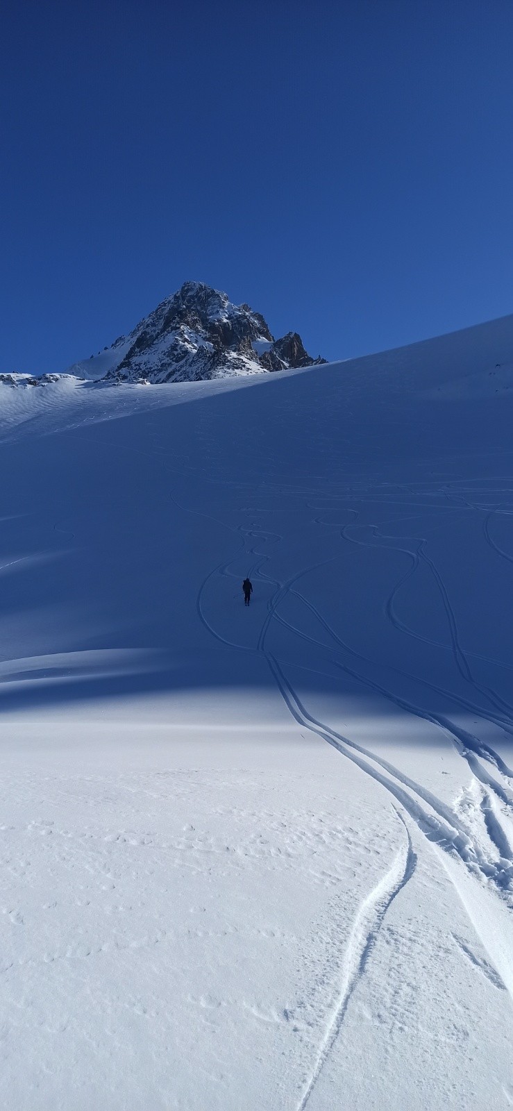 Conditions pour le ski : bof, du carton, de la neige soufflee, un peu de poudre
