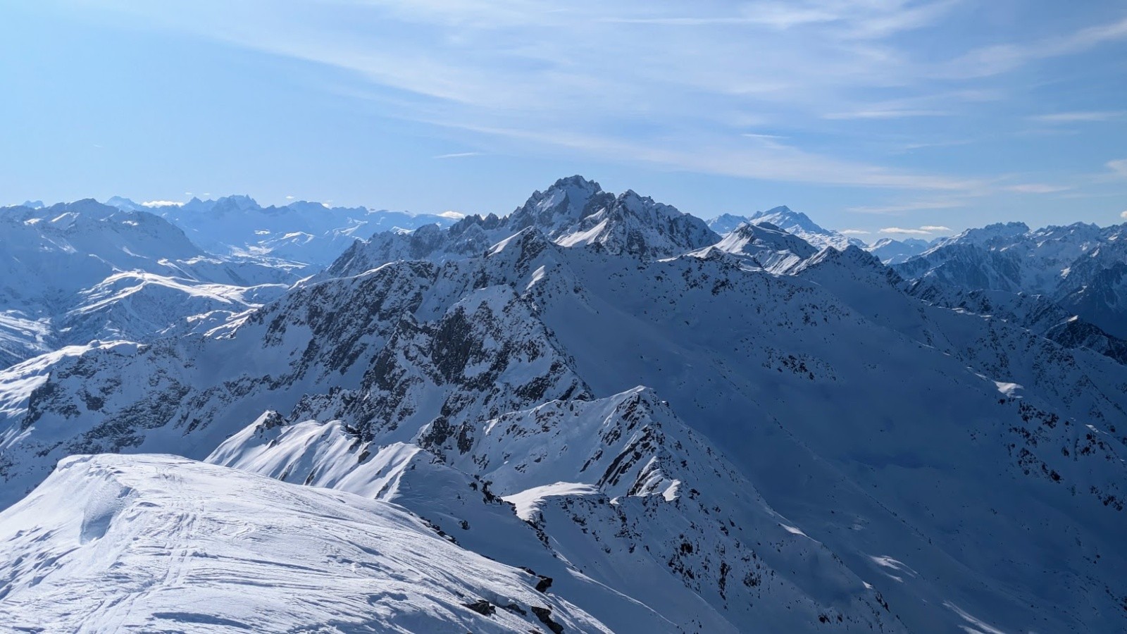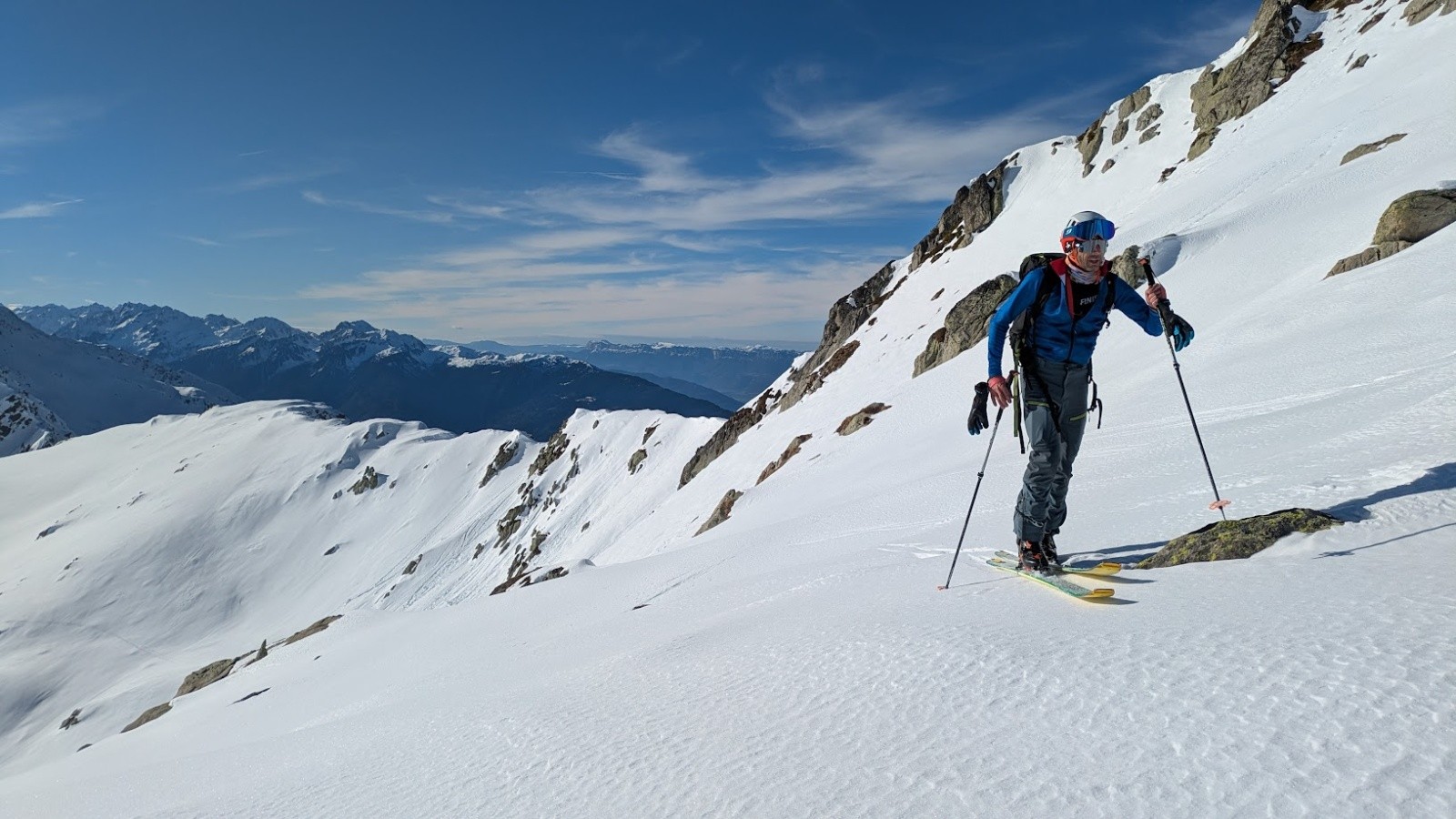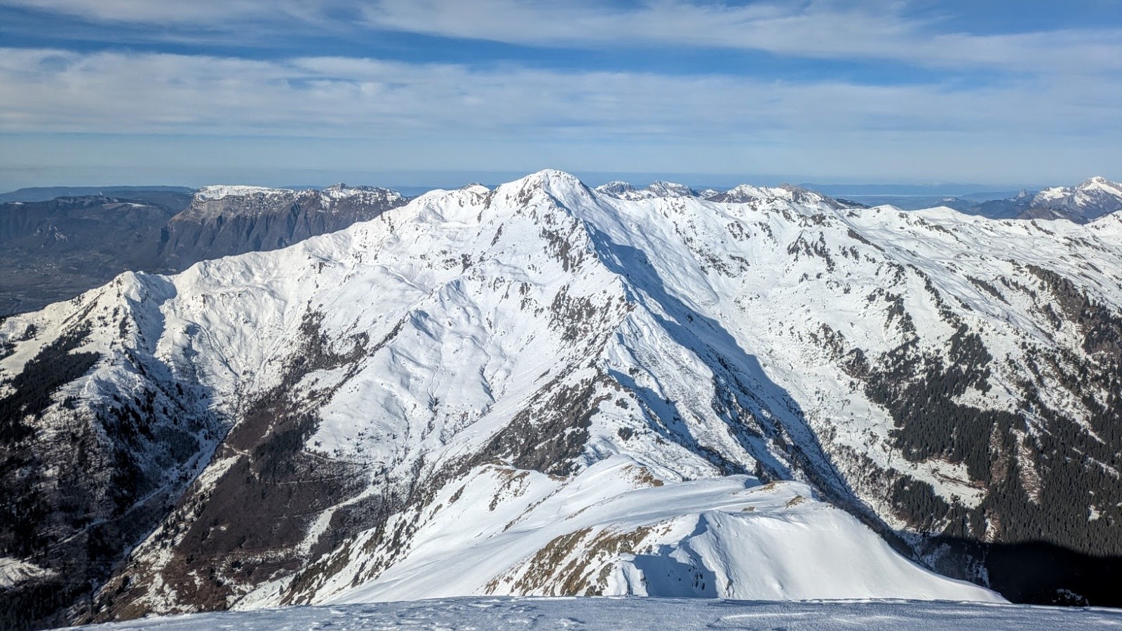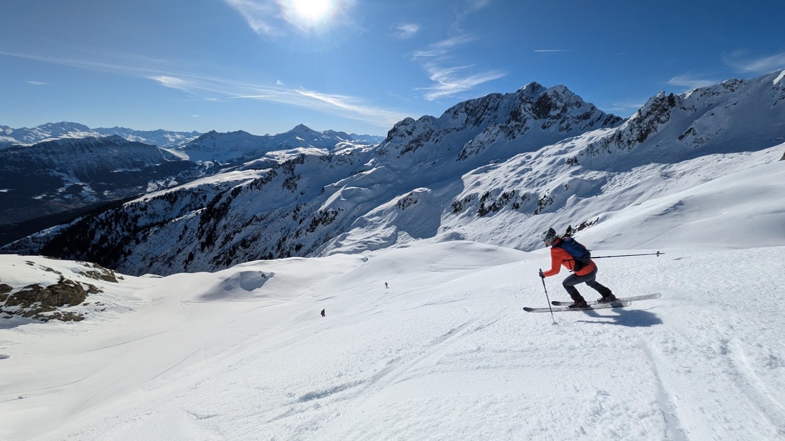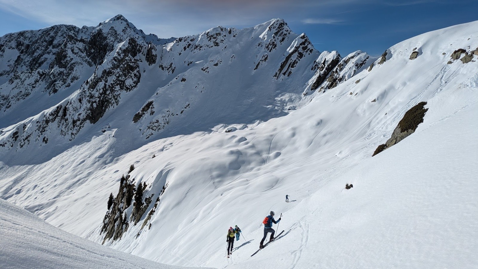 Conditions pour le ski : Très belle moquette 5* en cherchant les bonnes orientations du sommet jusqu'au Pissu puis croute pas top mais restant skiante 3*