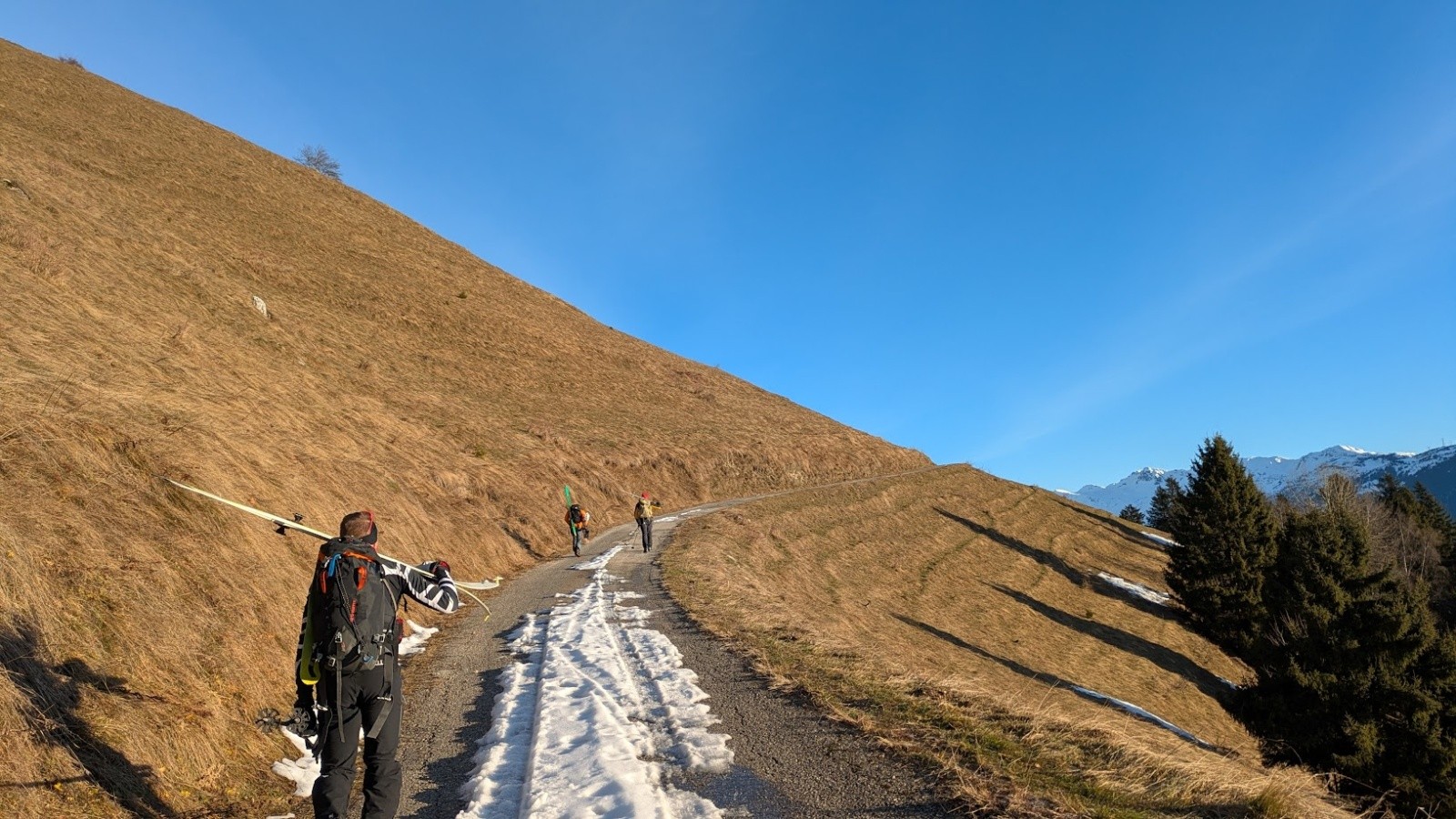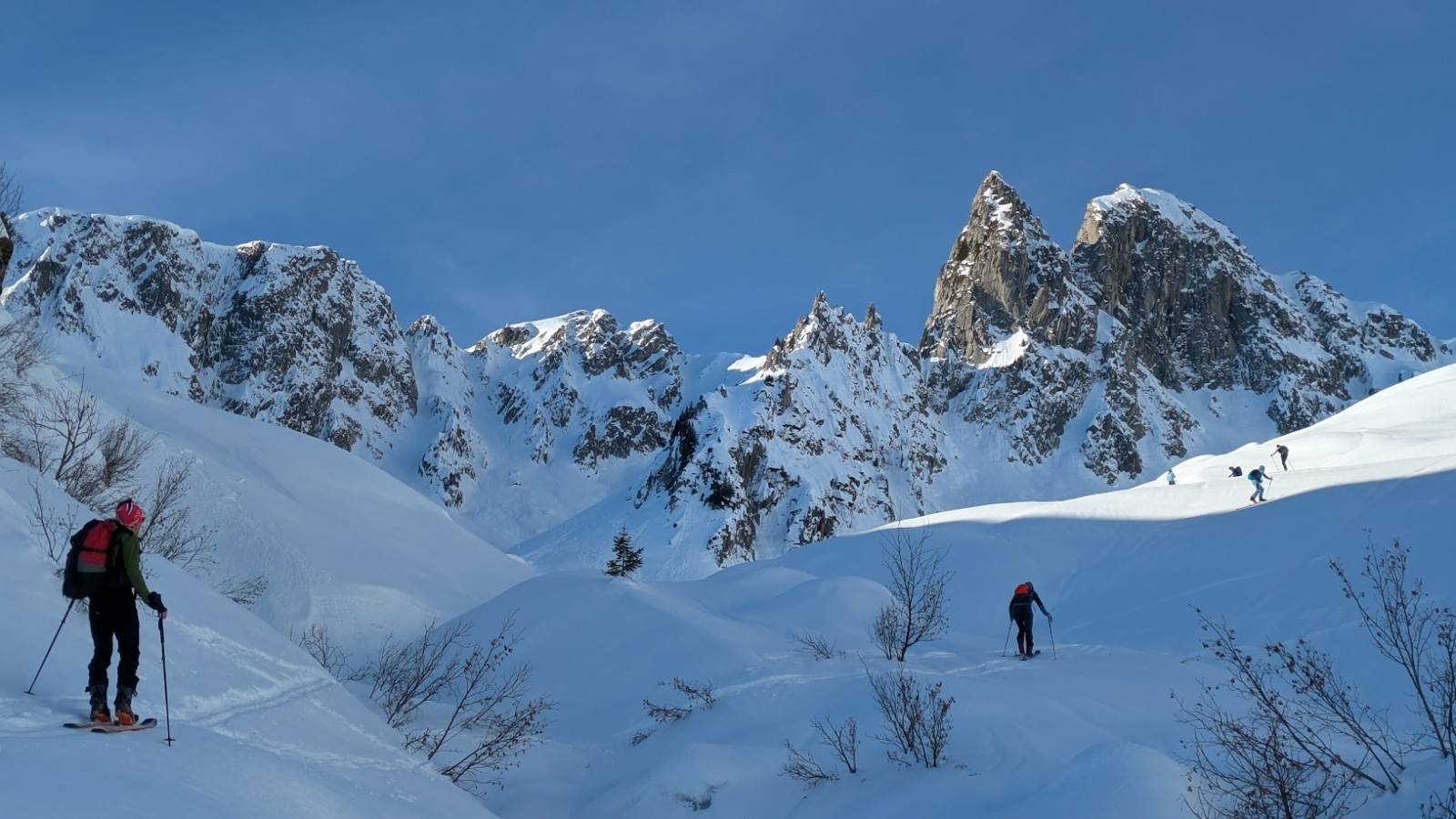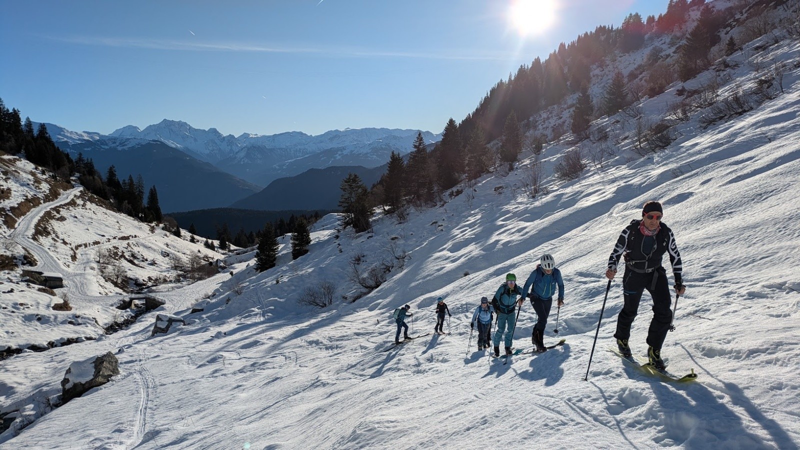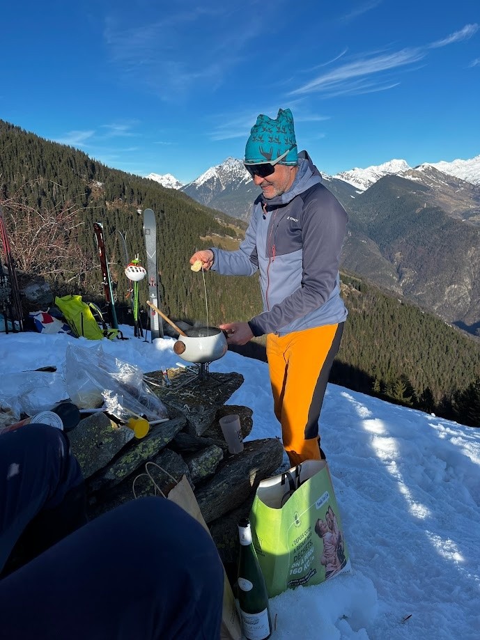 Une saison de ski de rando n'est pas complète sans notre classique journée Grizzly fondue. Cette vieille tradition qui consiste à faire un peu de ski (ou un peu plus suivant les années), puis se retrouver autour d'une fondue, ce qui permet de réviser les fondamentaux du groupe : On est un peu des ivrognes, on n'a aucune volonté devant du fromage fondu (enfin ça dépend qui), on goutte toute sorte de cépage dans un ordre discutable, on se détend avec un peu de sucre et du café, on se remémore nos fondues précédentes et autres sorties ski mémorable du temps ou la majorité d'entre nous était encore vaillante, on passe en revue nos nouvelles maladies chroniques de presque vieux et bien sur on débrief de la journée avec cette constante bienveillance qui nous caractérise