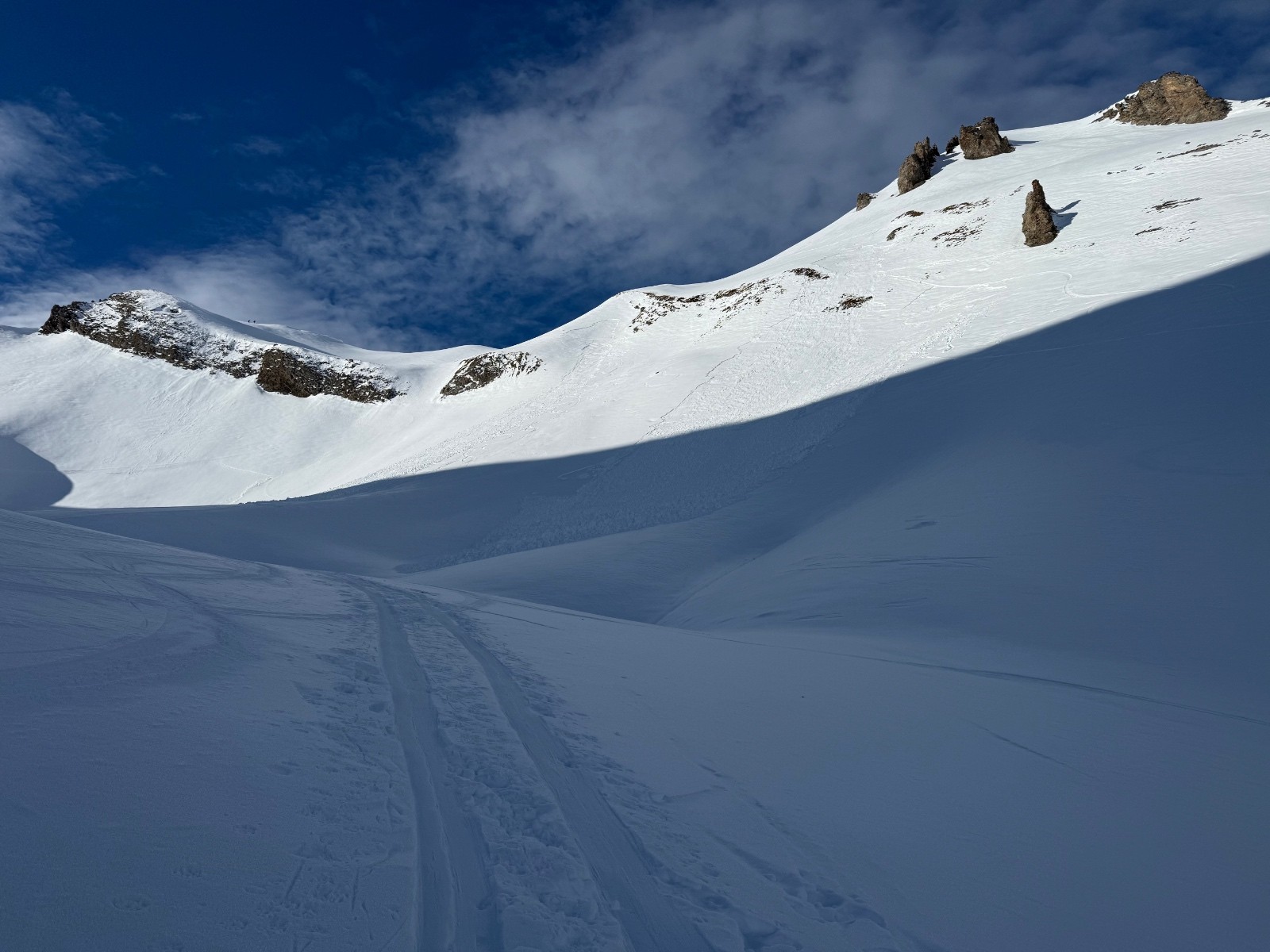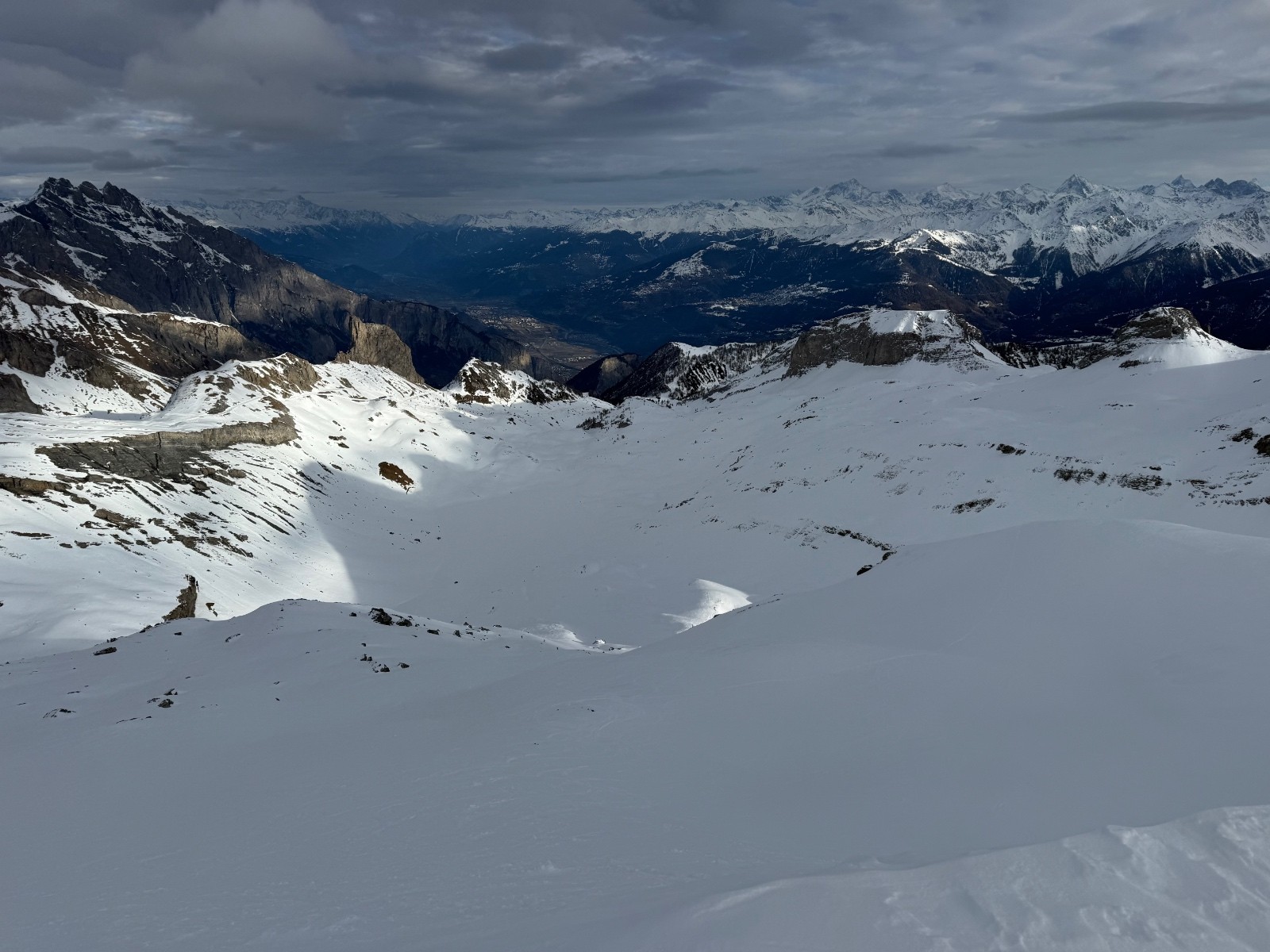 Conditions pour le ski : neige carton trafollée pour la descente de la dent de Morcles. 1cm sur fond dur pour Tita Séri qui était meilleur sans être exceptionnel.