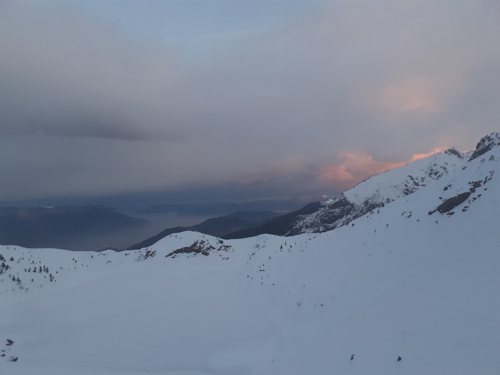 - Globalement les montées en Nord sont pas toujours évidentes, avec une neige dure qui zippe, les quelques cms de neige fraiche glissent facilement. Mention spéciale pour la montée à l'épaule du Roche de l'Homme qui est particulièrement galère (début à ski, puis à pied car ça glisse trop, puis de nouveau à ski car ça s'enfonce trop, pour finalement finir à pied car c'est dur/glacé). Toutes les anciennes traces sont recouvertes.