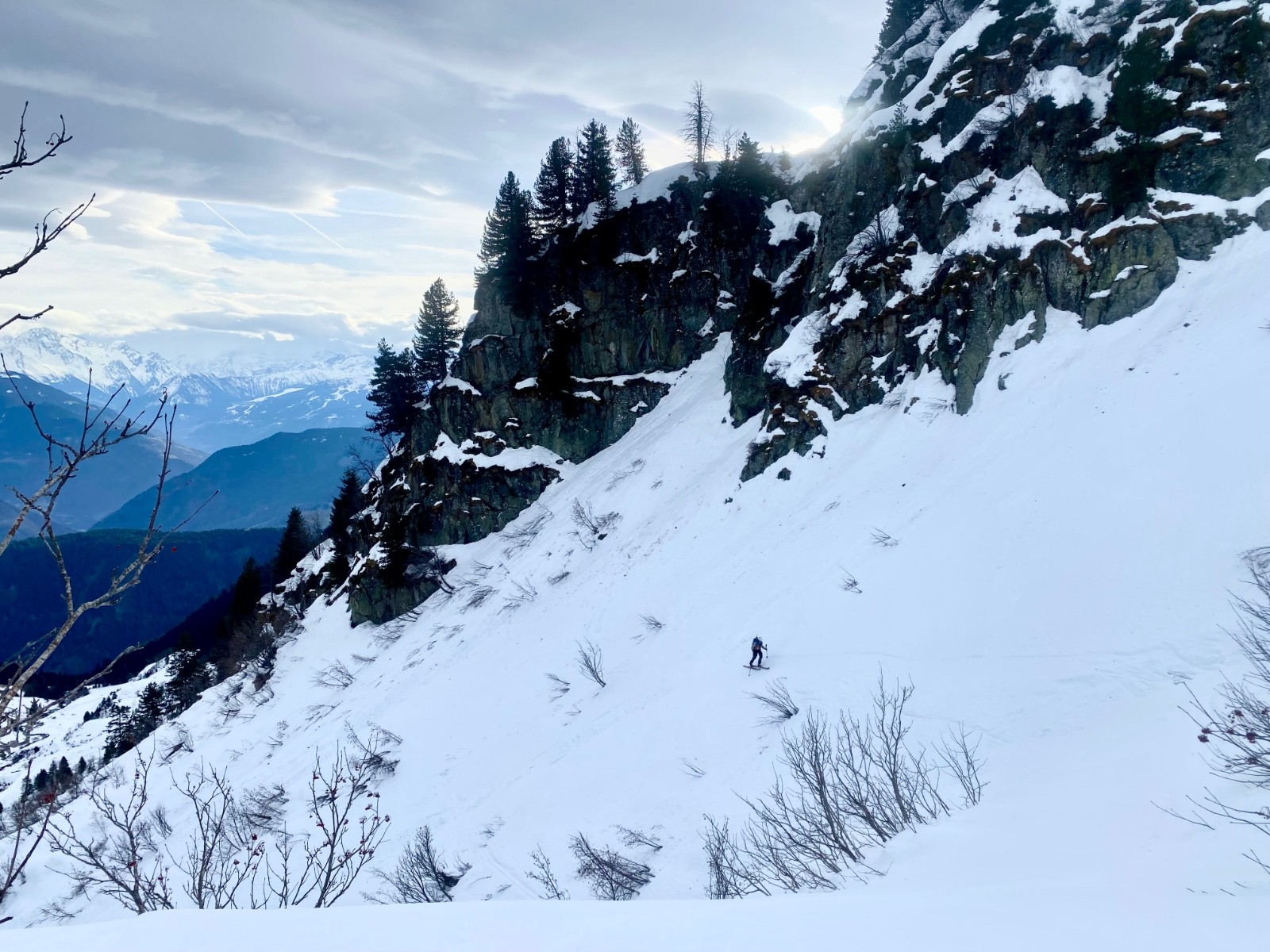 Longue traversée vers la Pointe Combe Bronsin en coupant des pentes bien chargées et quand même raides - aujourd’hui ça passe mais y a des jours ou j’aimerais pas me retrouver là !