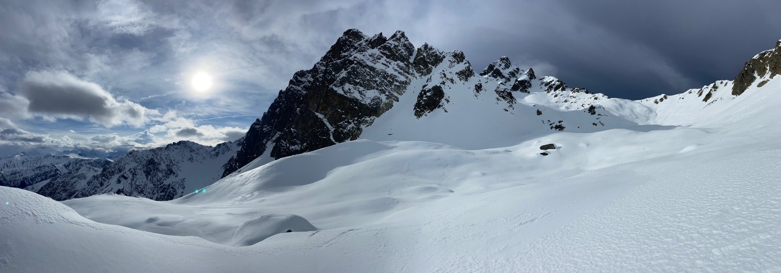 Sachant que les conditions ne sont pas au rendez vous on opte pour le versant sauvage de Belledonne côté vallée des Villards et on est servis : pas vu âme qui vive. On vise sud pour essayer d’avoir de la transfo, va pour la combe des roches qu’on a encore jamais visité.