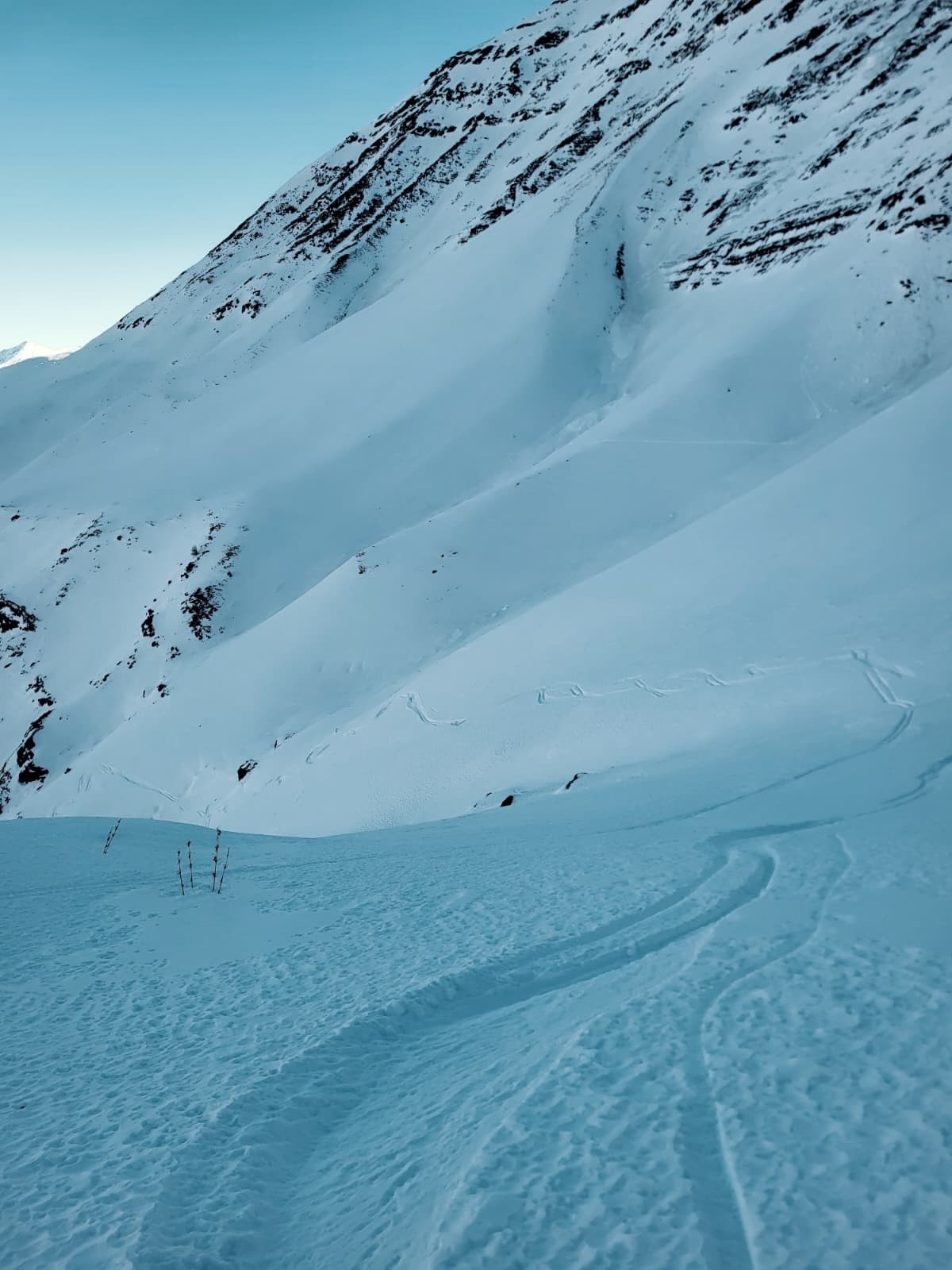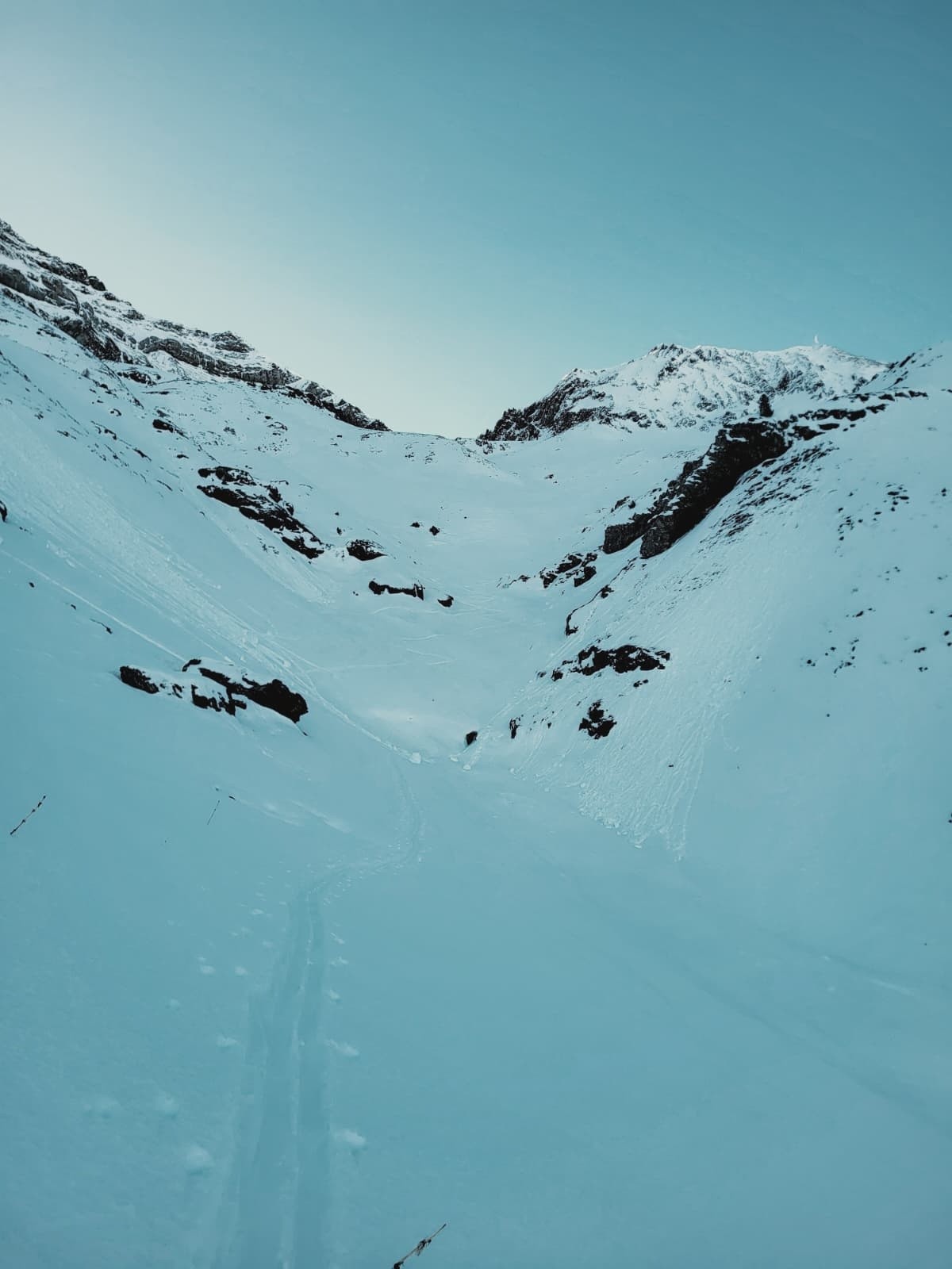Conditions d'accès/altitude du parking : Départ depuis le village a ski, la piste d'accès au pied de la combe passe très bien sans portage.