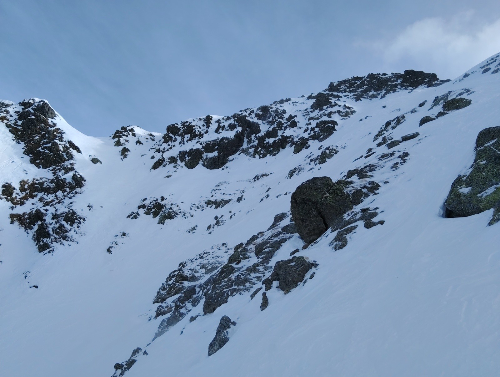 D'abord sans crampons ni piolet, je les ai mis à la moitié du parcours, quelques passages délicats,.. à la jasse quelques skieurs...