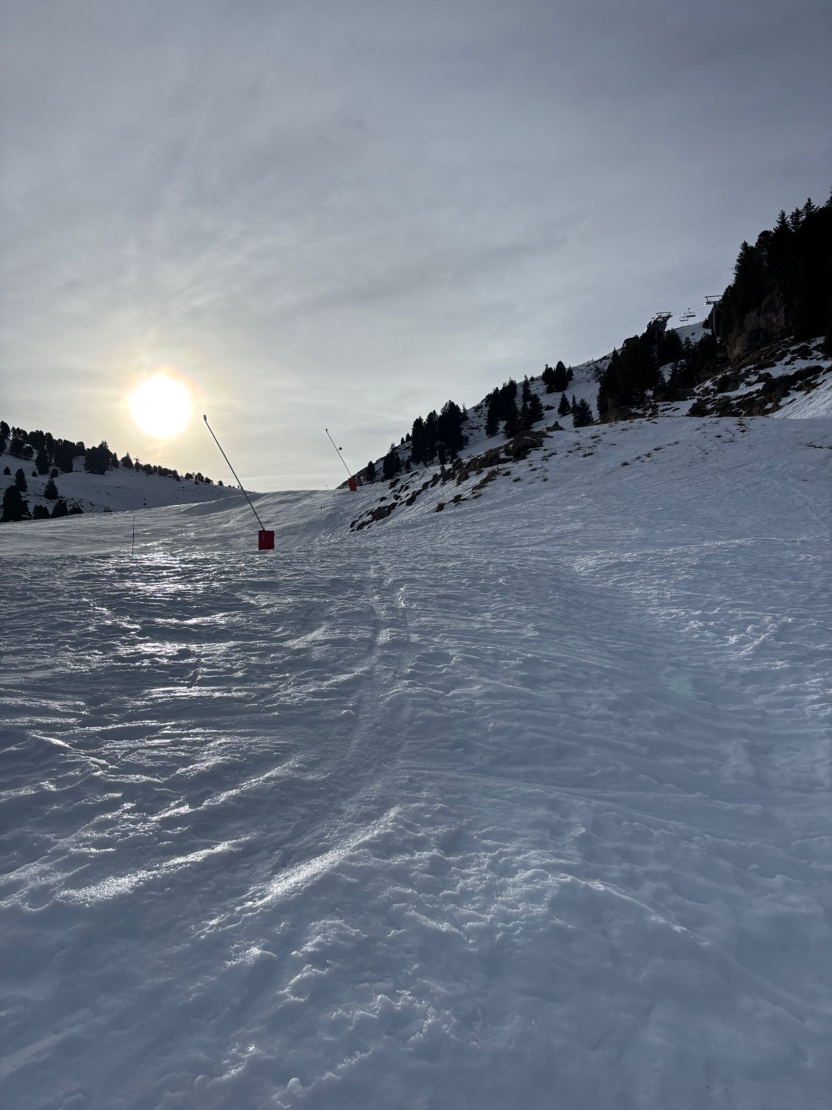 Neige marbrée jusque vers 2000 sur laquelle les peaux glissent, quand on ne marche pas sur de la neige à canon qui glisse au moins aussi bien.