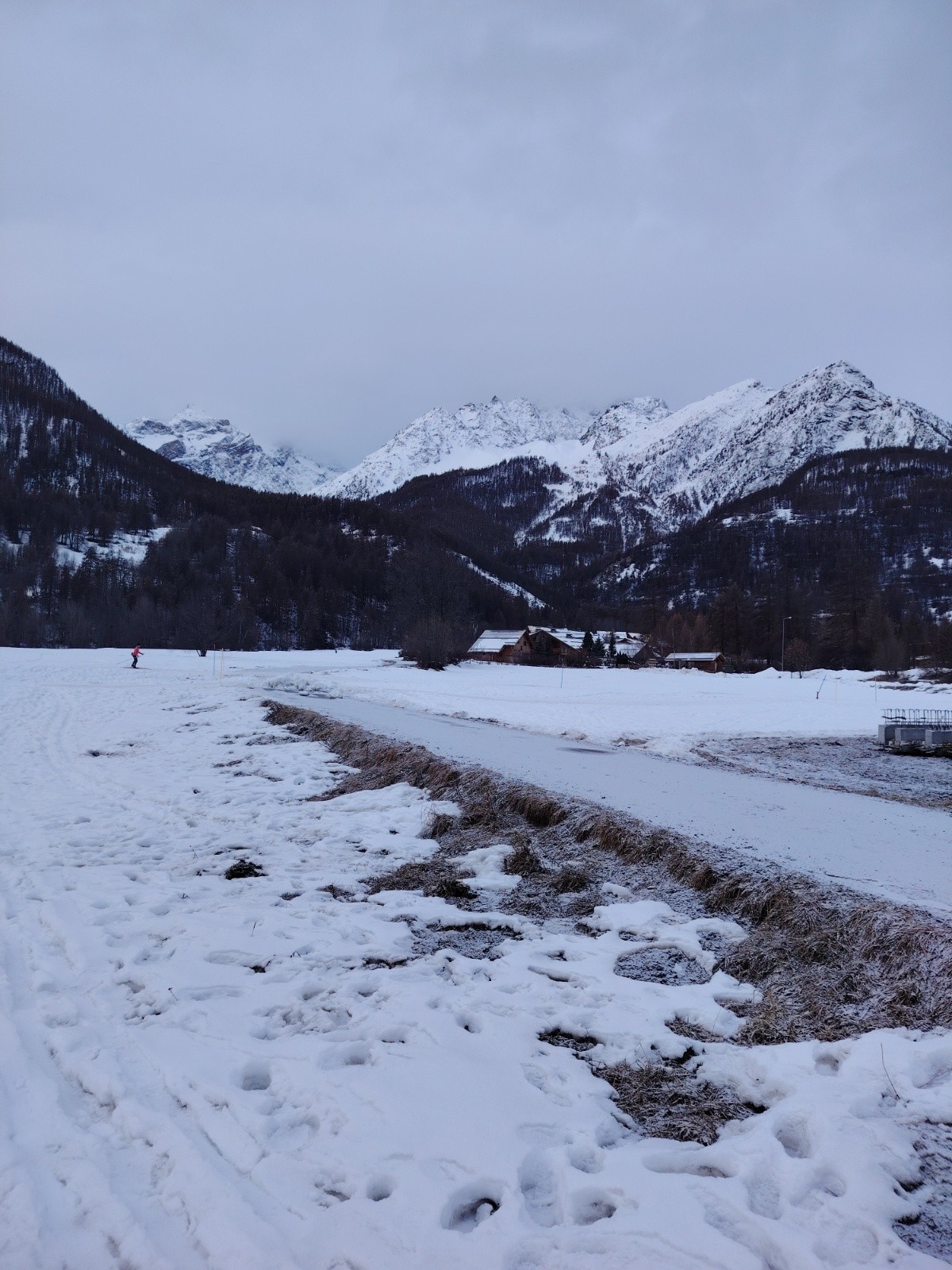 Altitude de chaussage/déchaussage : pistes, Descente par la droite à la fin pour rejoindre les pistes de ski de fond, pour esquiver la fin de la route qui est bizarrement déneigée.
