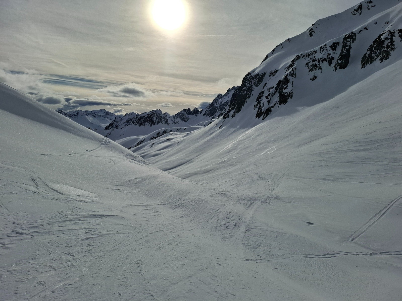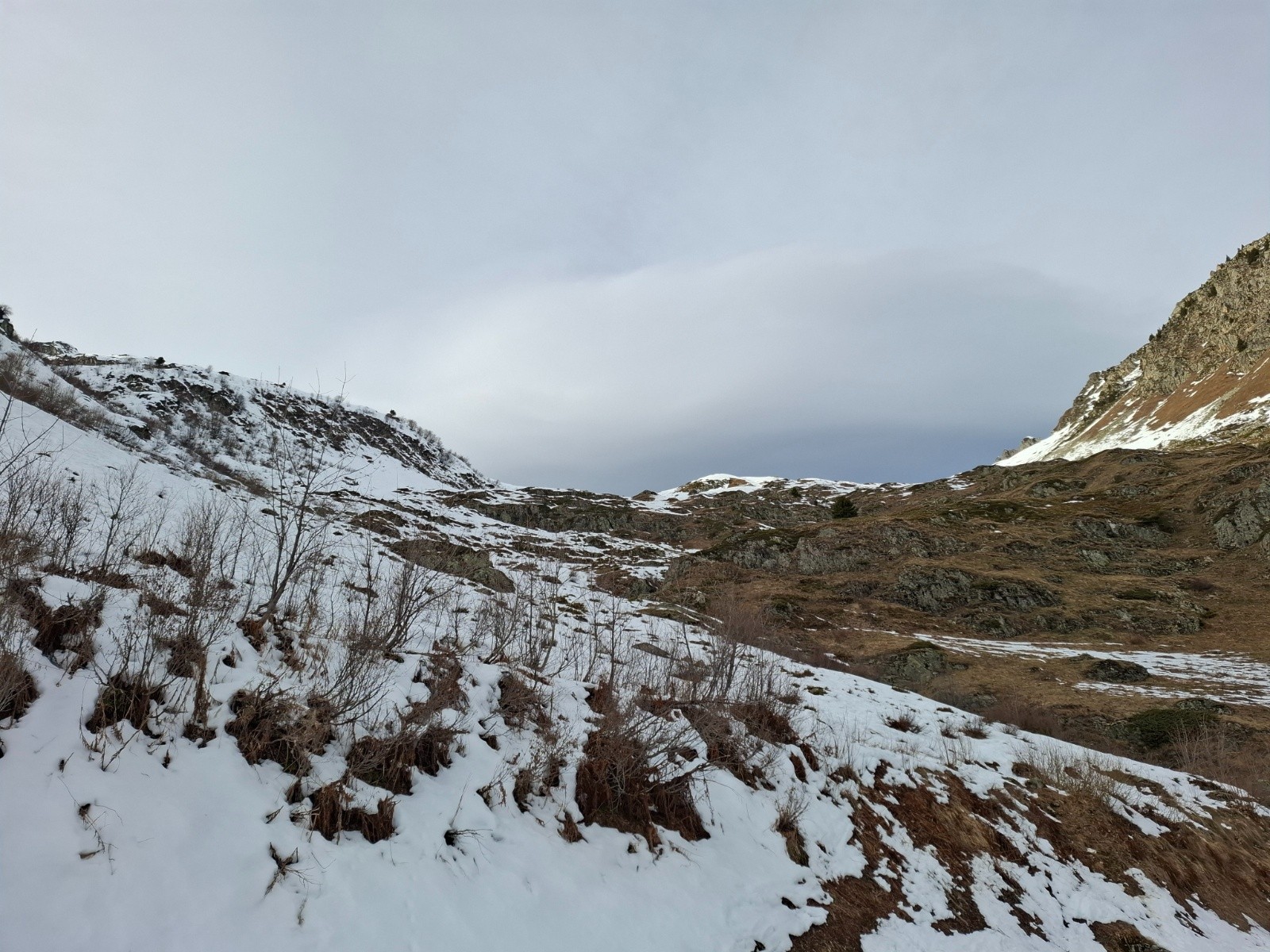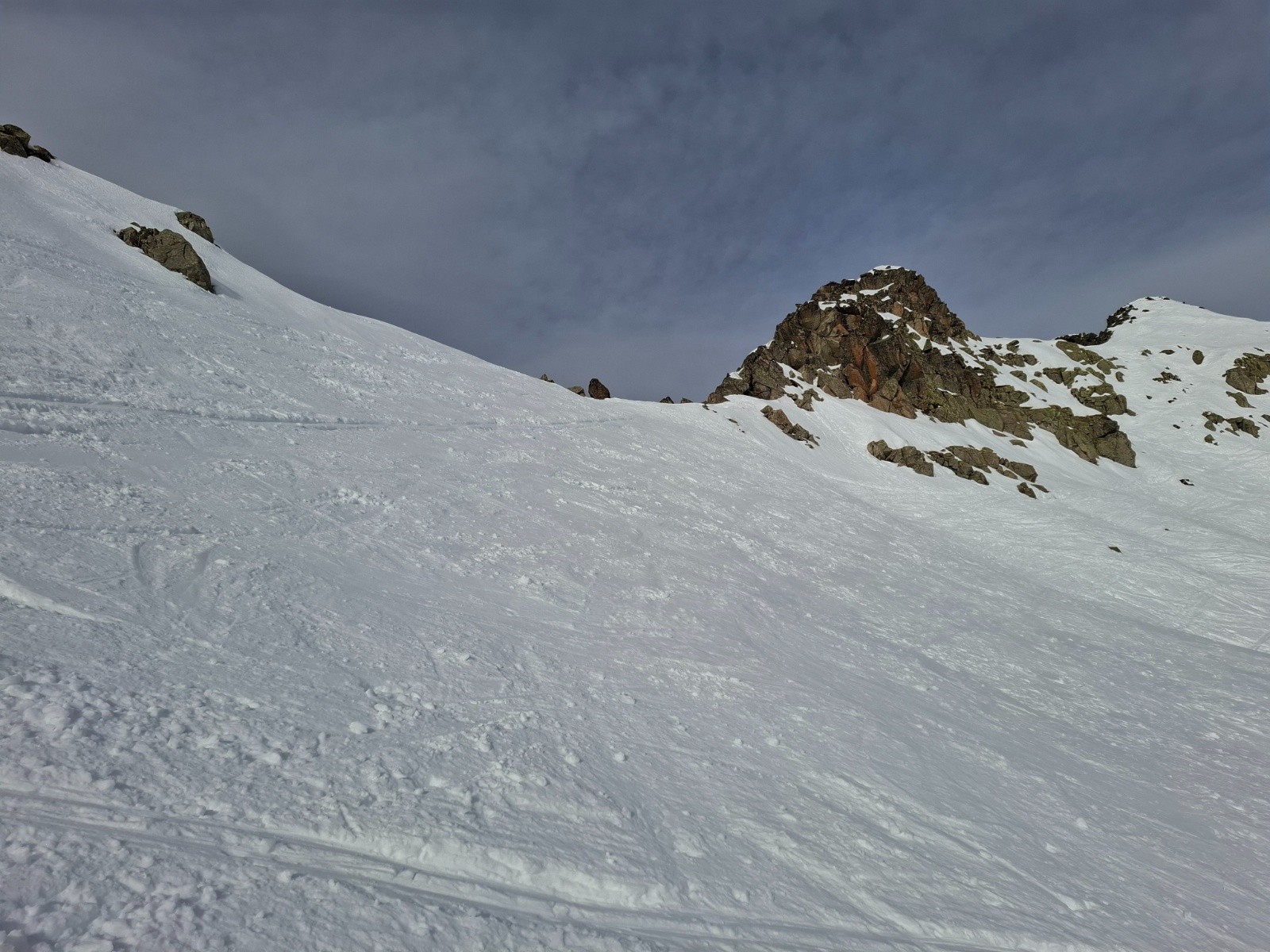 Récit :Parti tard pour espérer trouver une neige décaillée mais tout faux.Départ ski aux pieds de Ceilliers mais 4 déchaussages sur la route de la Madeleine pour atteindre le départ de la combe. Neige bien béton dans la combe avec quelques reculades (et les jurons qui vont avec😉). Vent violent au sommet et grosse caillante, tout volait donc pas de Rognolet (l’arête semblait faisable à ski) et redescente précipitée.Neige béton rapée type piste de ski sur le haut de la pente sommitale, fine pellicule de neige sur neige dure ( très agréable à skier) dans le millieu et sur les bords de la pente sommitale, et neige légèrement molle sur le bas. Par contre cata pour le ressaut du bas: trop de passages, neige casse pattes et des requins qui pointent les dents. Retour sur la route avec les 4 déchaussages de l’aller pour rejoindre Ceilliers.