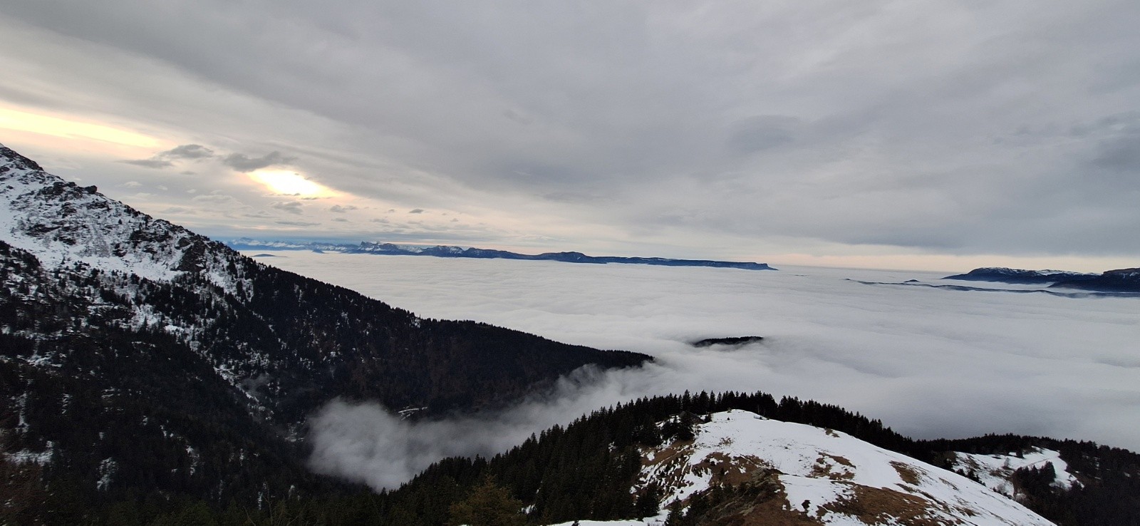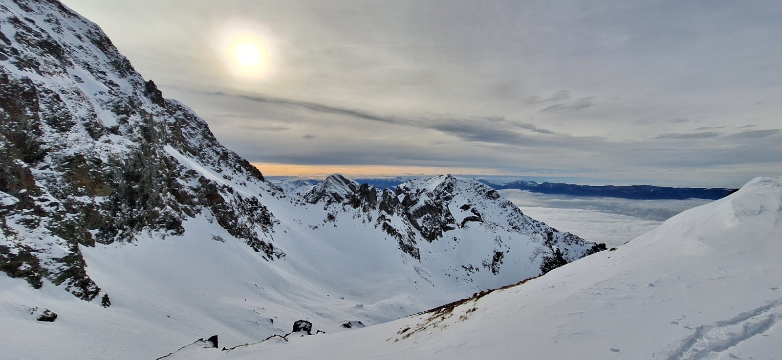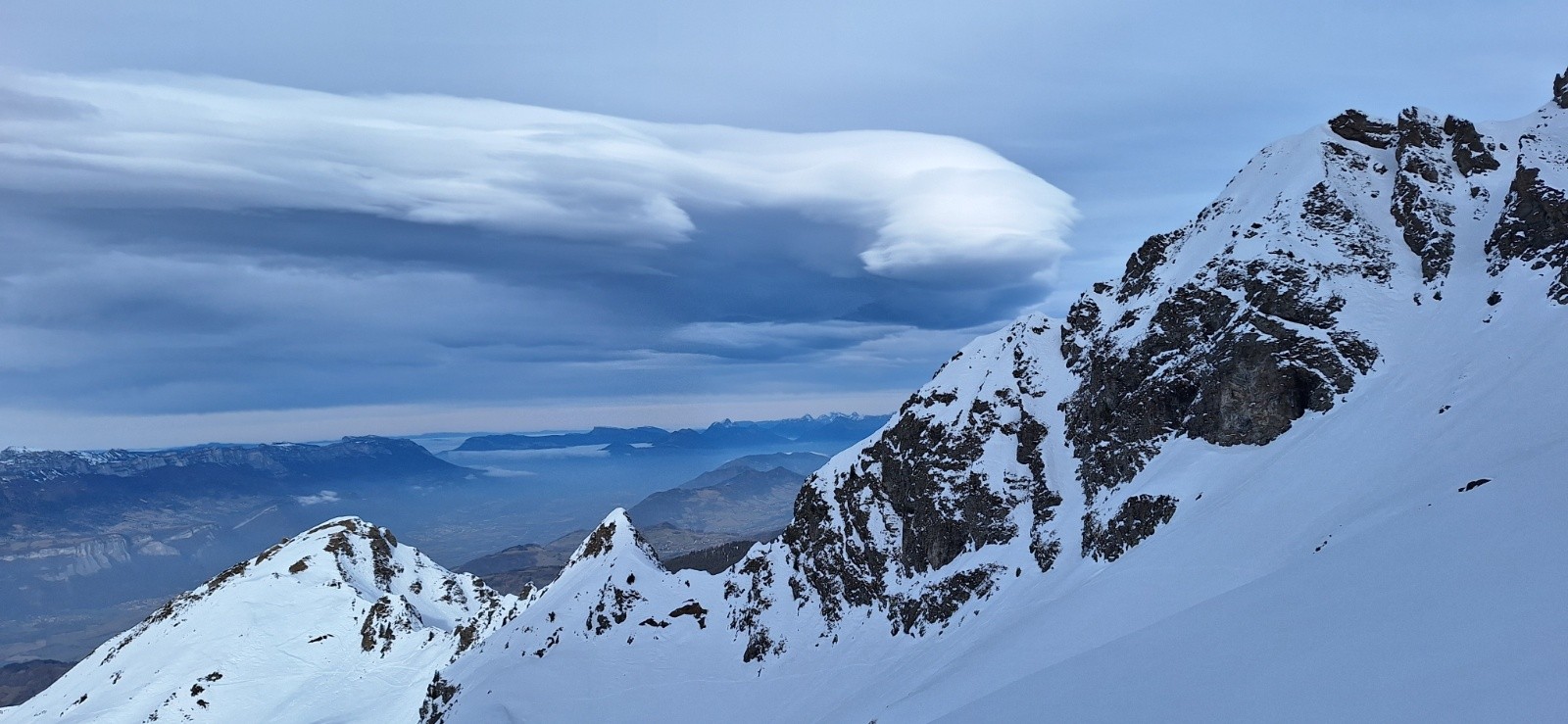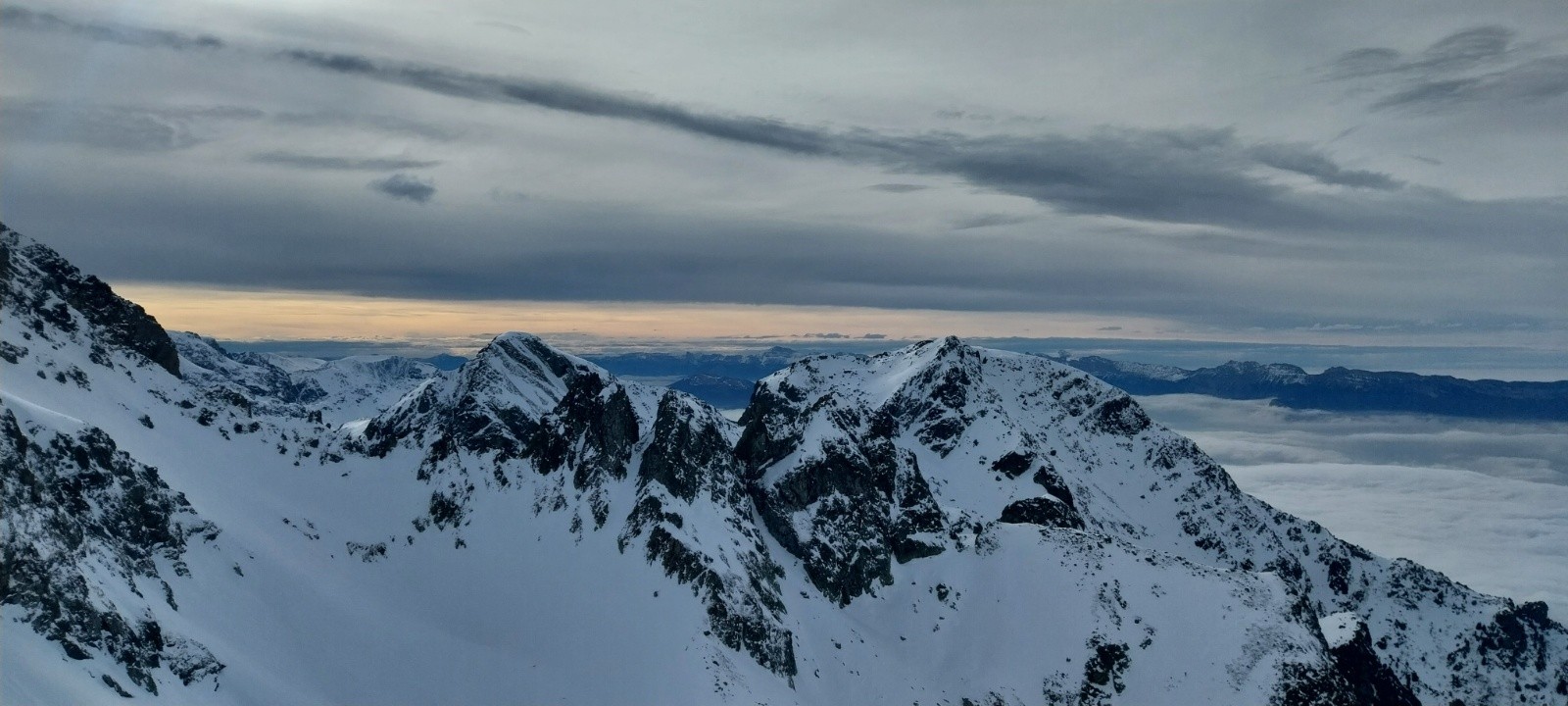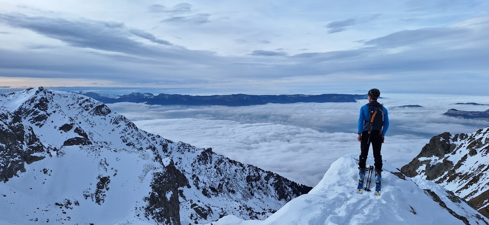 Encore une énième contemplation du paysage et de la mer de nuages qui au fur et à mesure de la journée s'est densifiée😍. On n'a encore croisé personne mais on a entendu des voix au col. Il y avait des gars qui étaient en train de sortir le Pic du Loup par un des difficiles couloirs Ouest.