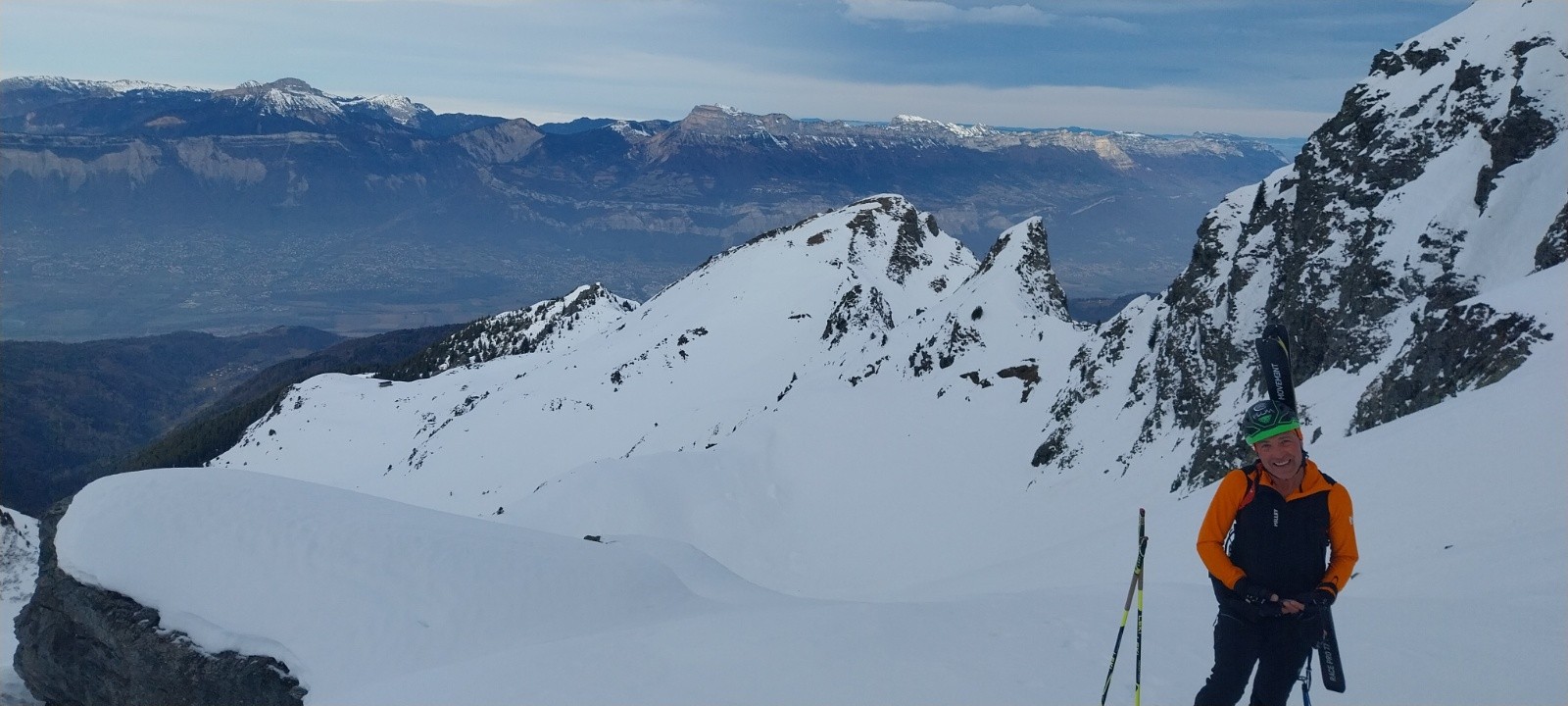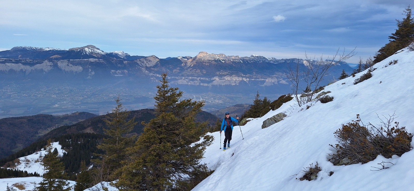 Après une première découverte dimanche Raphael et moi retournons faire du tourisme à la recherche de parkings plus calmes que les usines à gaz comme la Betta. Aujourd'hui on a beaucoup d'espoir dans ce parking de Prélong. Le départ se fait plus haut que le parking, on a continué en voiture sur la piste forestière. La piste est plutôt à l'abri du soleil et il n'y a pas trop de cailloux, quand il y a de la neige ça paraît être une alternative sérieuse à Freydières pour skier jusqu'en bas. À partir du refuge de Pré Molard on chausse les skis et on commence à en prendre plein la vue🤩. C'est très ouvert, la vue est sublime, un coup on voit la Chartreuse, un coup le Vercors, un coup Belledonne, bref c'est génial et ça pendant toute la sortie.