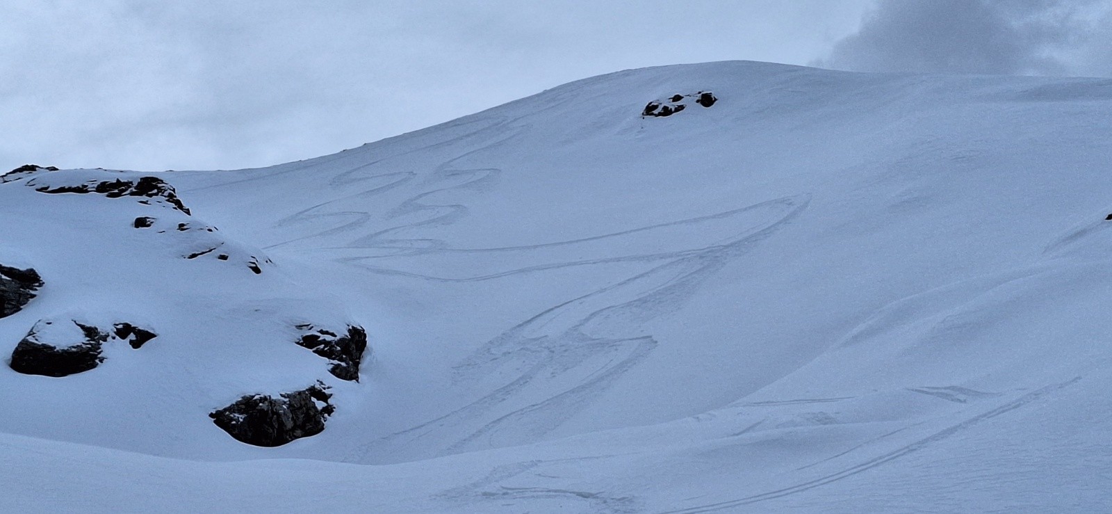 Une fois au col on avait déjà perdu beaucoup de temps, le tour par le col de Freydane on oublie encore ce coup-ci 😅. Par contre on décide de descendre en aller-retour de l'autre coté du col des Lances. Raphael démarre mais après à peine 20m on en conclut que c'est pas terrible à cause de la croûte. Il remonte et on redescend en NO. Plutôt physique mais agréable. La neige n'est pas aussi bonne qu'espéré à la montée mais on tient la meilleure descente du moment en vue des conditions dans Belledonne actuellement😜.