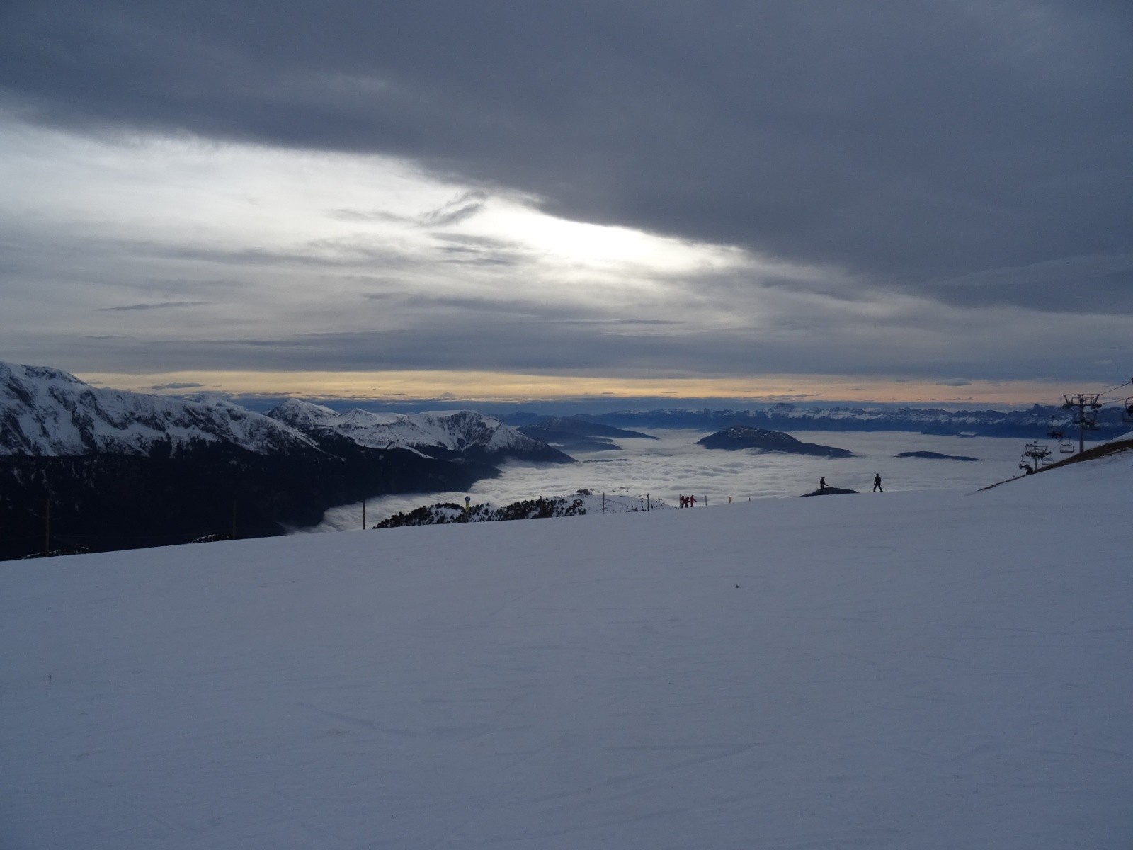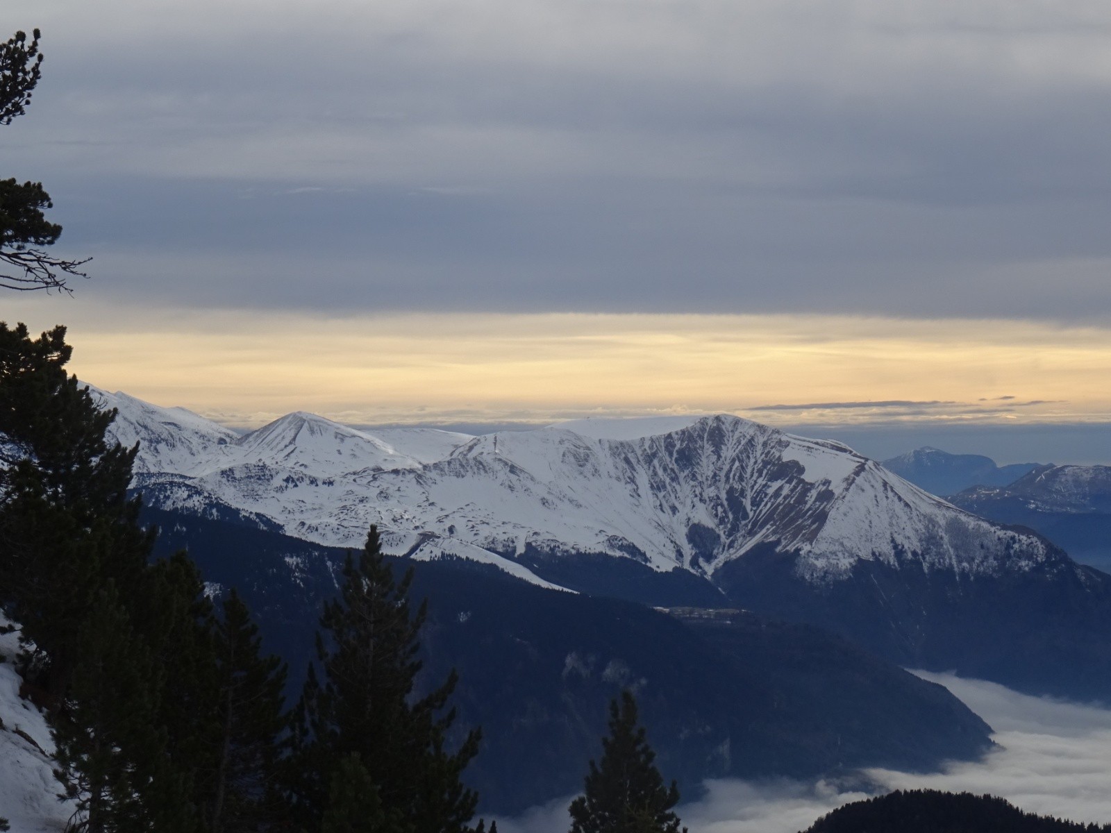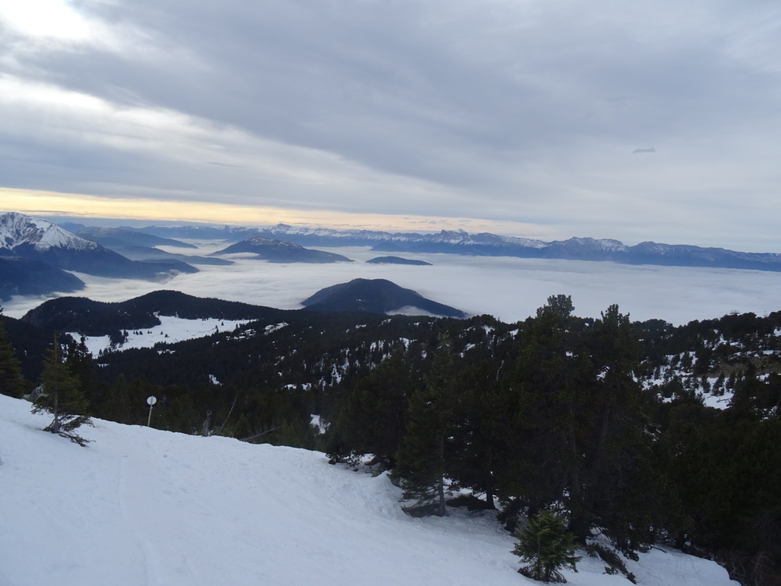 Météo/températures : soleil voilé se couvrant doucement (en vallée avec la mer de nuages, et au dessus), doux, à peine un peu de vent sur le haut