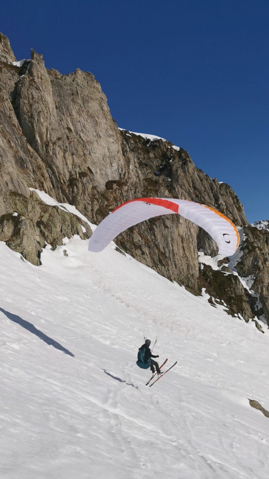 Romain descend en parapente depuis sous le col de la Louche Percée