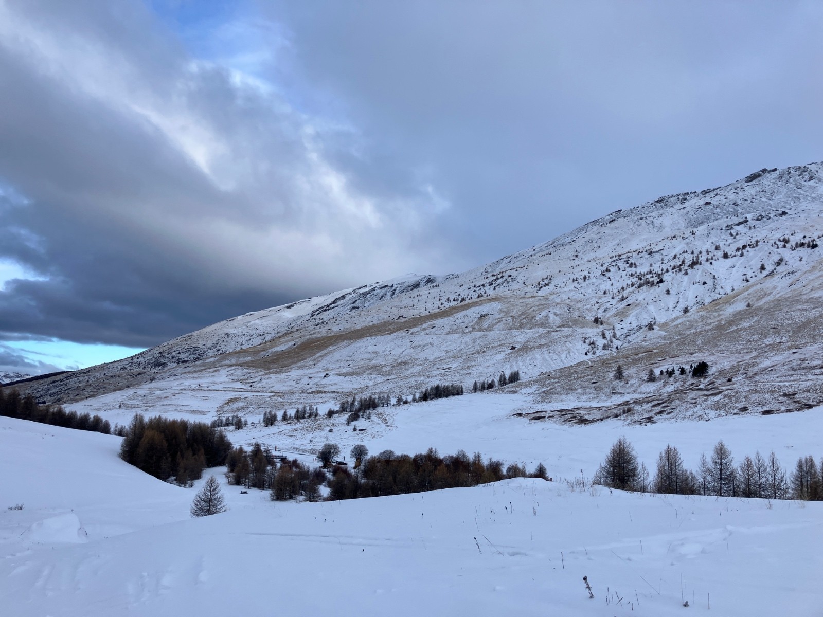 Conditions pour le ski : 5cm de poudre en bas et qui s’épaissit au fil de la montée