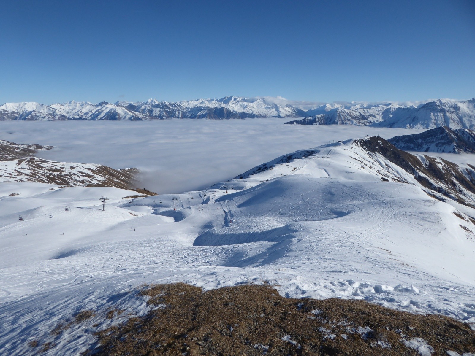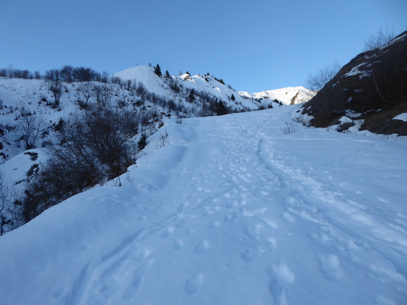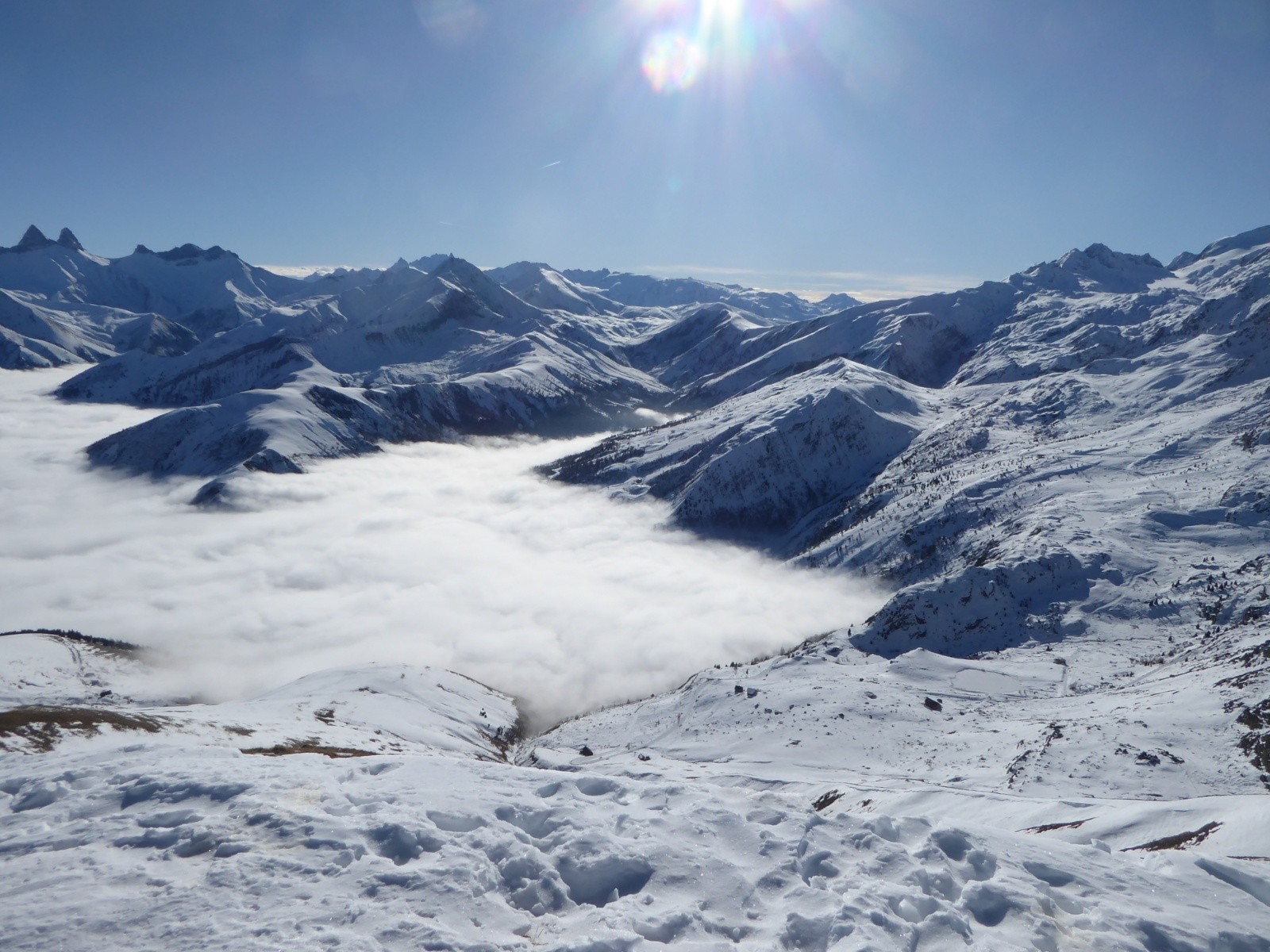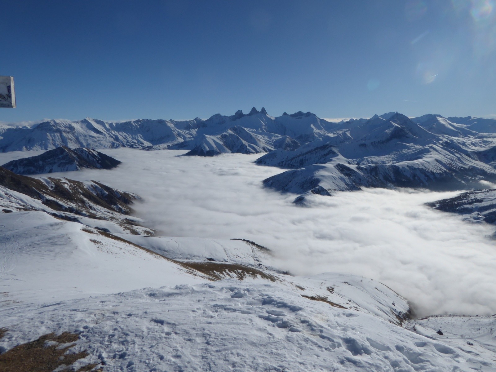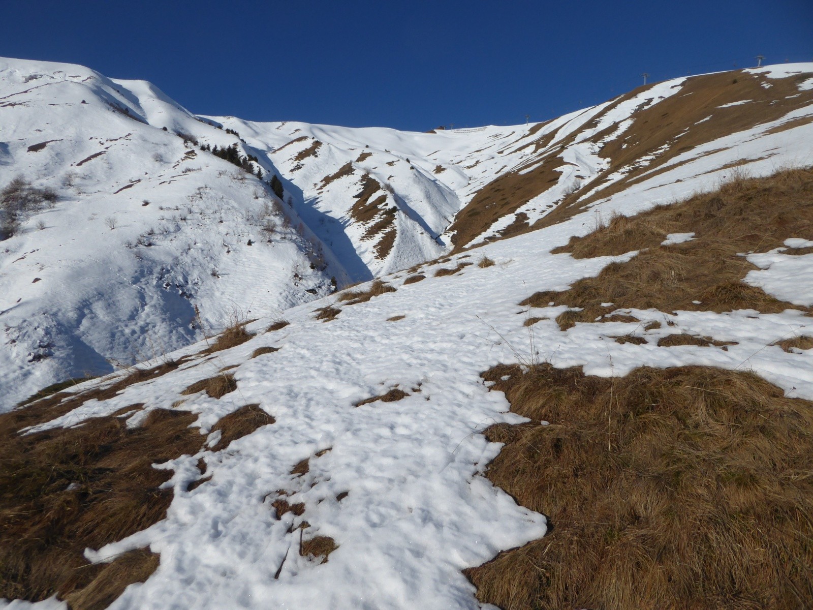 Itinéraire suivi :Je suis partis seul dans le vallon, j'ai suivie l'itinéraire du topos jusqu'à 1850m, puis j'ai monté par une croupe sud est jusqu'à la piste piéton vers 2200, ensuite longer les pistes jusqu'au sommet de l'Ouillon avec une pause pique nique bien mérité, tres jolie vue sur tous les sommets au dessus de la mer de nuage, descente par les pistes et retour au vallon par la piste rouge de l'envers fermée, pas de traces de montée dans le vallon après 1831m et sur la croupe.