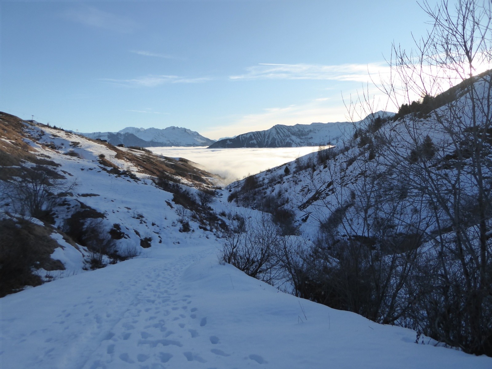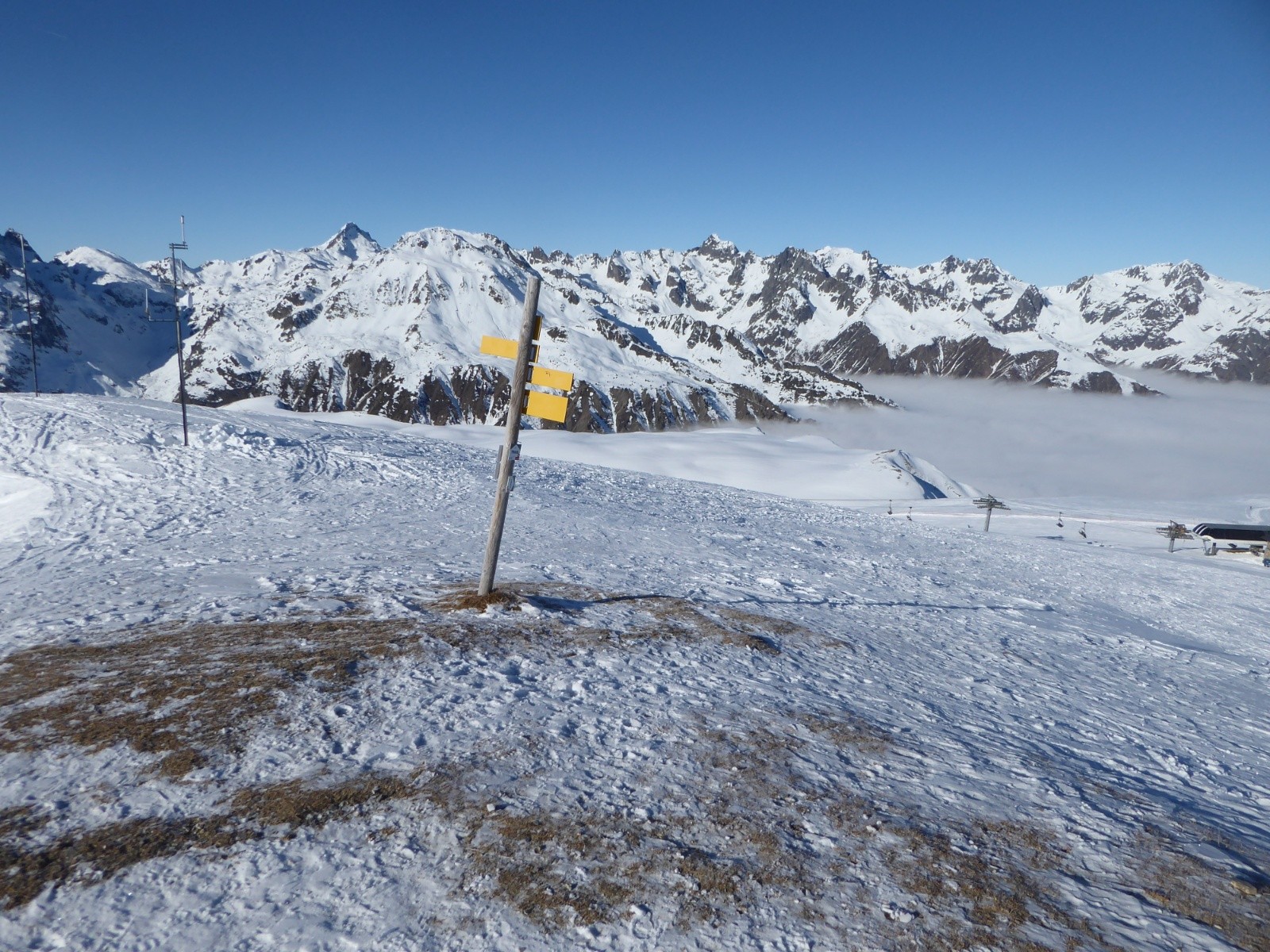 Météo/températures : Beau temps froid le matin -5°C, stratus à 1500m et 1900m l'après midi, chaud en montée avant de rejoindre la piste de pietons, un peu de vent froid au sommet et -4°C au retour dans le brouillard