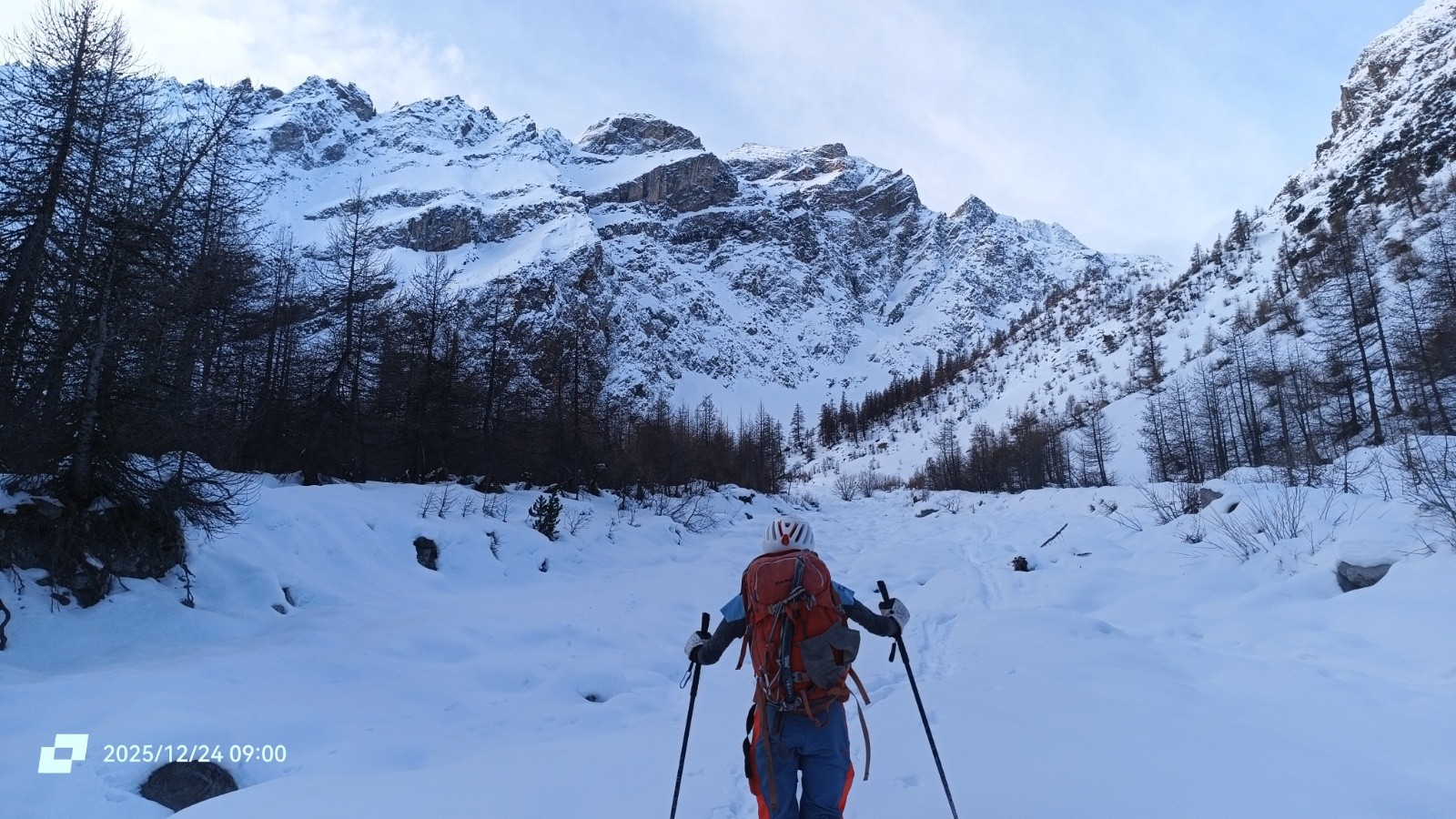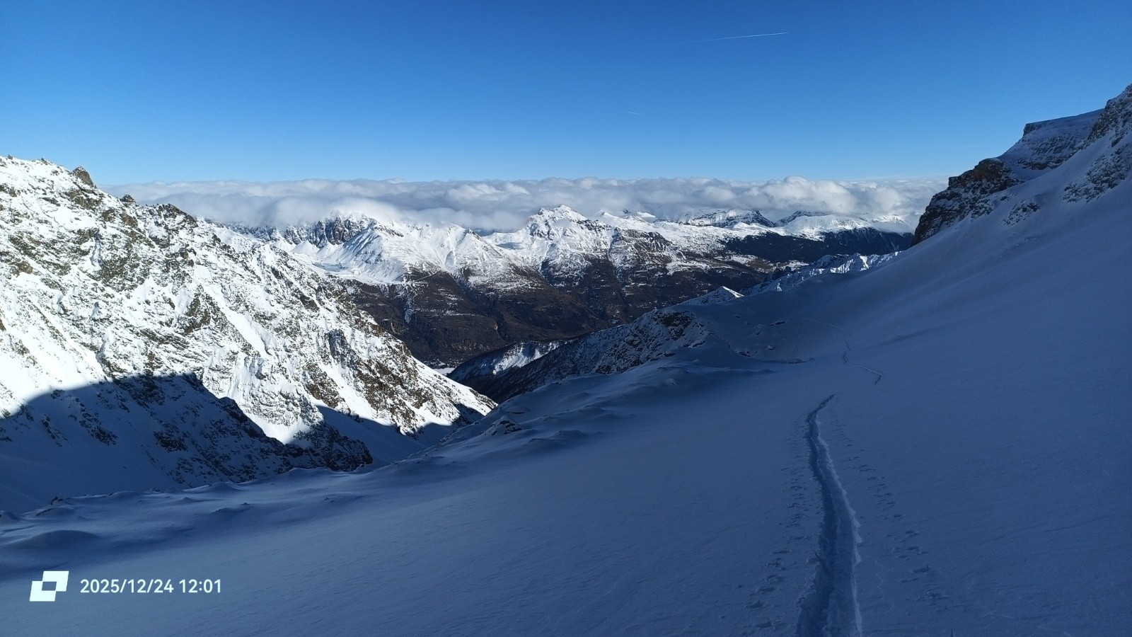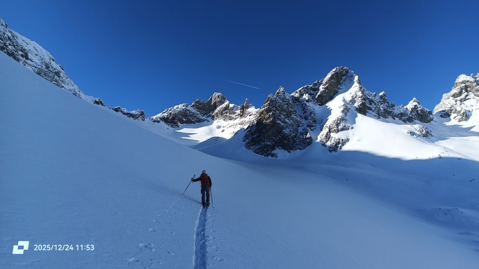 Conditions pour le ski : neige damée par le hors piste de la station jusqu'à 1950, poudre légère dans le vallon. Environ 1m10 à 2700m.