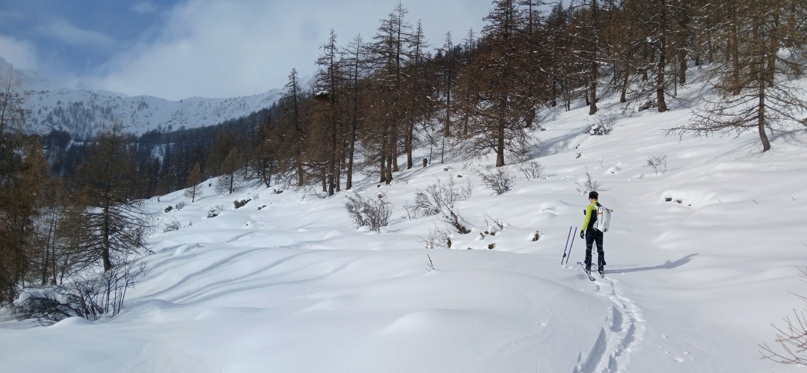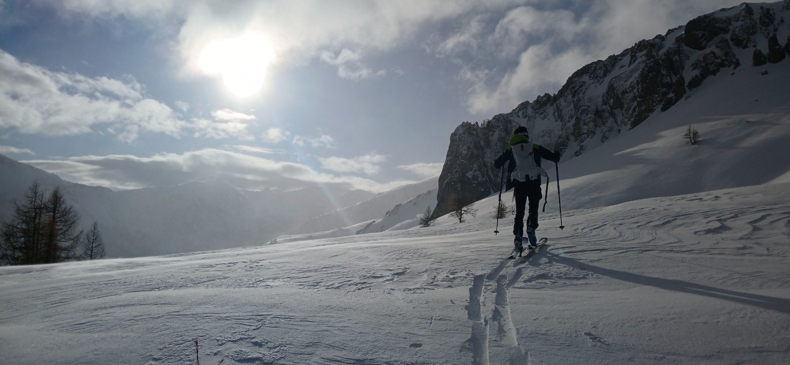 Dans l'autre sens c'est mieux, avec la montée sur Roche Rouge plus facile à tracer en premier et meilleure neige sur l'ensemble.