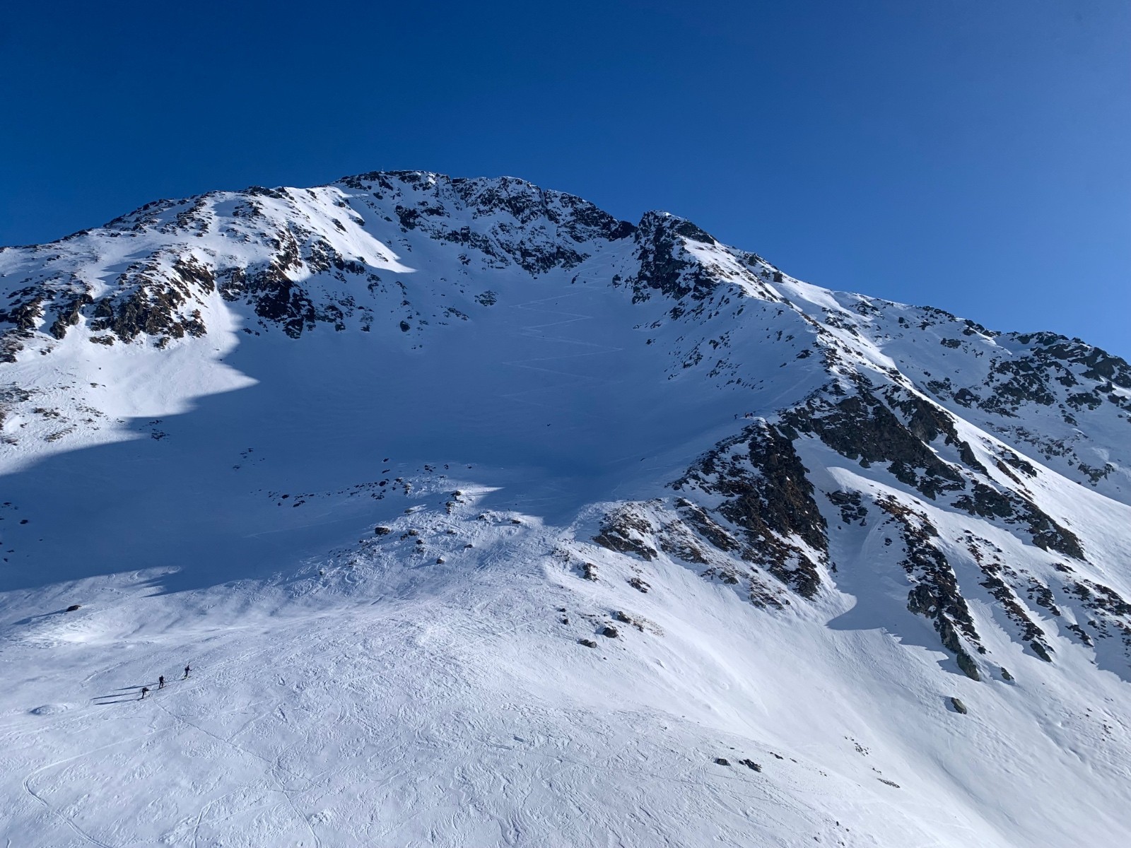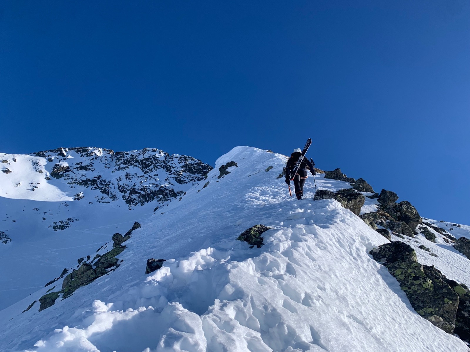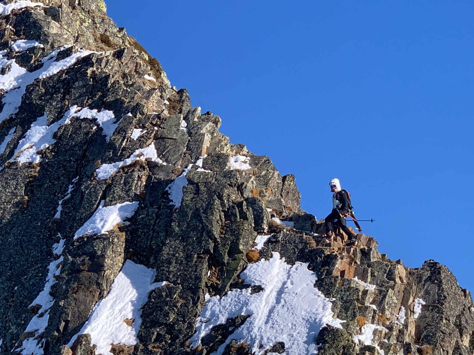 Itinéraire suivi : moult hésitations vu les conditions, finalement pas de prise de risque on suit nos prédécesseurs skitourien (merci) pour l’arrête du grand mont. En voyant la legette en montant, on se dit pourquoi on irait pas prendre le soleil avant ? Ça doit être decaillé. Non non non, apres une traversée en montagne russe, la montée n’annonce pas de bon ski, mais au moins c’est confort au soleil. Descente sans intérêt, puis Re traversée direction pointe du dard pour attaquer la mignonne arrête du grand mont, c’est ludique et on est content de ressortir les piolets. La corde reste au fond du sac par contre. La descente est vraiment confortable et agréable, damée par les nombreux passages, puis on rejoint les pistes pour une longue descente plaisir, on évite la croûte :)