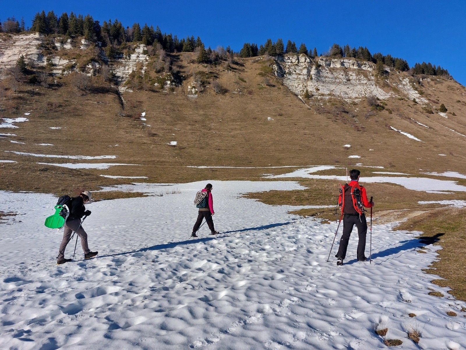 Conditions pour le ski : ça ne skie pas, on était même optimistes : on a promené les raquettes sur le sac.