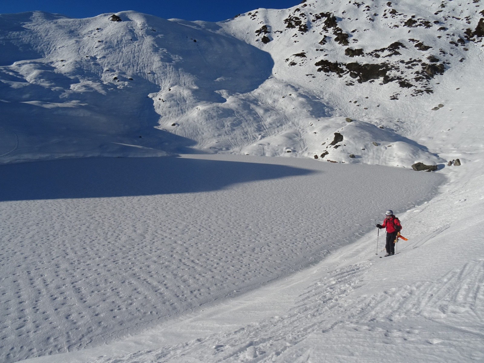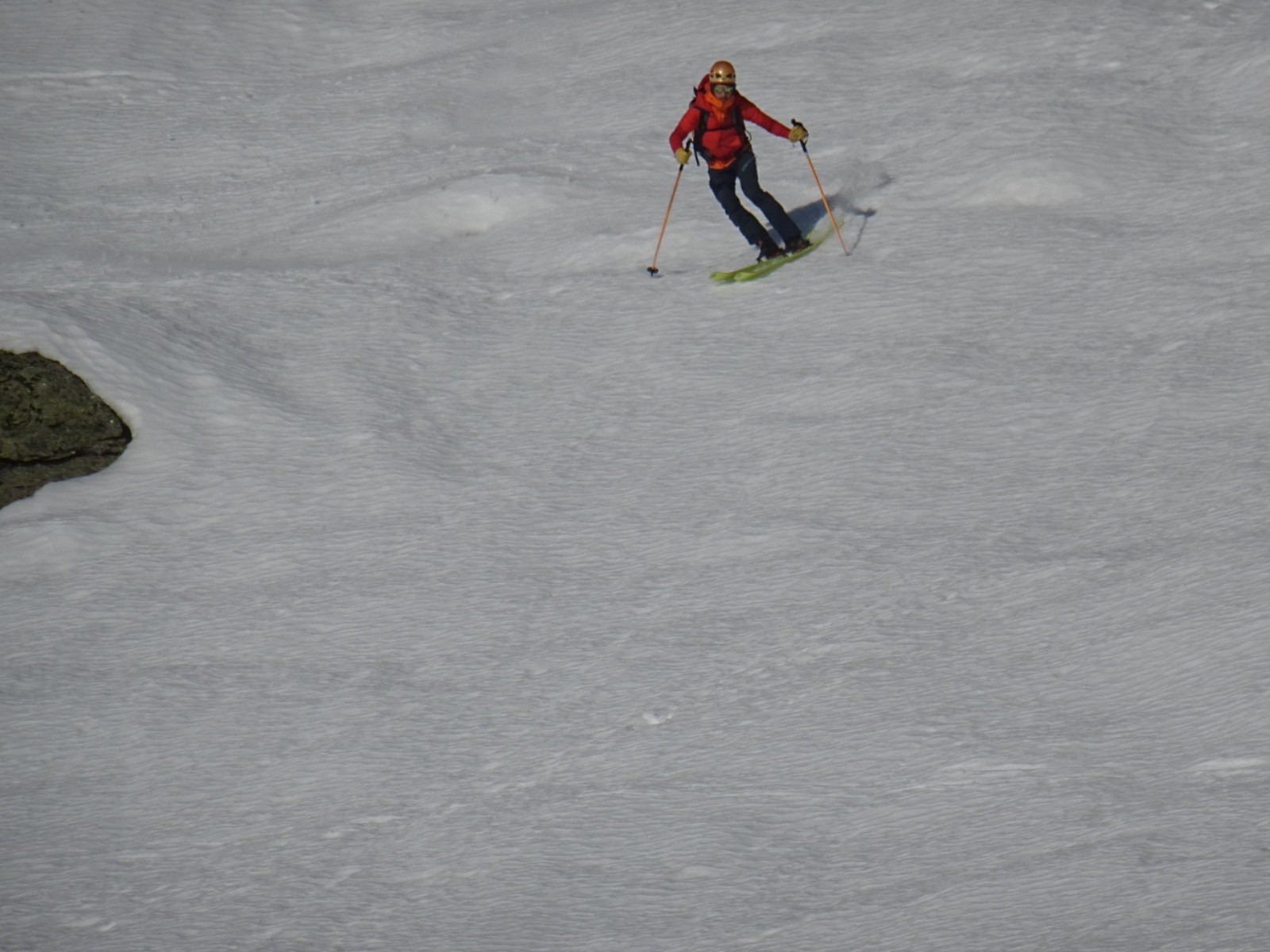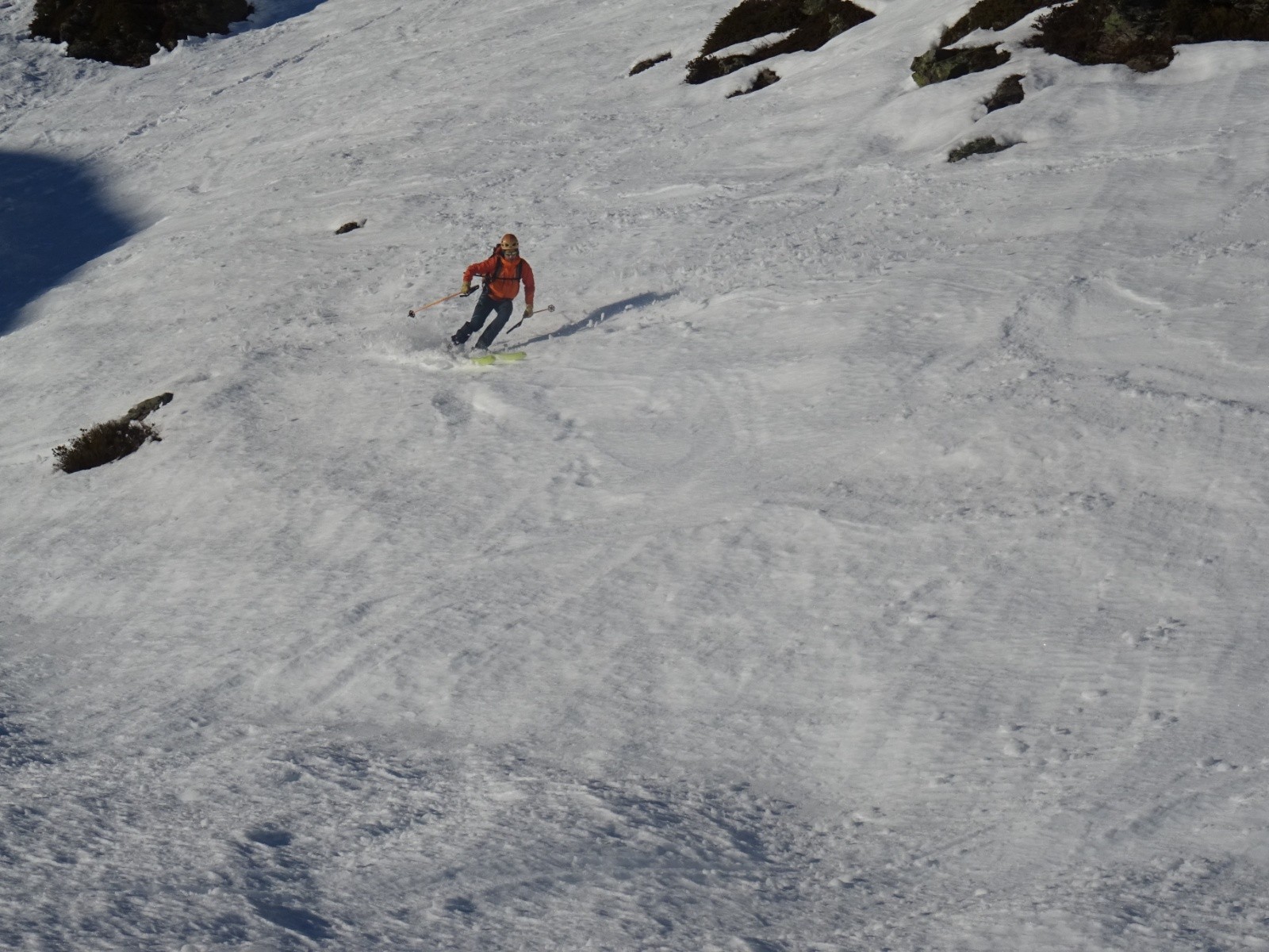 * neige inégale pas désagréable sous le Petit Arc face Sud-Ouest (encore un peu dure en haut, transformée ensuite), puis transformée assez agréable sous le lac Noir jusque vers 1800m environ