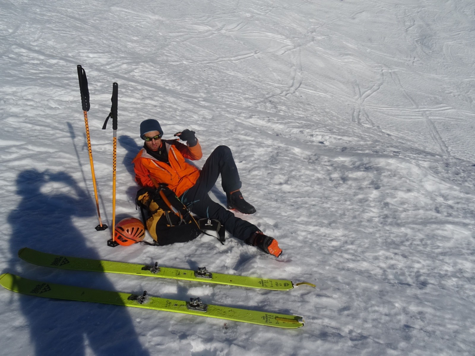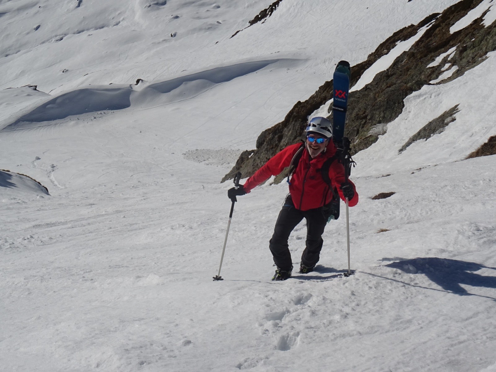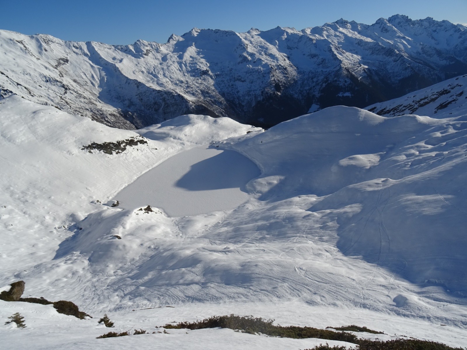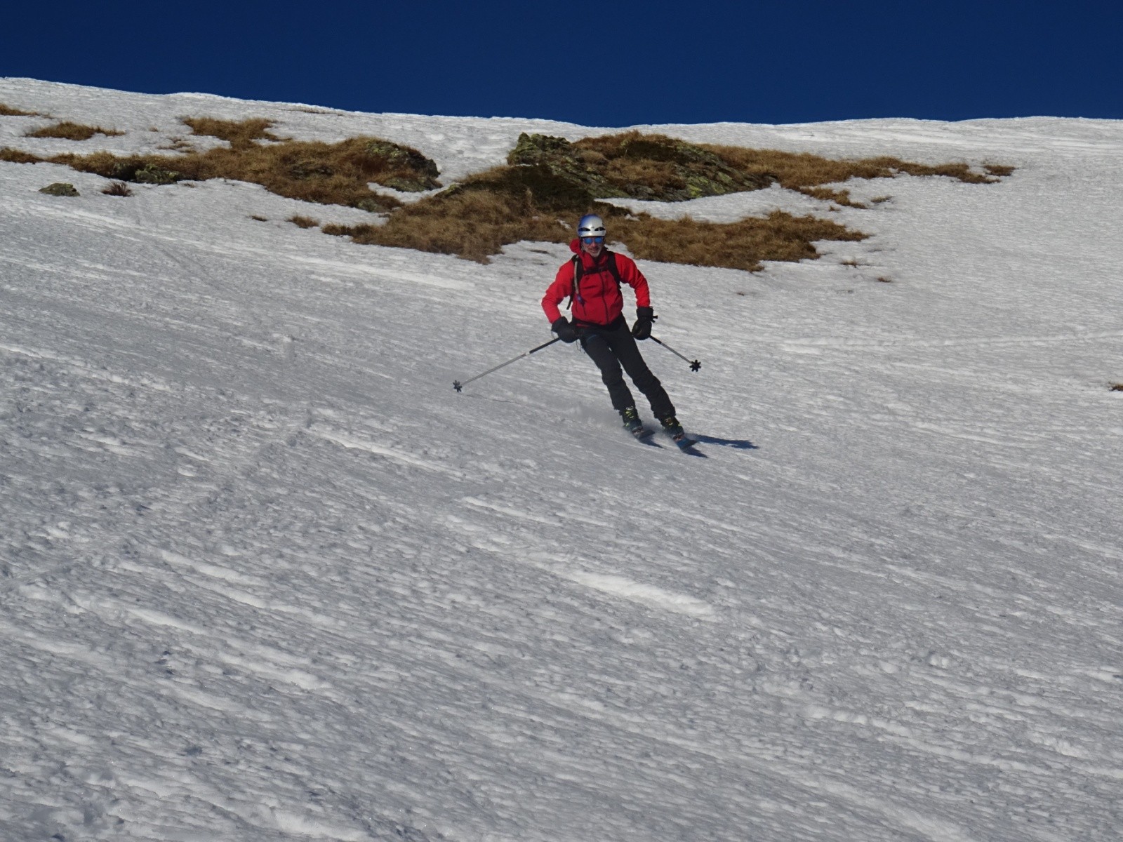 * neige inégale pas désagréable sous le Petit Arc face Sud-Ouest (encore un peu dure en haut, transformée ensuite), puis transformée assez agréable sous le lac Noir jusque vers 1800m environ