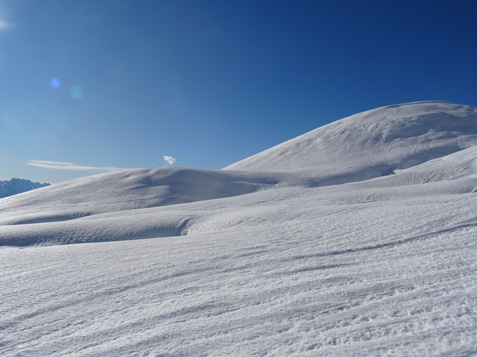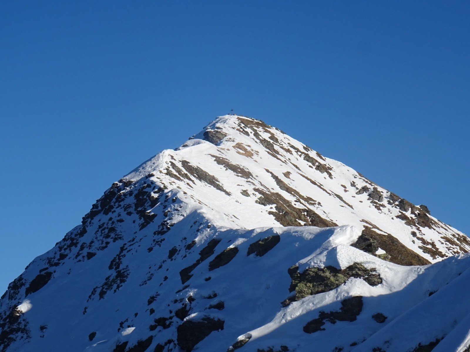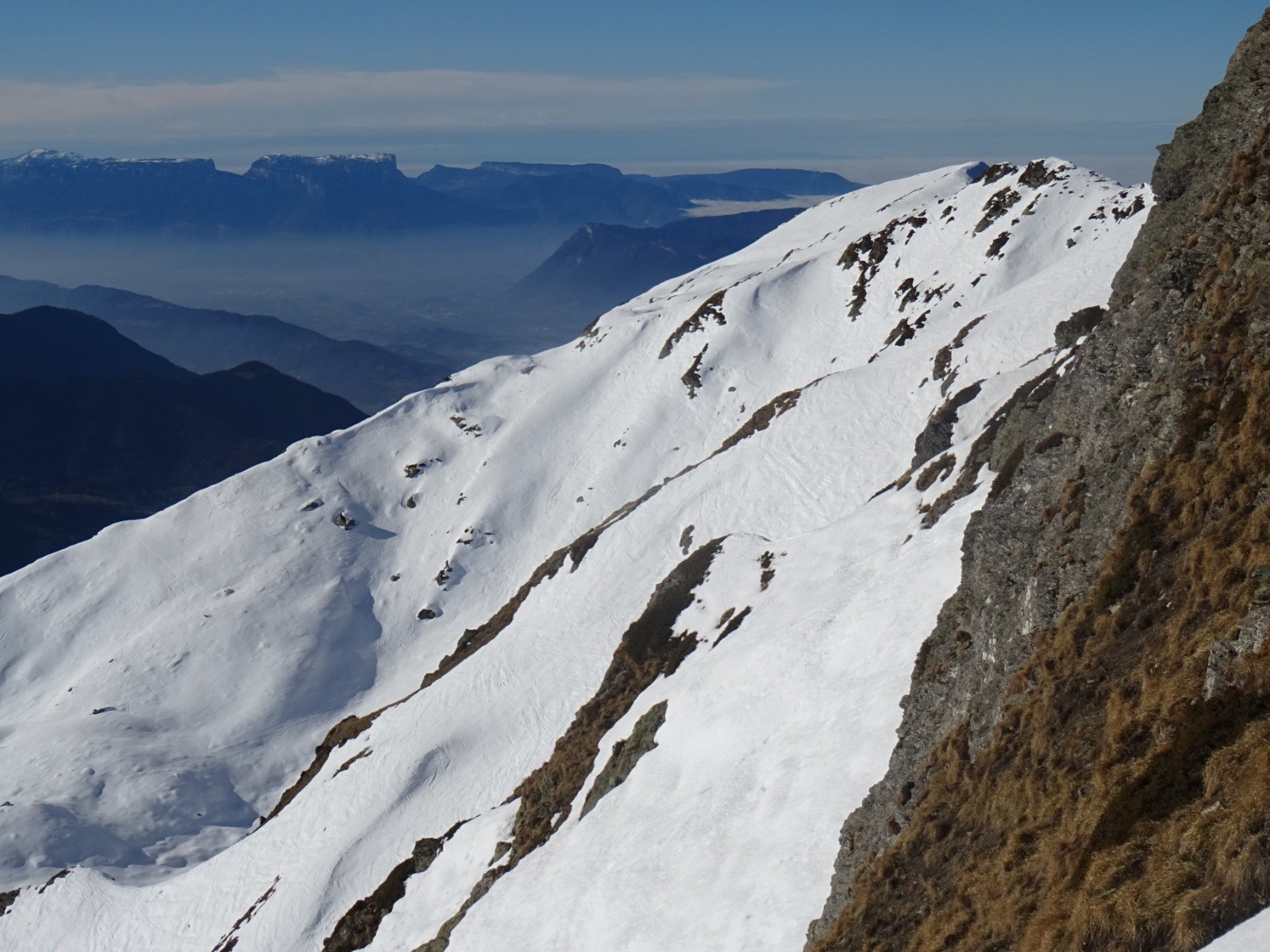 * neige dure quasi-pas décaillée sous le Grand Arc jusque vers 2200m (descente à faire avec prudence sur l'arête Ouest de la voie normale et en dessous)